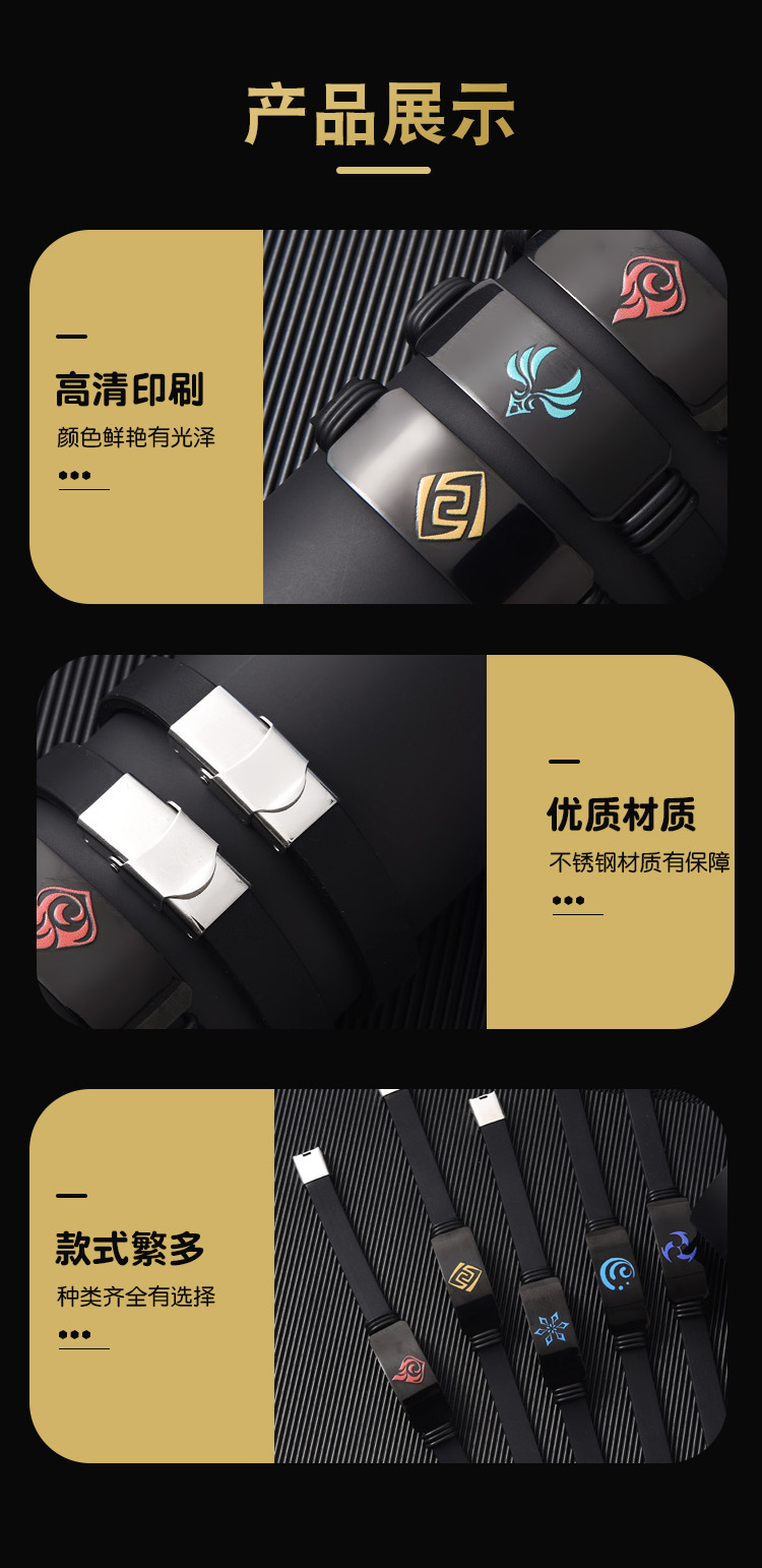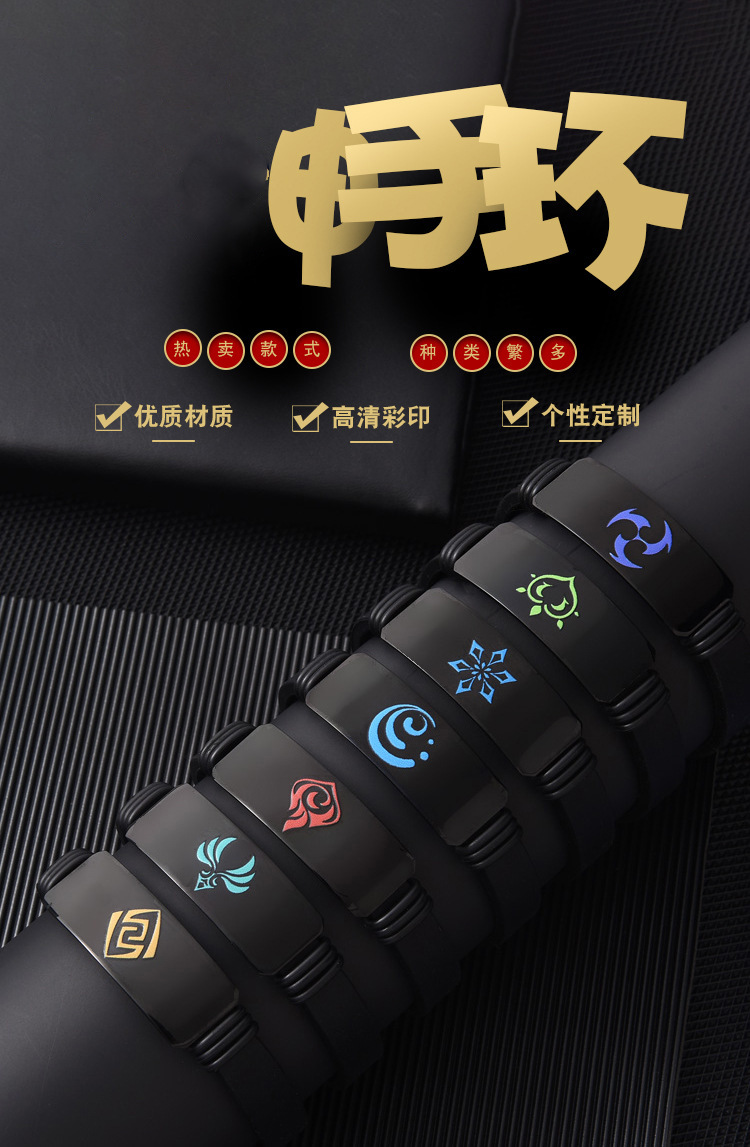 跨境彩图原手环神凤火岩冰草雷风游戏周边神之眼不锈钢可调节手饰