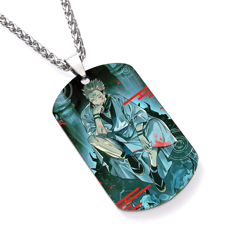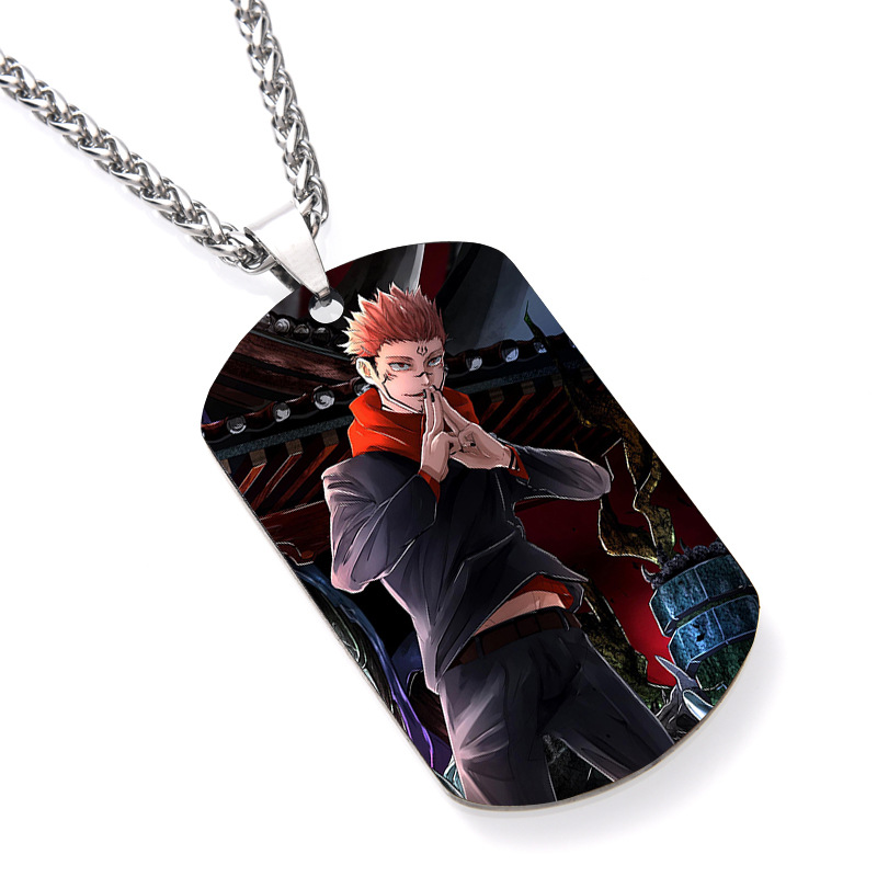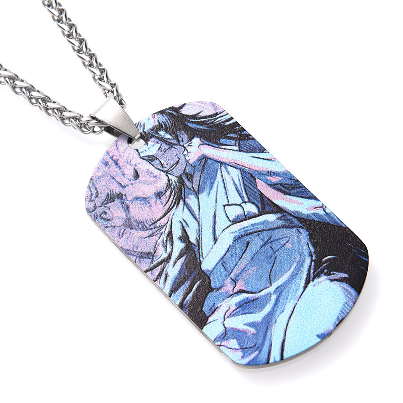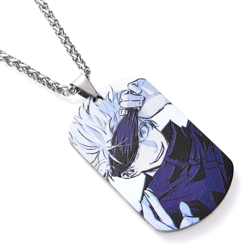 新款动漫咒术回战项链虎杖宿傩夏油杰五条悟彩印狗牌不锈钢锁骨链