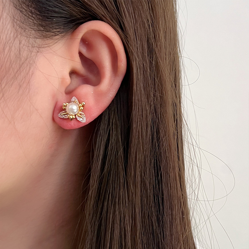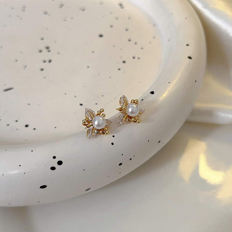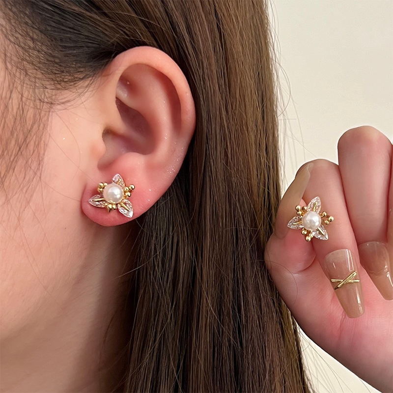 珍珠花朵耳钉高级感气质精致小巧镶钻耳环女2024年新款爆款耳饰