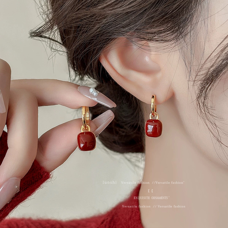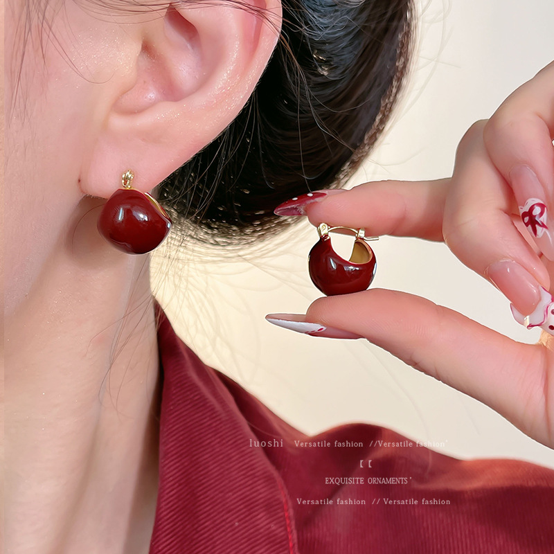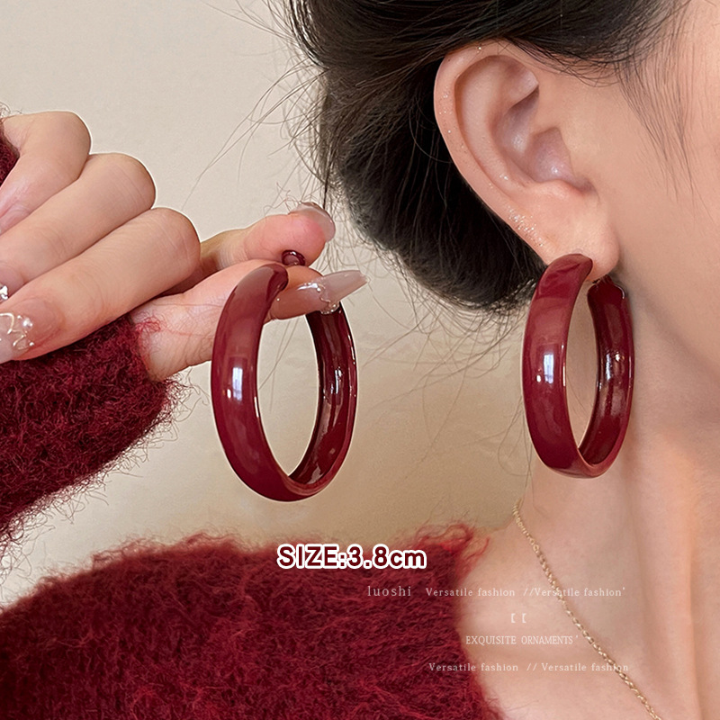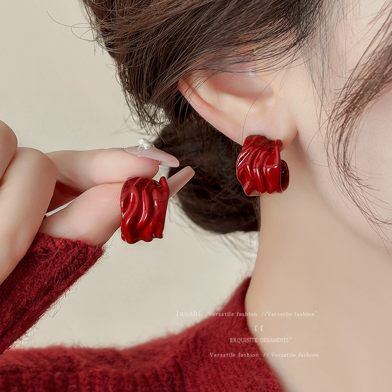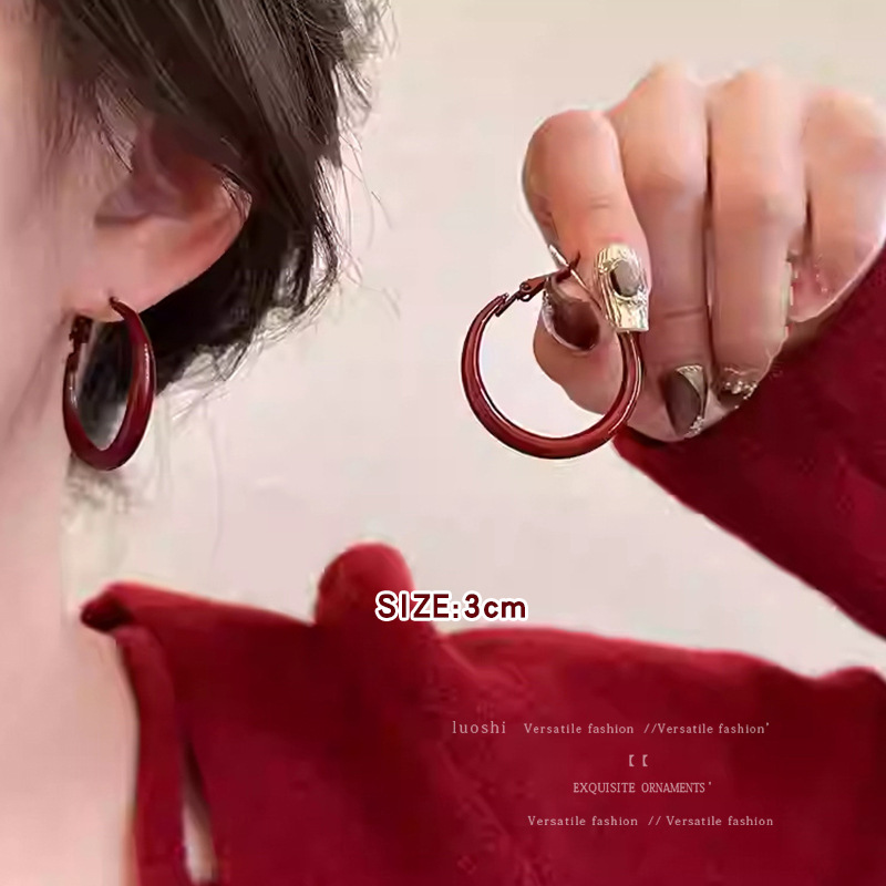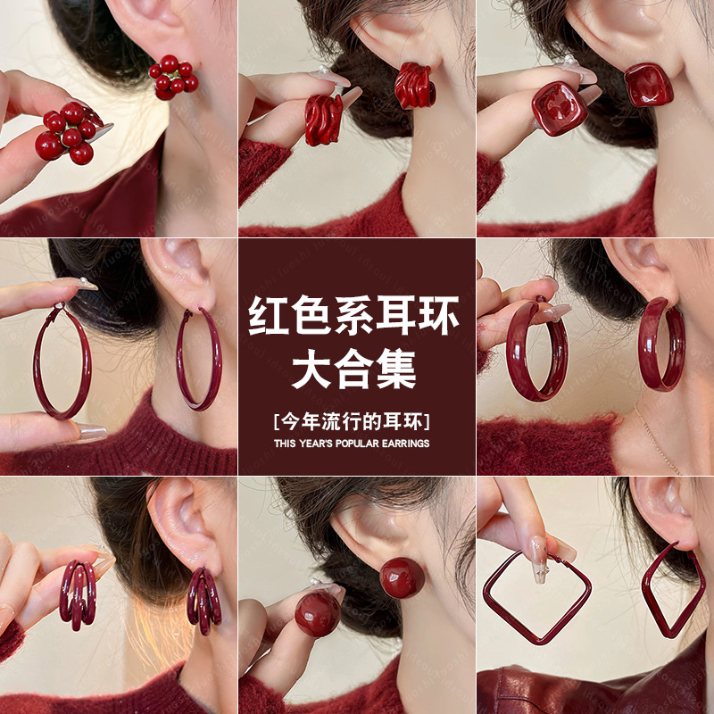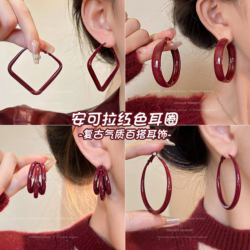 安可拉红耳环女2024新款爆款耳圈复古气质耳钉小众轻奢高级感耳饰