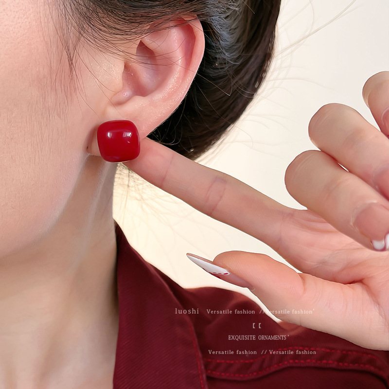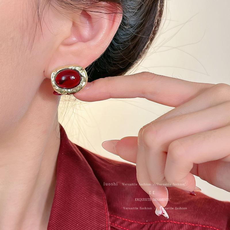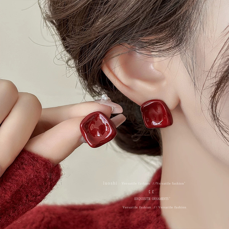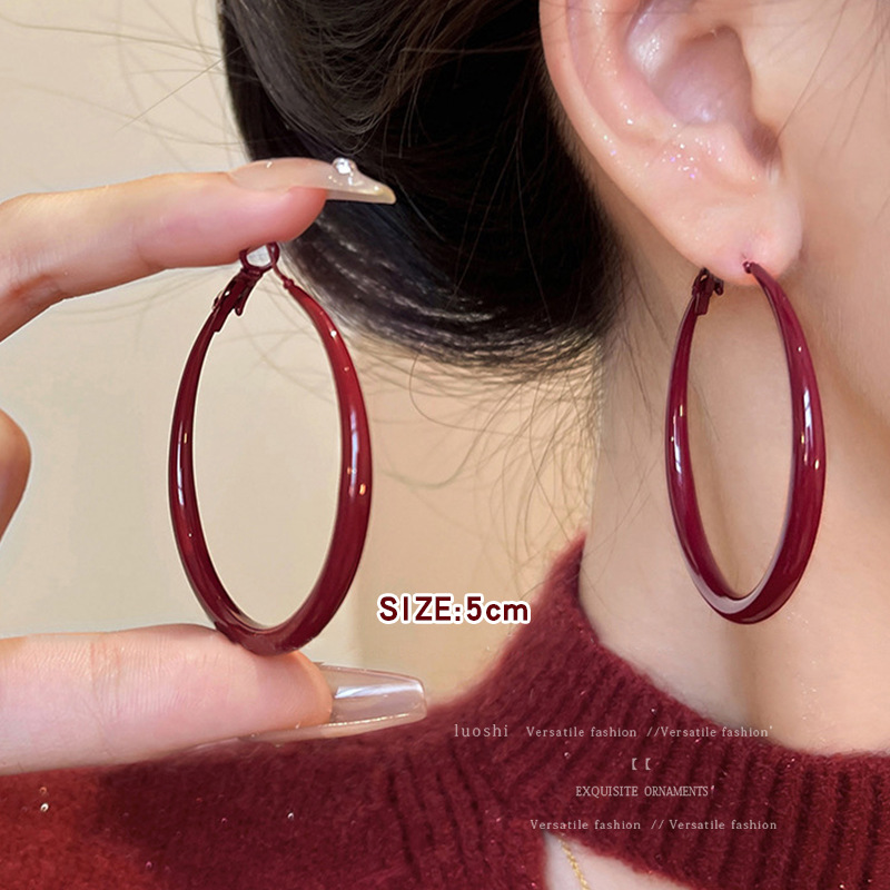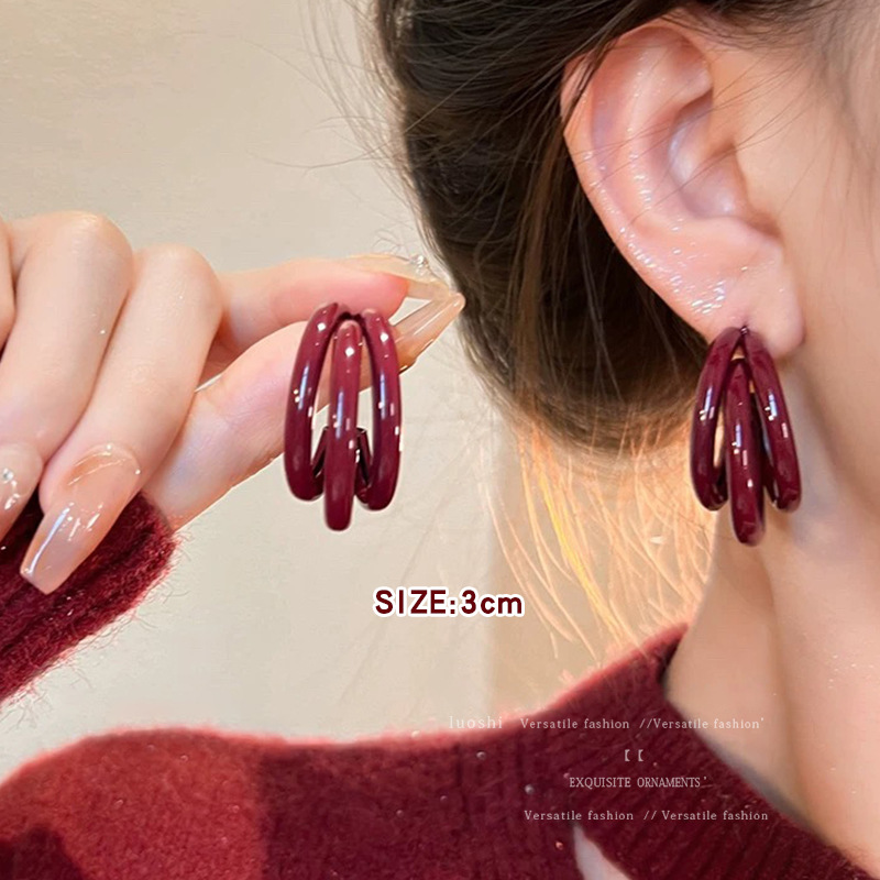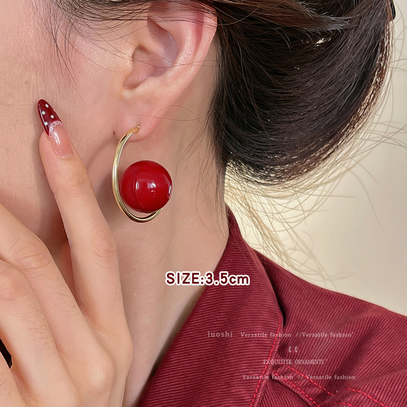 安可拉红耳环女2024新款爆款耳圈复古气质耳钉小众轻奢高级感耳饰