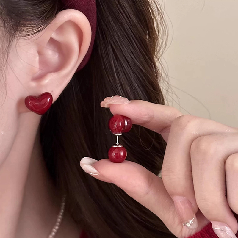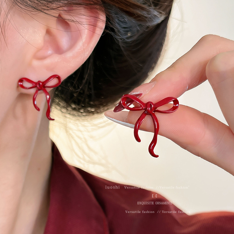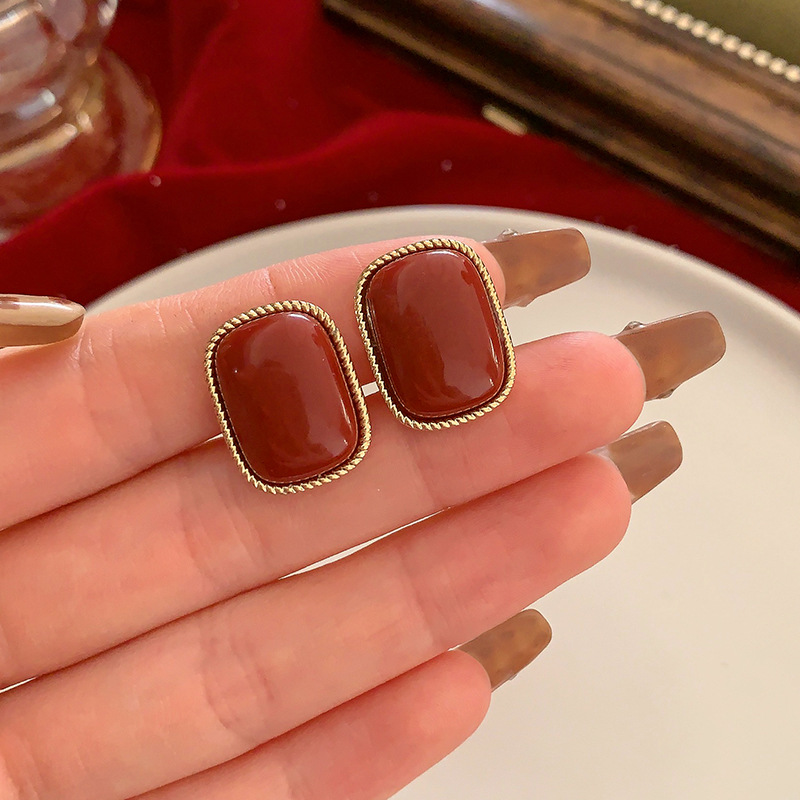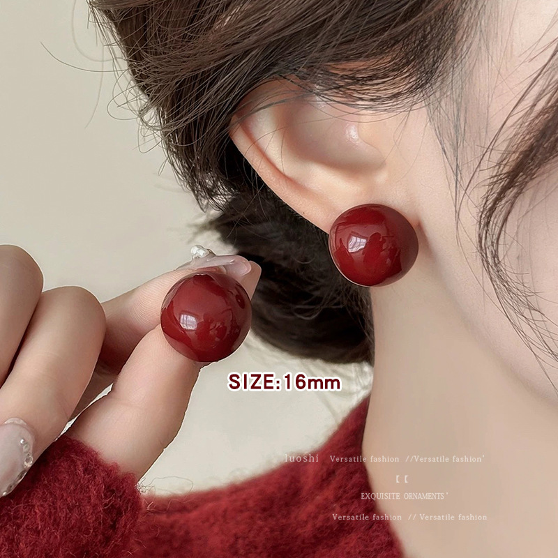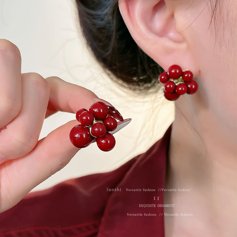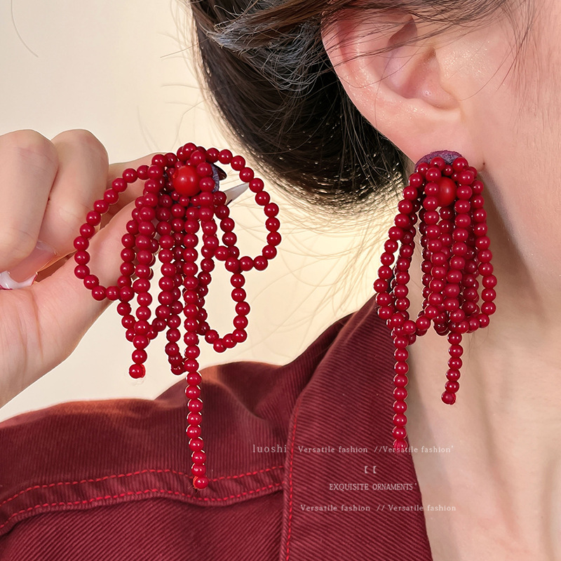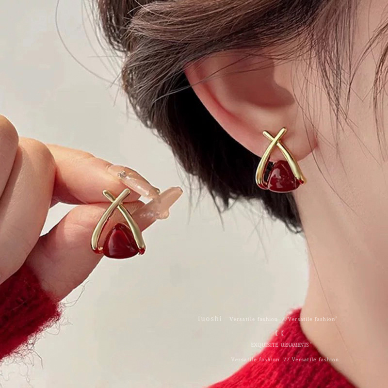 安可拉红耳环女2024新款爆款耳圈复古气质耳钉小众轻奢高级感耳饰