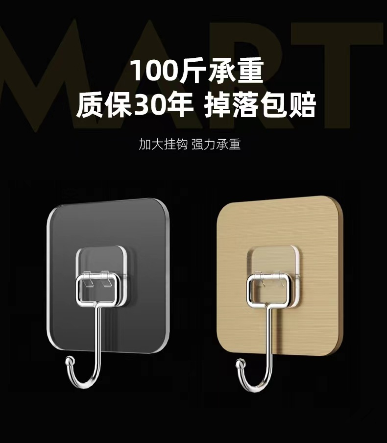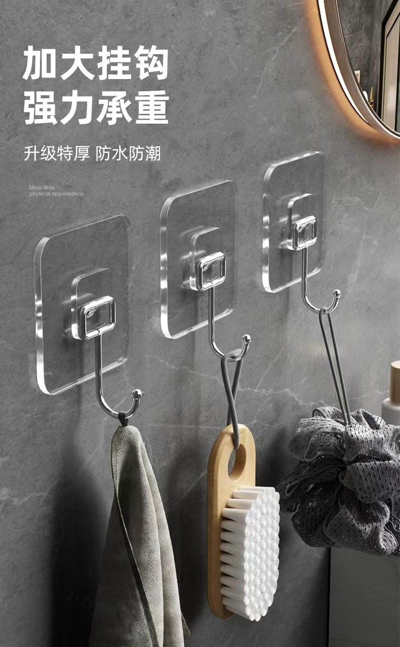 挂钩免打孔粘钩透明大挂勾墙壁壁挂厨房浴室无痕钉强力粘胶免钉贴