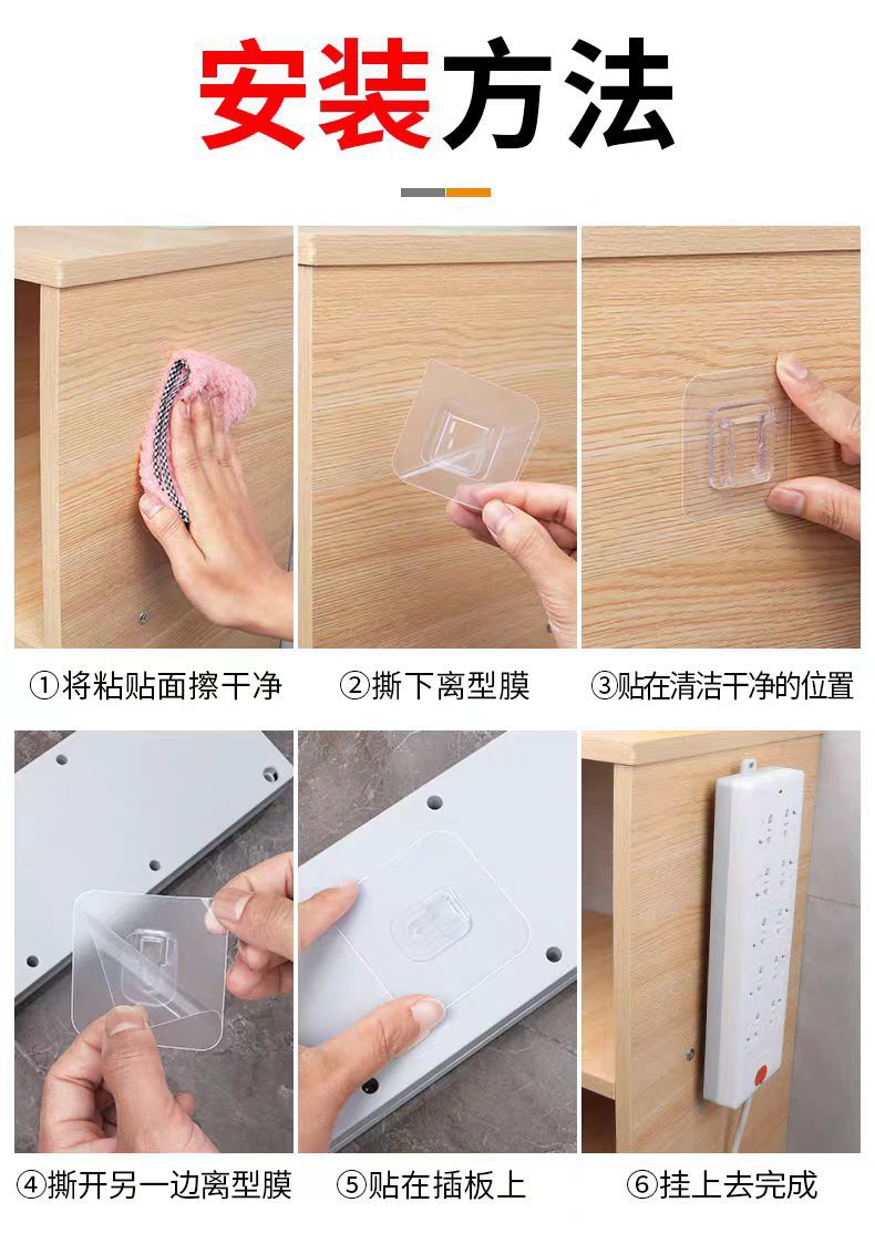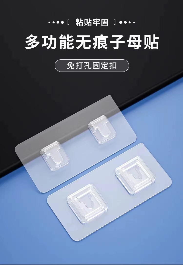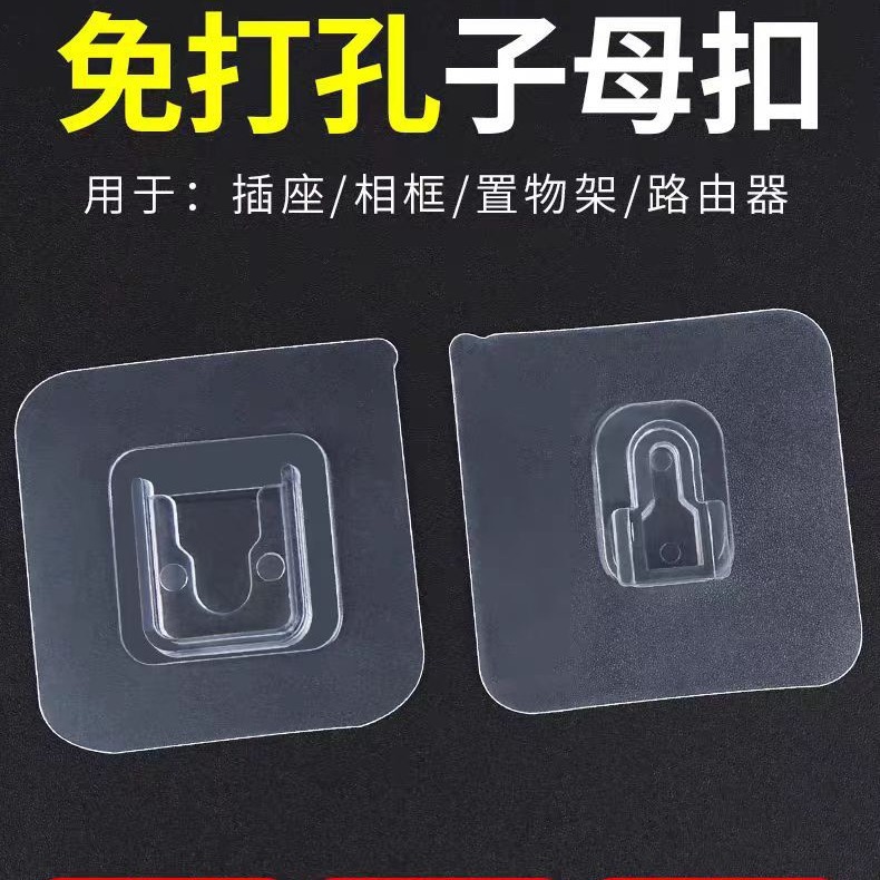 免打孔双排子母扣强力无痕贴透明挂钩粘钩浴室免钉贴多功能卡扣