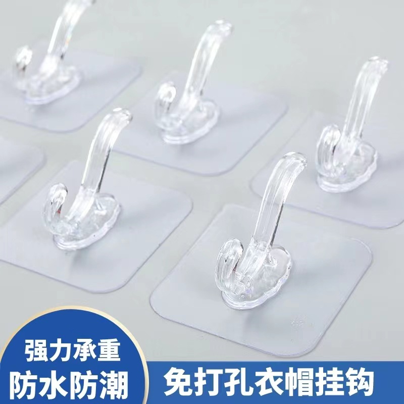 免打孔衣帽钩透明连排挂钩粘钩一排收纳壁挂无痕强力粘胶免钉贴