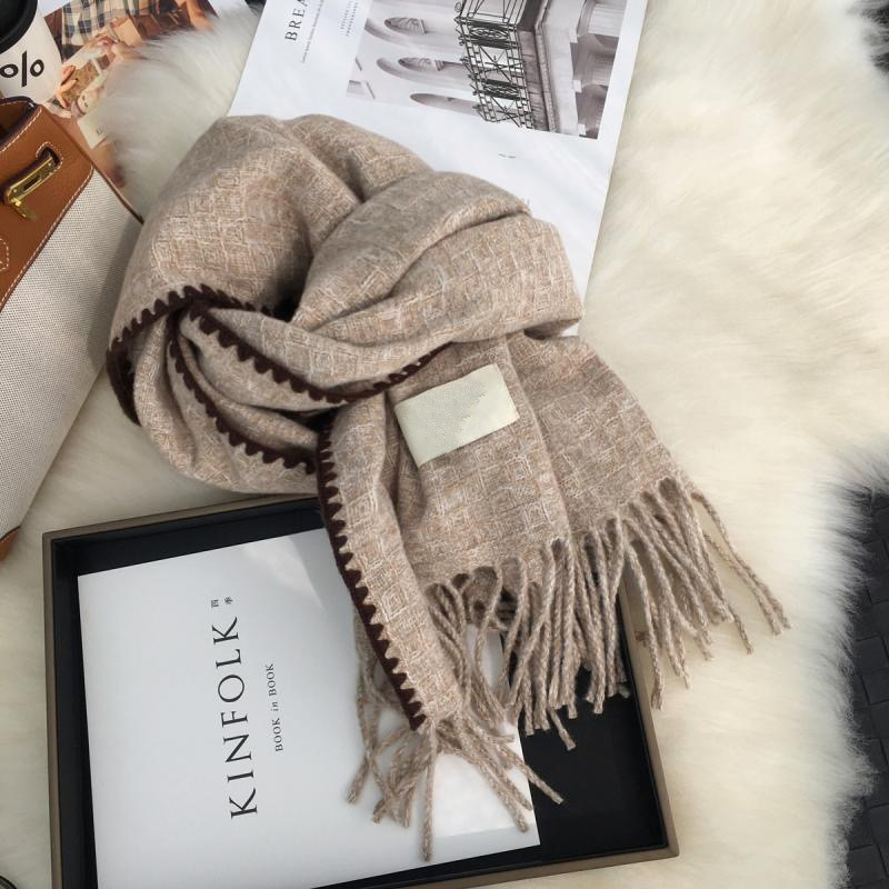 新款围巾女高级锁边轻奢仿羊绒围脖男通用原创保暖流苏冬百搭保暖
