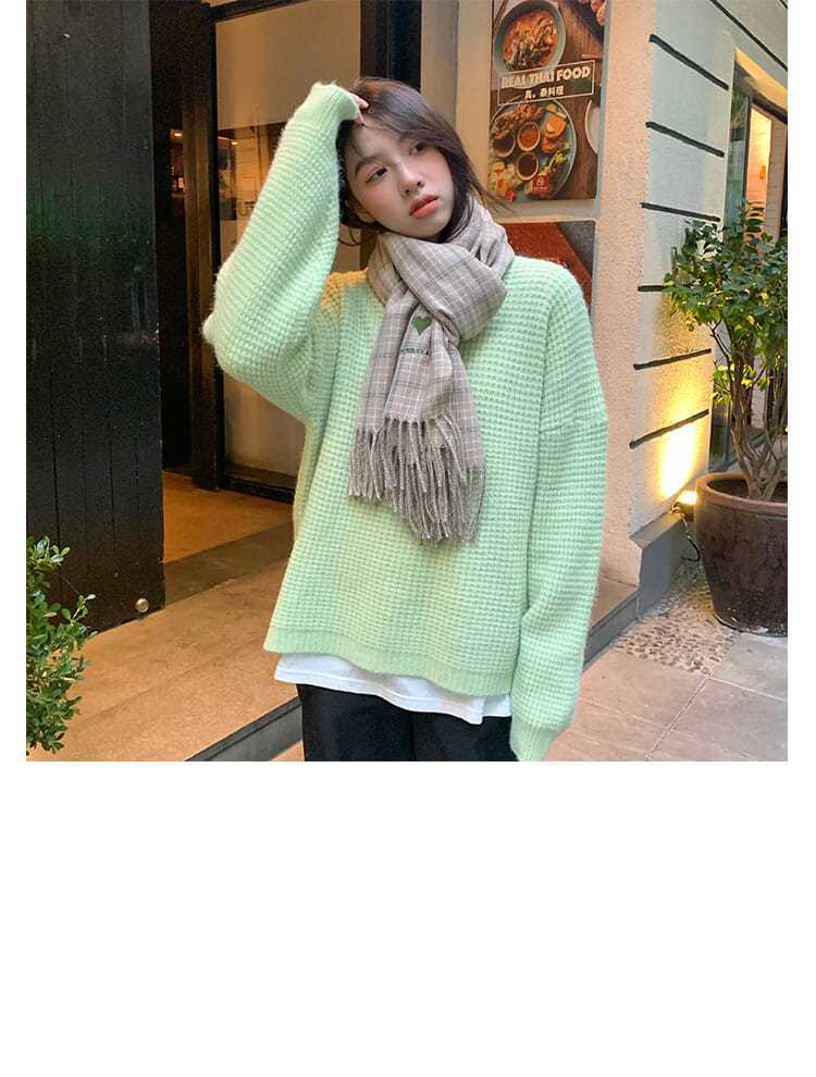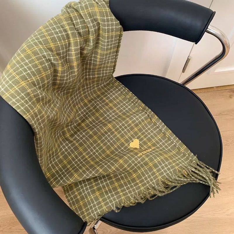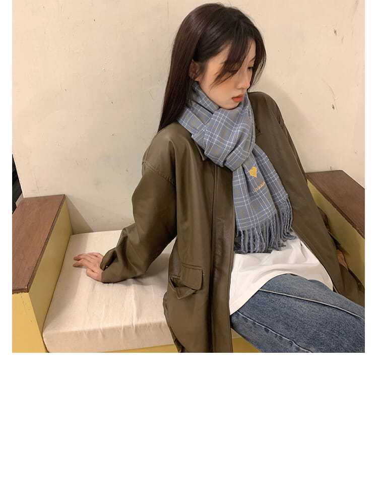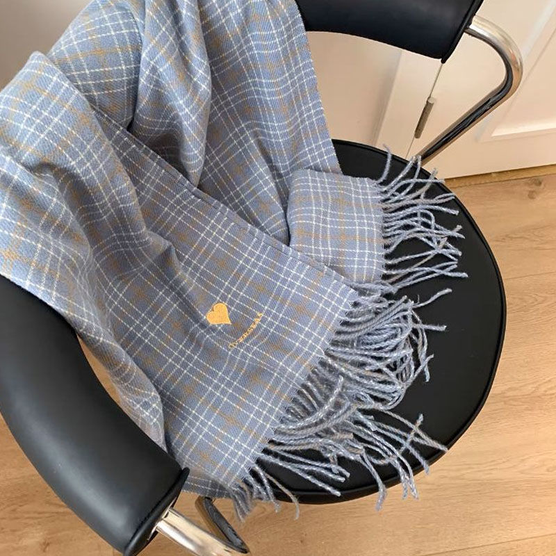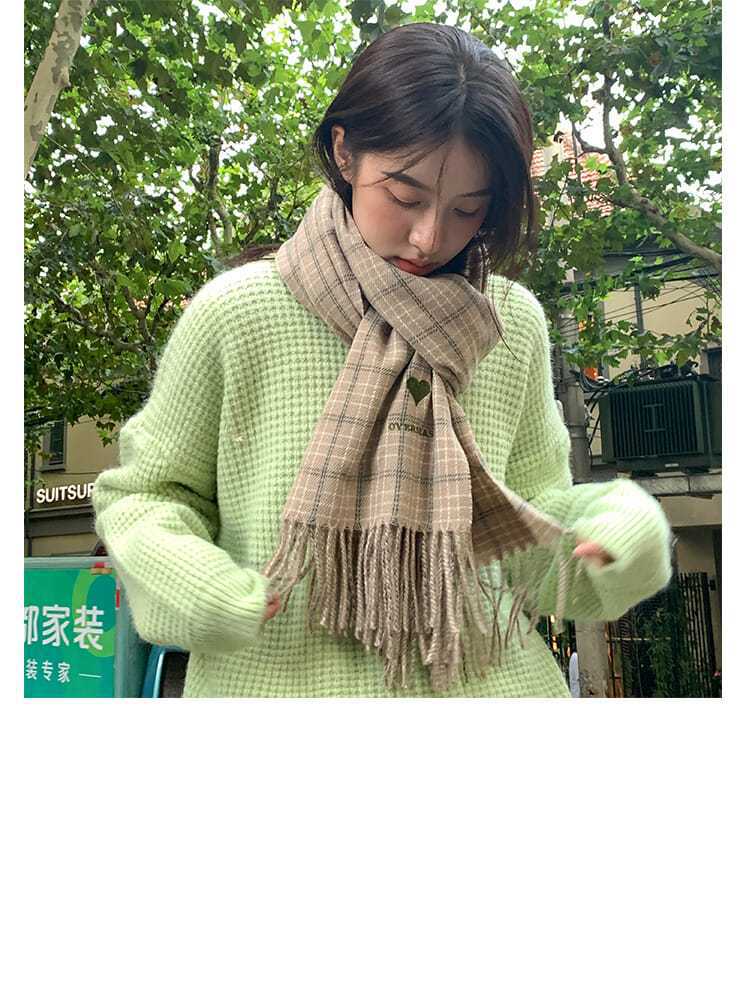 新款甜美格纹百搭保暖刺绣爱心可爱流苏围巾女冬季港风韩系围脖