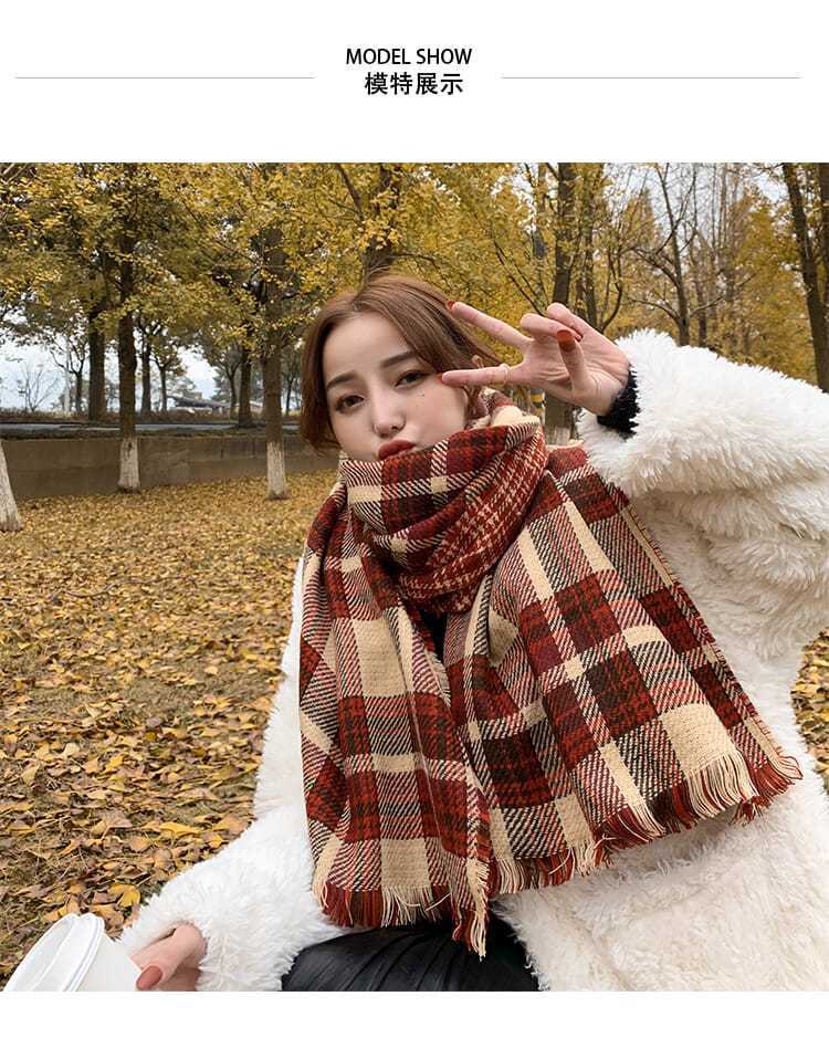 经典英伦复古红色格子仿羊绒围巾女秋冬季韩版百搭双面千鸟格围脖