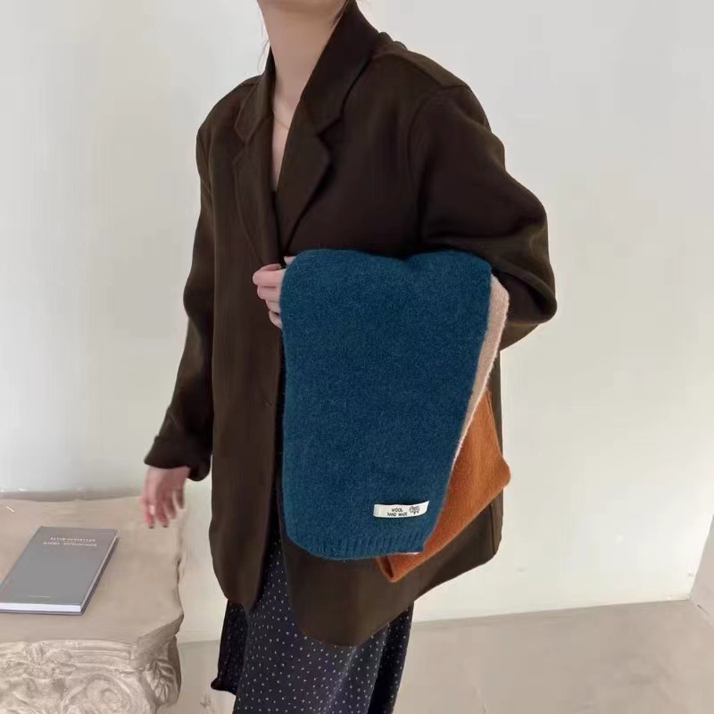 新款秋冬季ins风撞色围巾女护颈韩版可爱学生保暖针织百搭围脖男