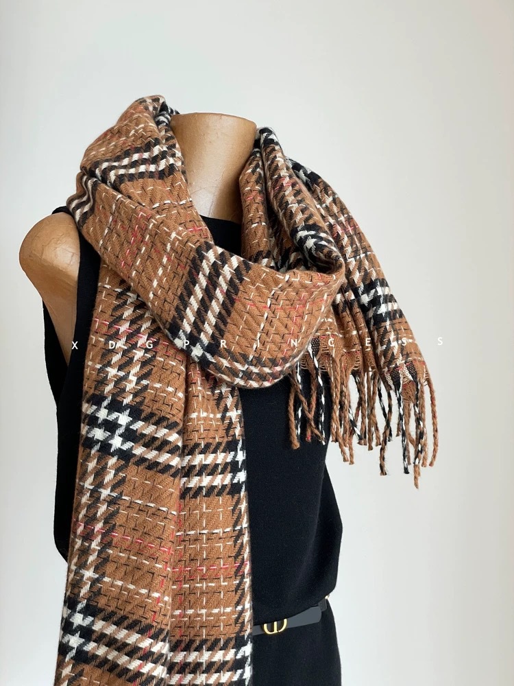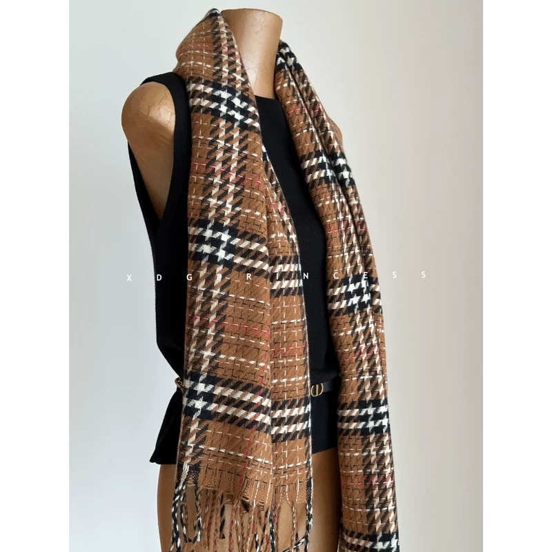 冬季千鸟格围巾女新款仿羊绒百搭韩版字母围脖网红爆款空调房保暖