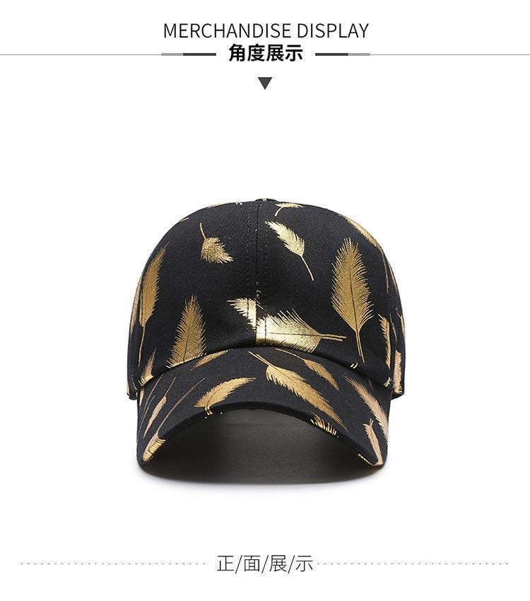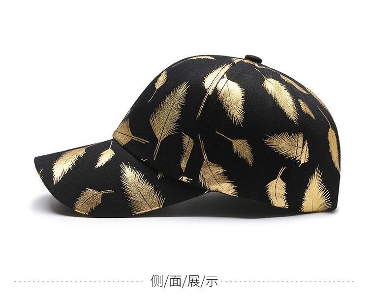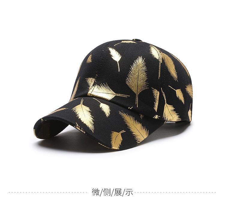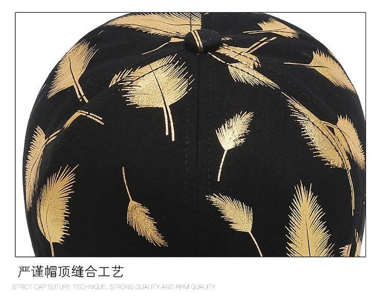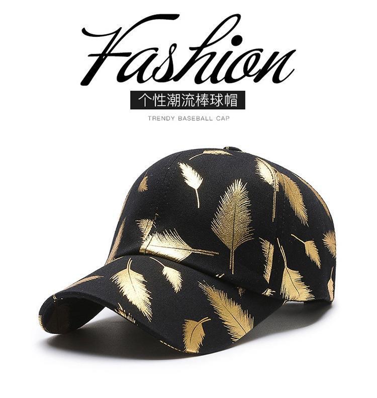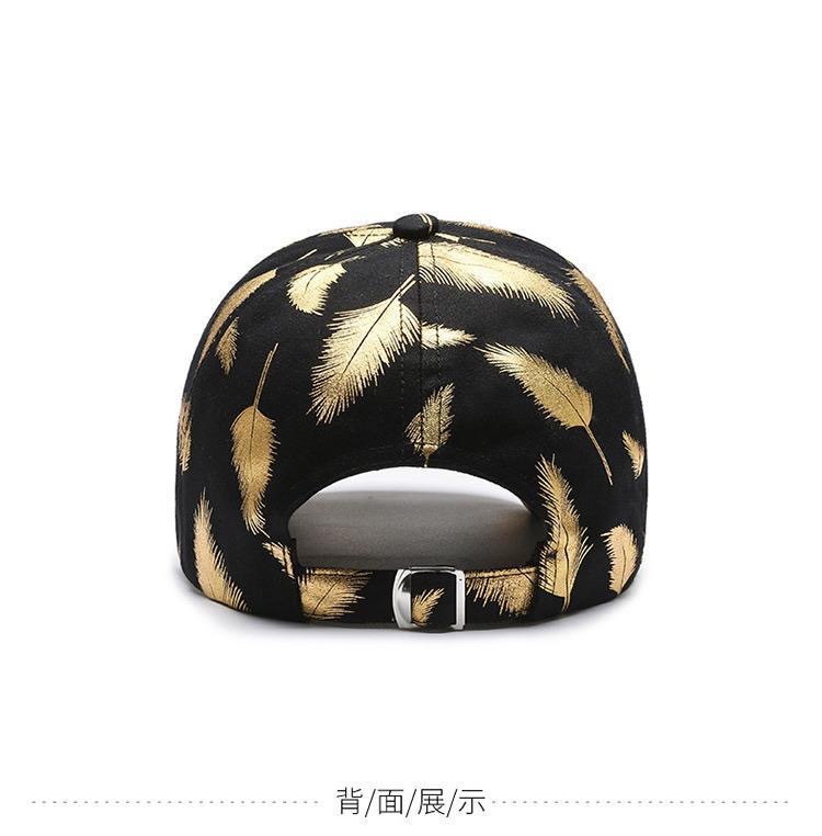 新款烫金羽毛鸭舌帽男春夏户外运动遮阳时尚帽子女韩版嘻哈棒球帽