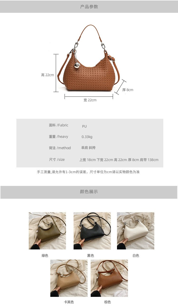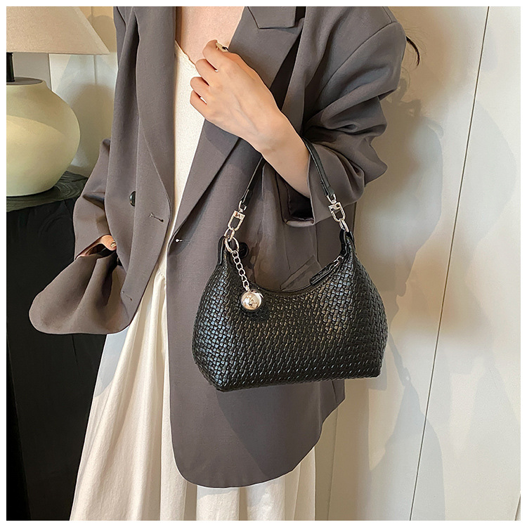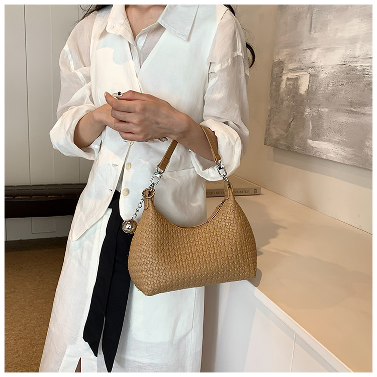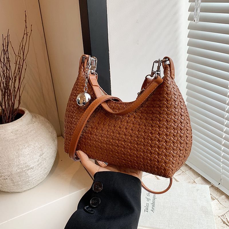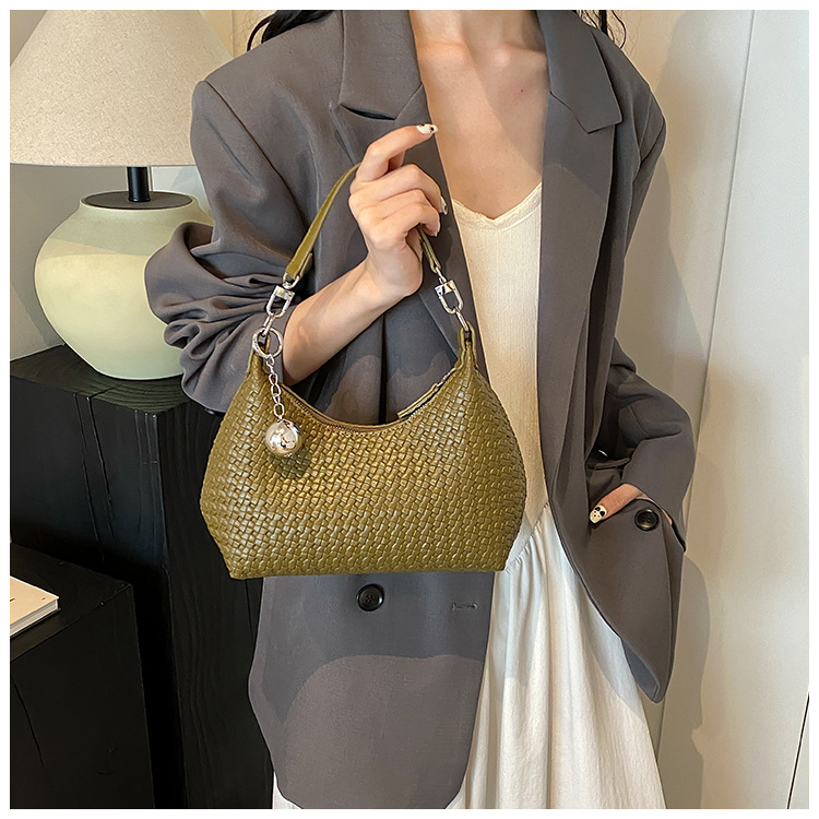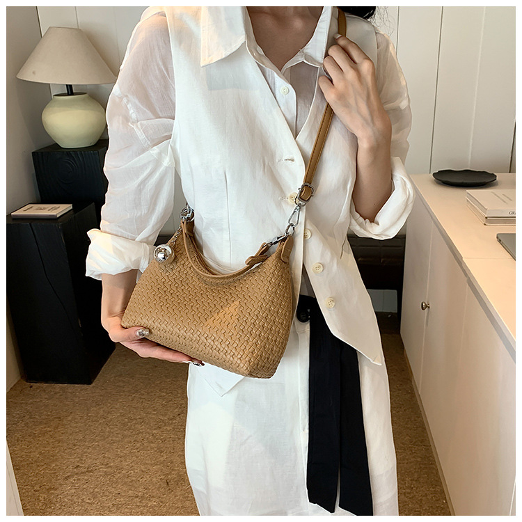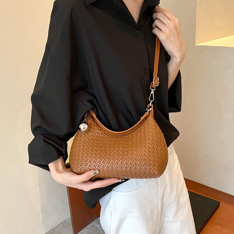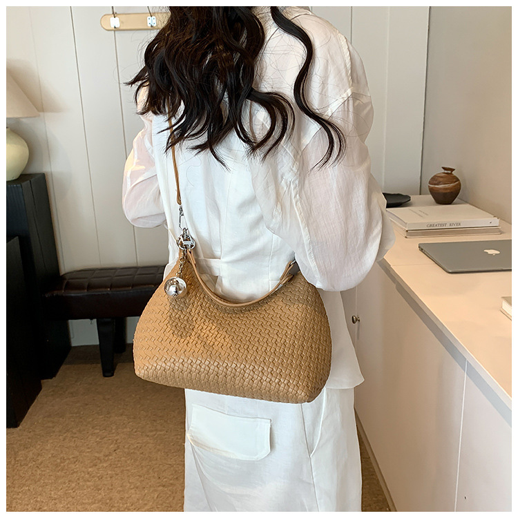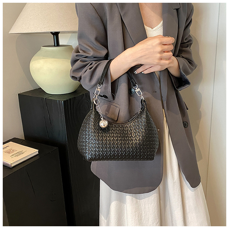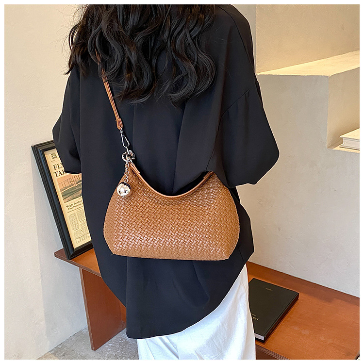 复古高级感编织饺子包包女秋季新款纯色手提单肩包质感斜挎包