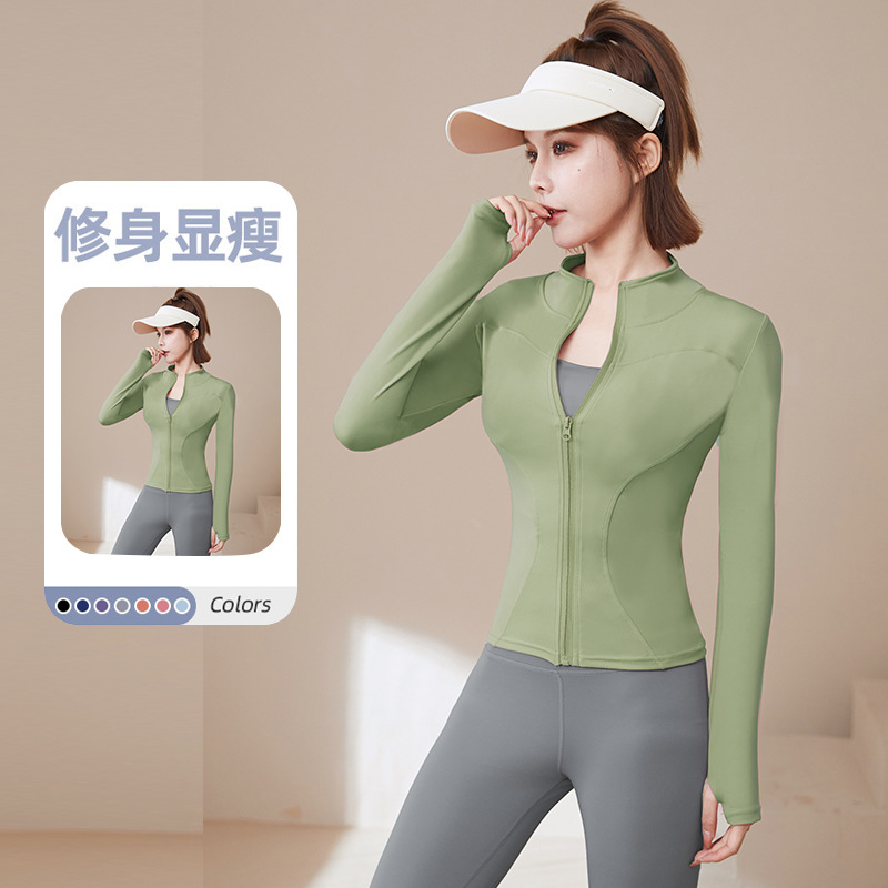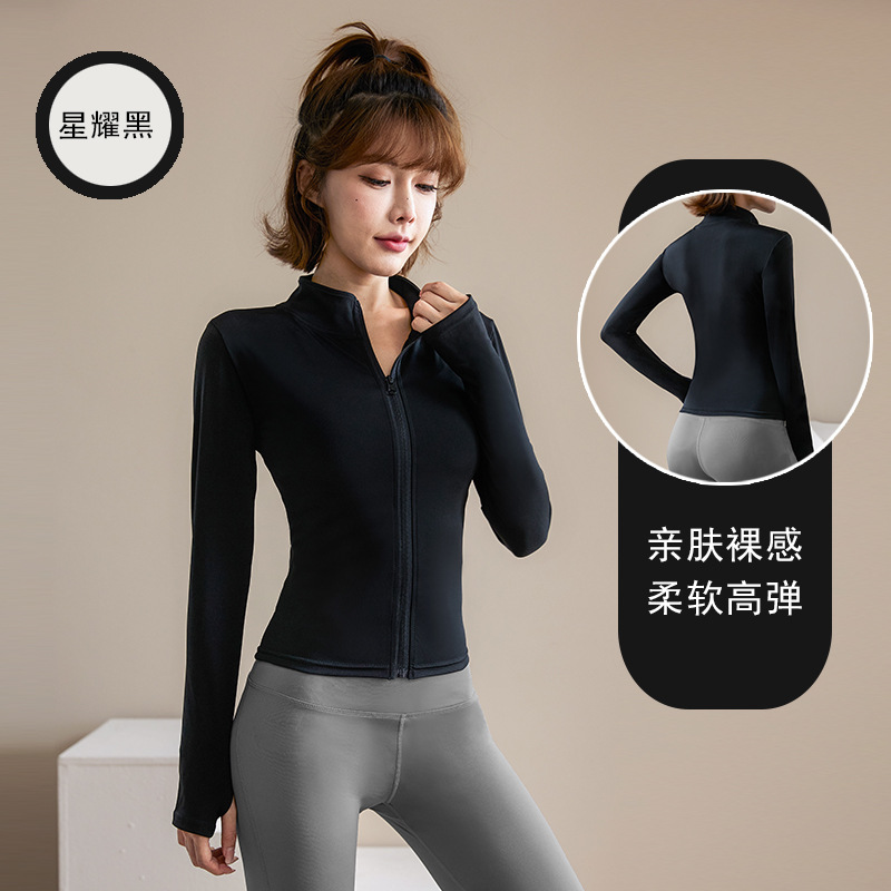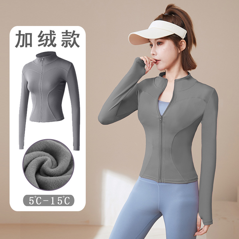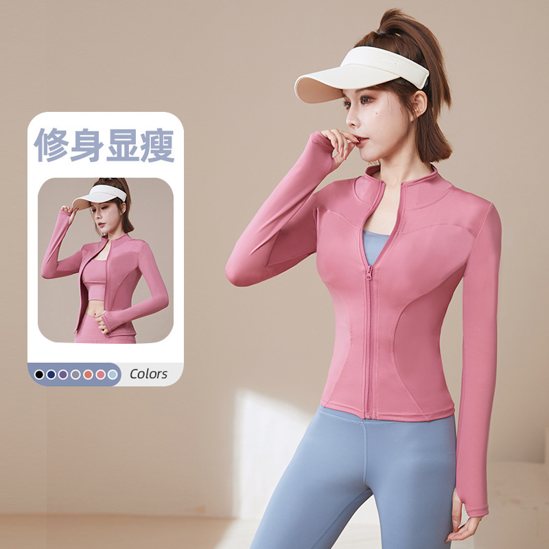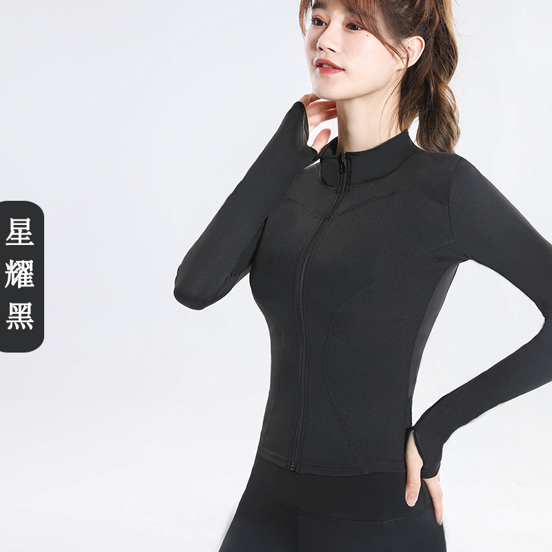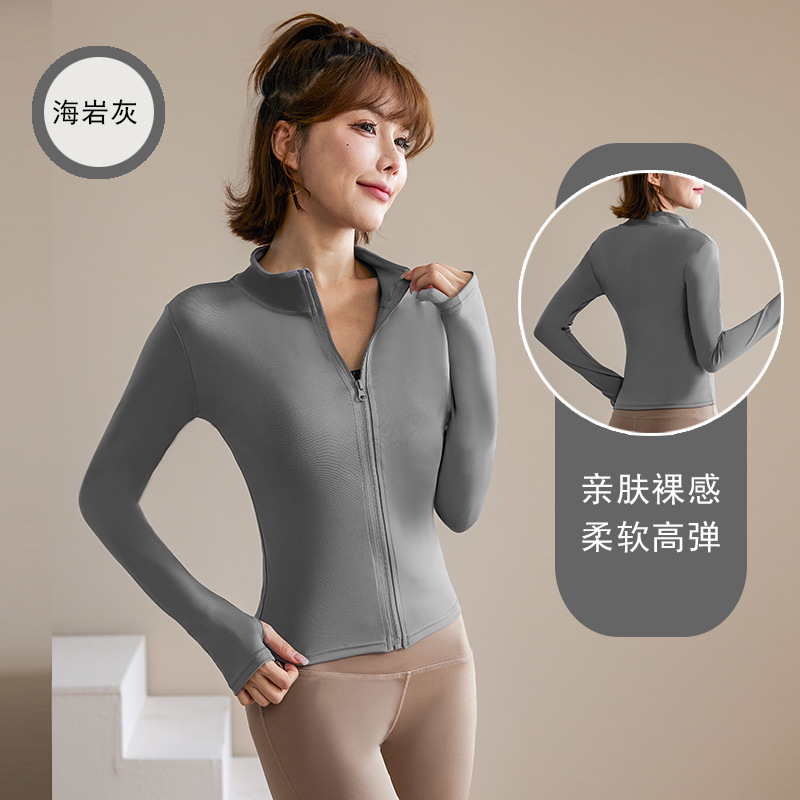 秋季高弹速干运动外套女立领修身显瘦裸感瑜伽上衣紧身健身服外套