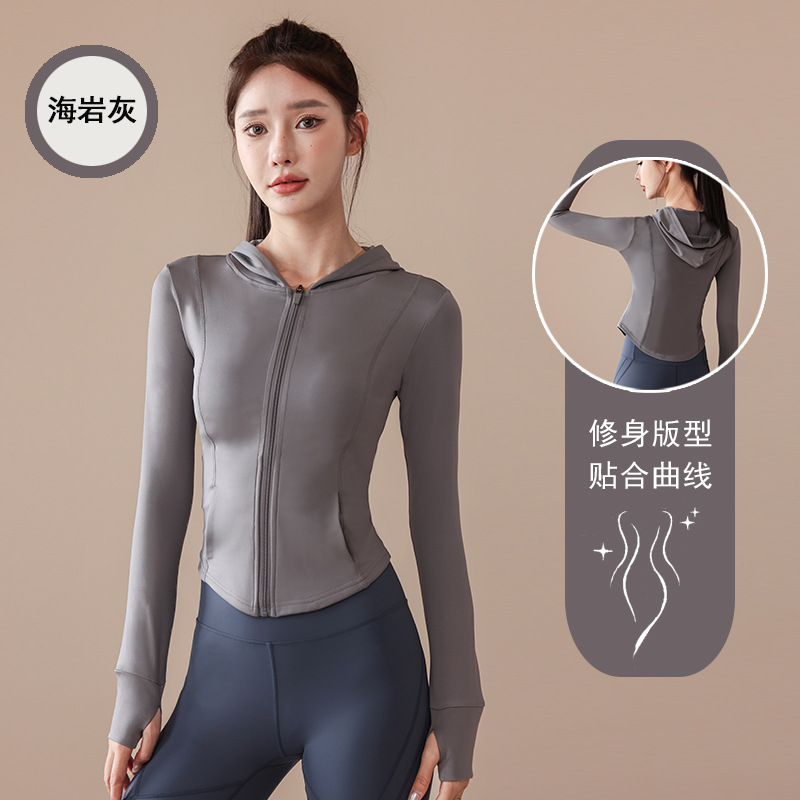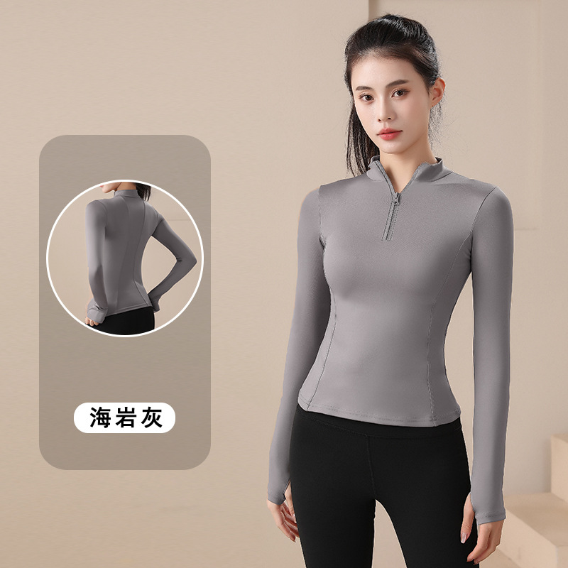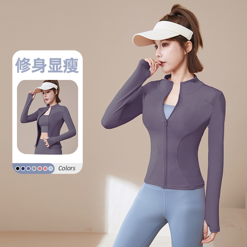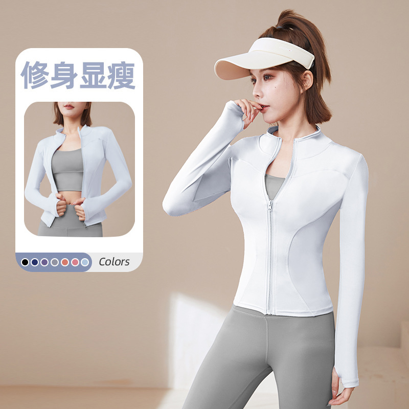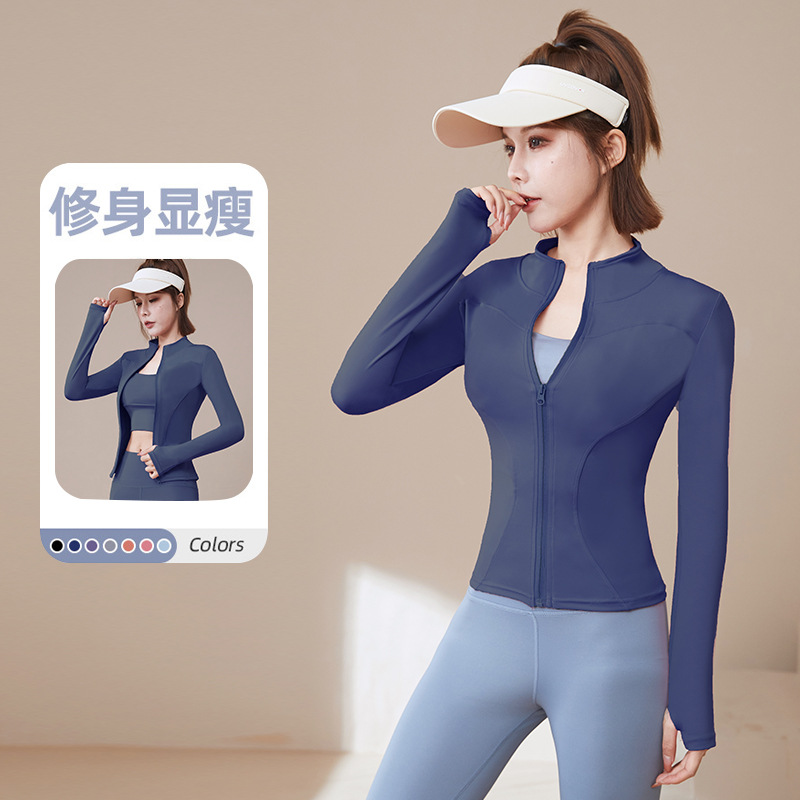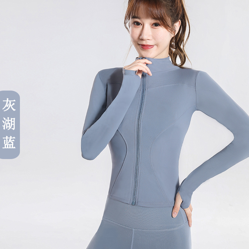 秋季高弹速干运动外套女立领修身显瘦裸感瑜伽上衣紧身健身服外套