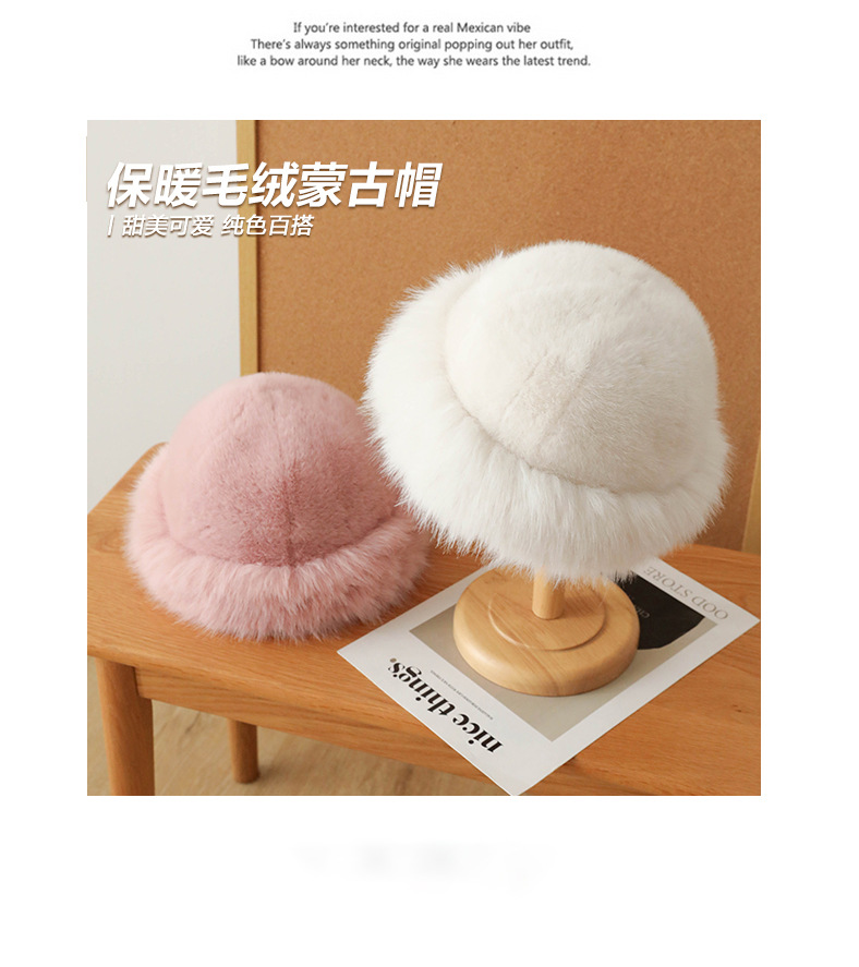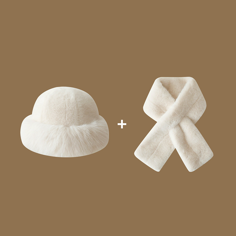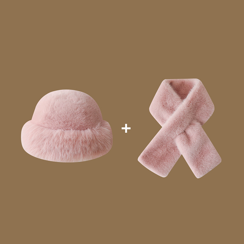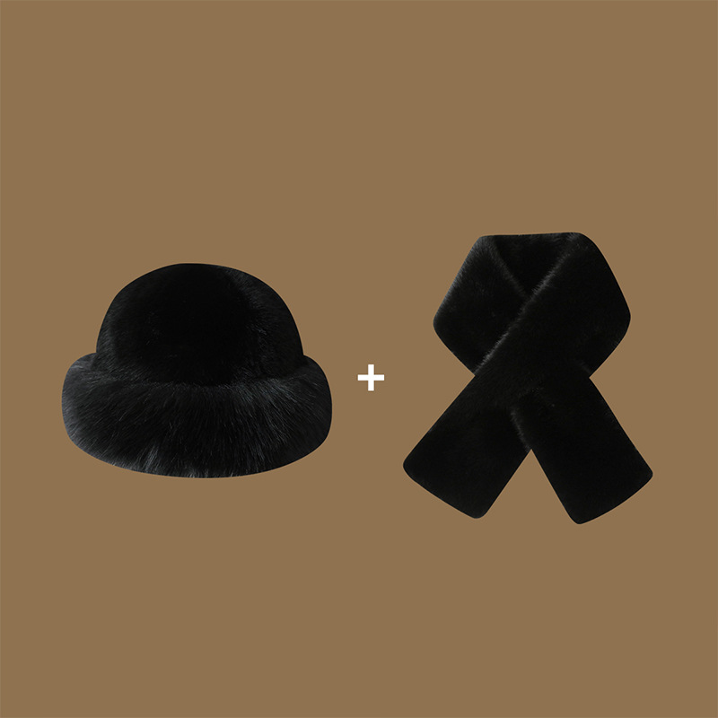 毛茸茸蒙古帽显脸小圆顶防寒保暖仿貂毛渔夫帽新品帽子围巾套装