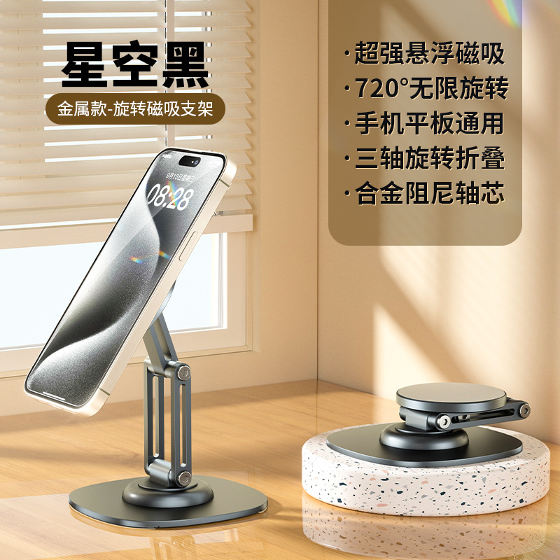 新款金属桌面支架调节升降懒人pad平板通用360°旋转磁吸手机支架