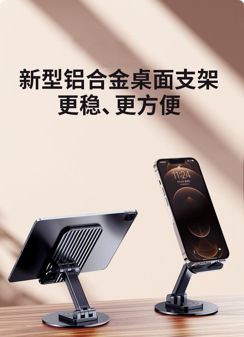 金属旋转手机支架桌面360度平板升降多功能便携折叠管铝合金支架