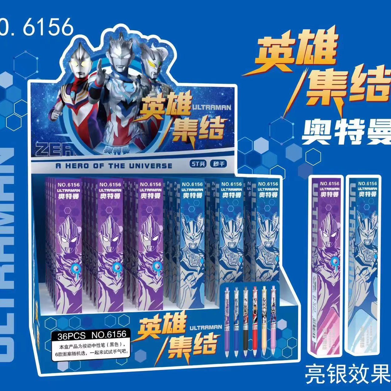 奥特曼盲盒笔男生动漫卡通限定黑笔高颜值按动式文具学生用中性笔