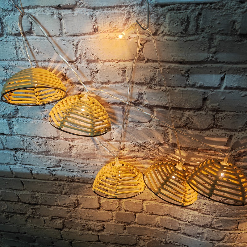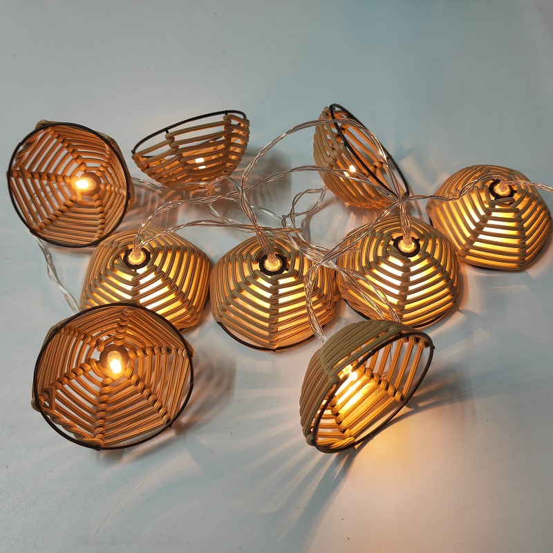 外贸专供藤编半圆镂空灯罩灯串藤球灯室内室外节日户外露营氛