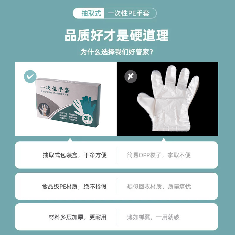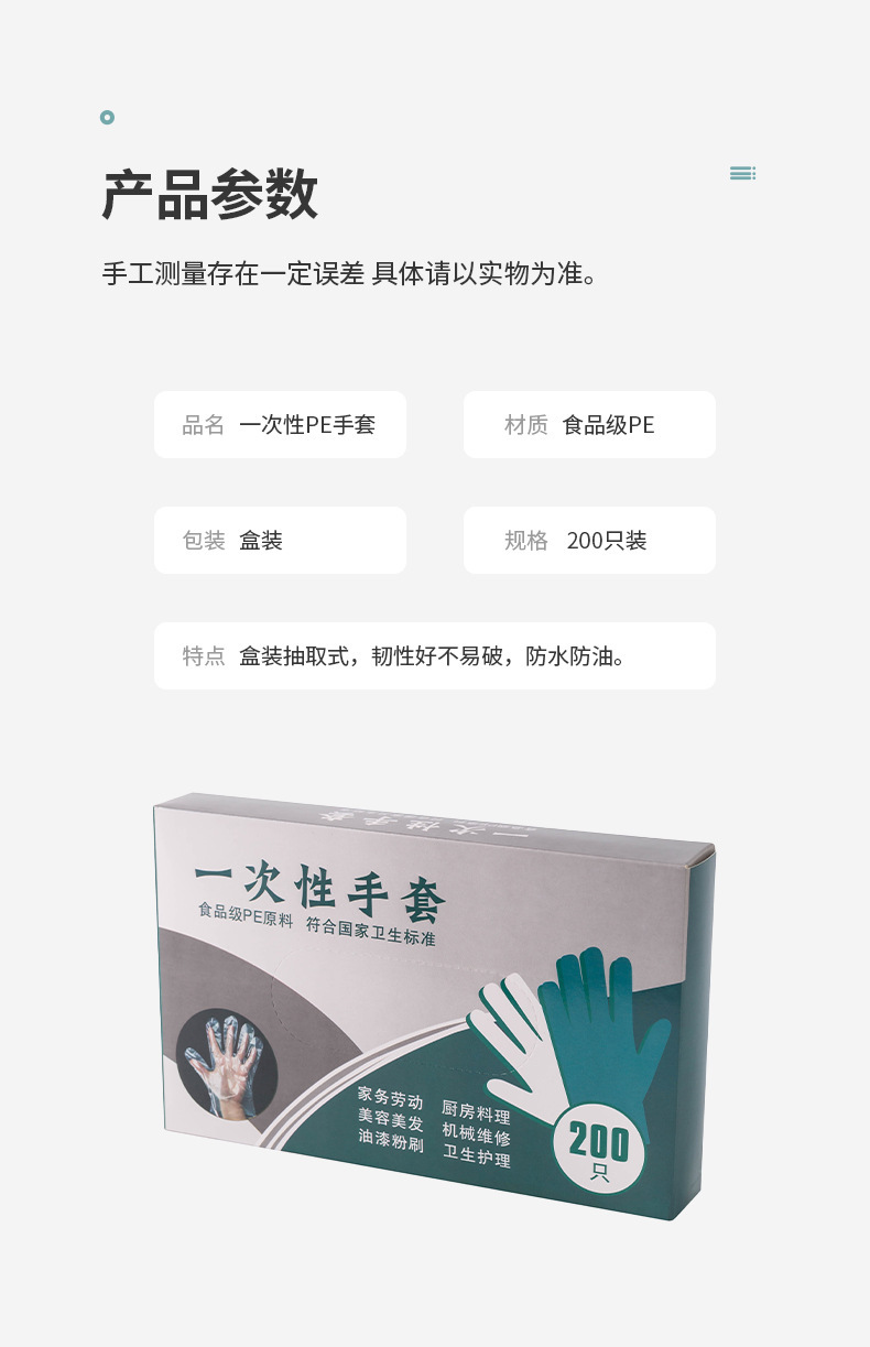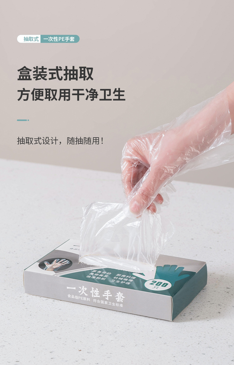 一次性手套食品级独立包装专用200只盒装抽取式PE家用一次性手套