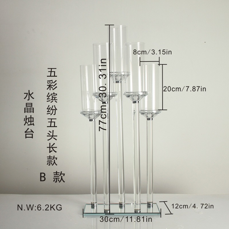 跨境水晶烛台厂家批发婚礼活动路引灯家居装饰豪华水晶5头烛台