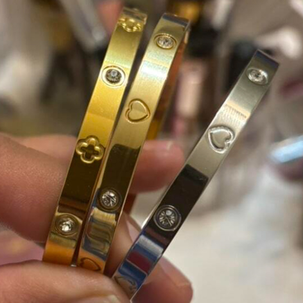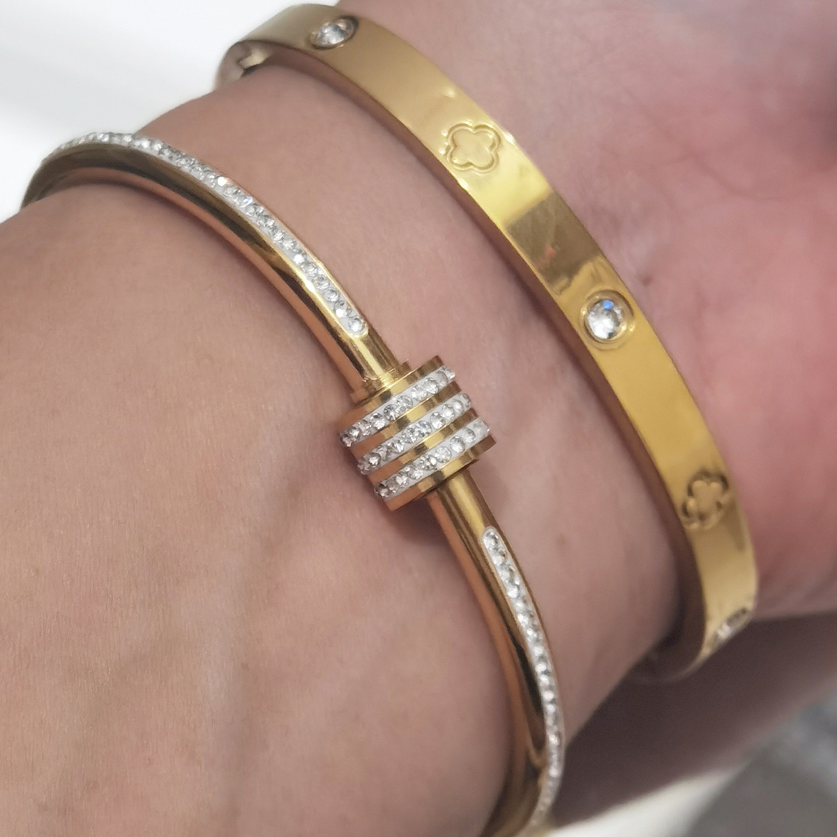 欧美热卖不锈钢四叶草金色手镯Ins钛钢首饰gold bangles跨境爆款