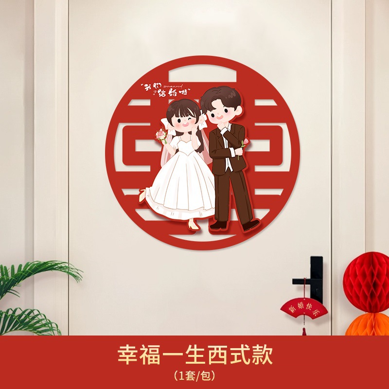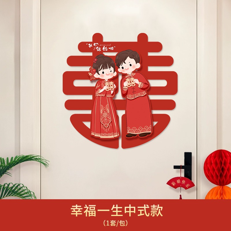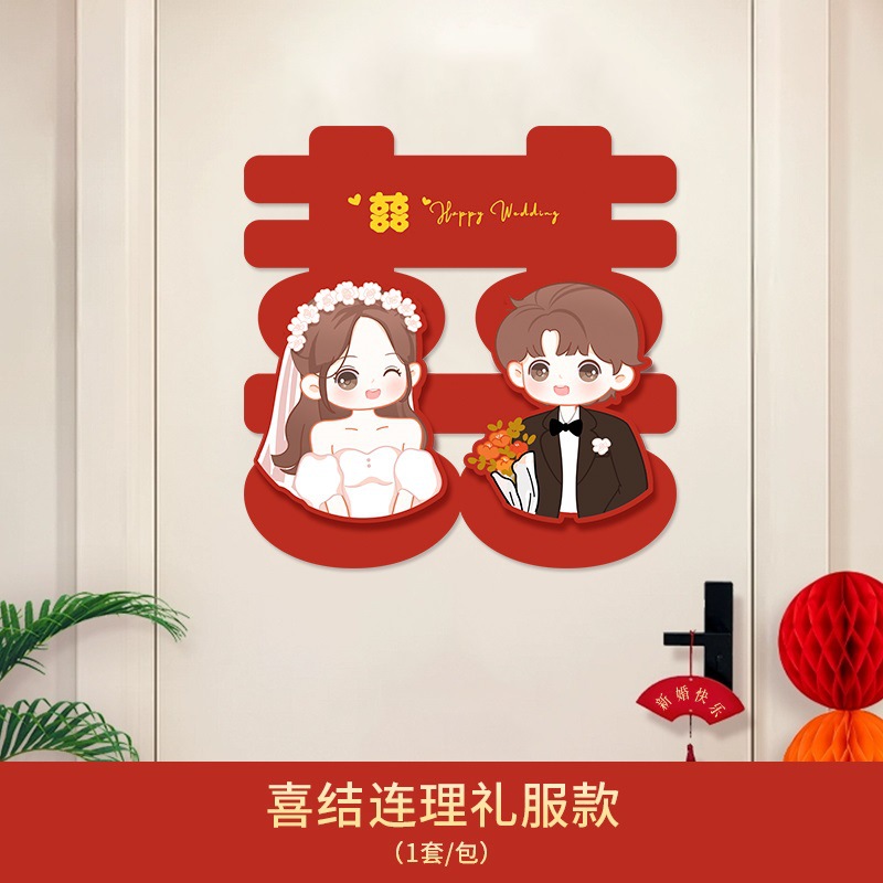 婚房布置喜字贴婚礼装饰用品卧室窗户超大门贴结婚立体喜字批发
