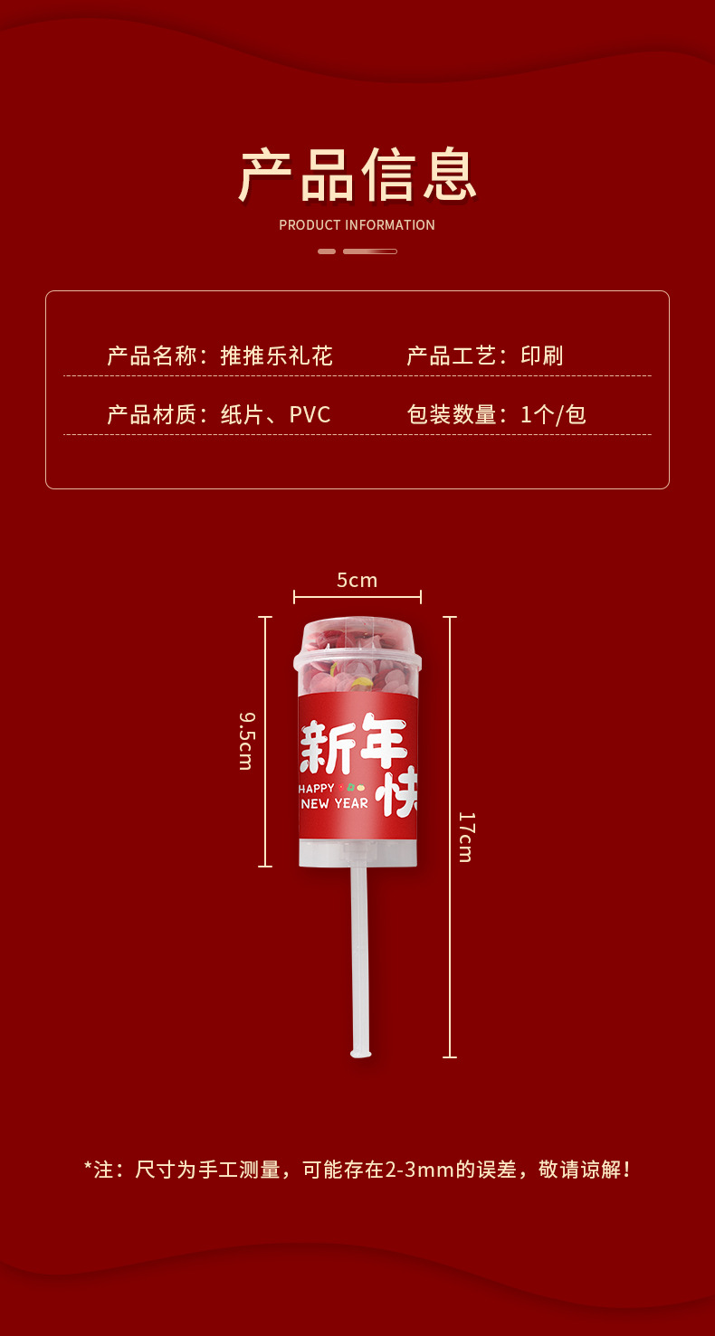 新年氛围手持推推乐小礼炮结婚用品大全婚庆手推小礼花手拧喷花筒