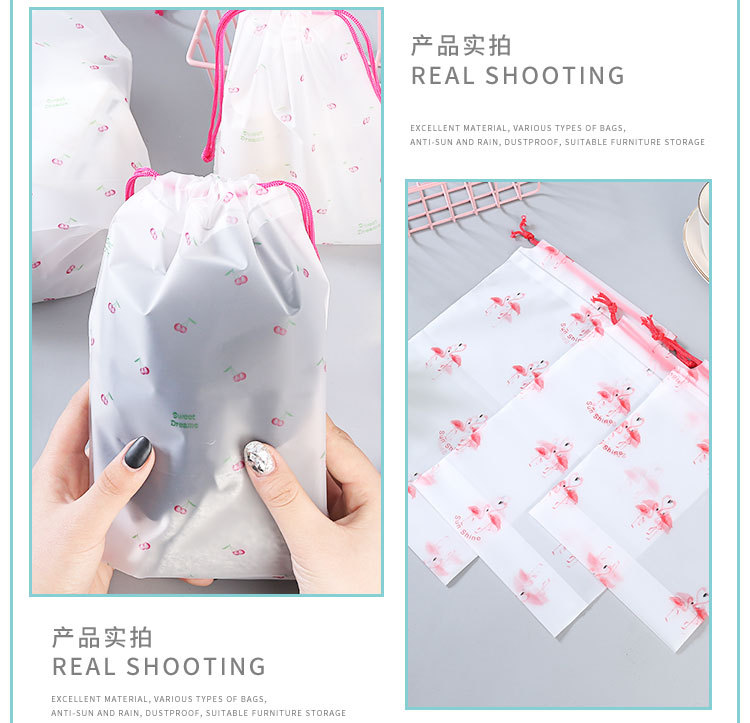 厂家抽绳束口袋PE磨砂透明塑料袋子鞋子分装收纳袋袜子服装包装袋