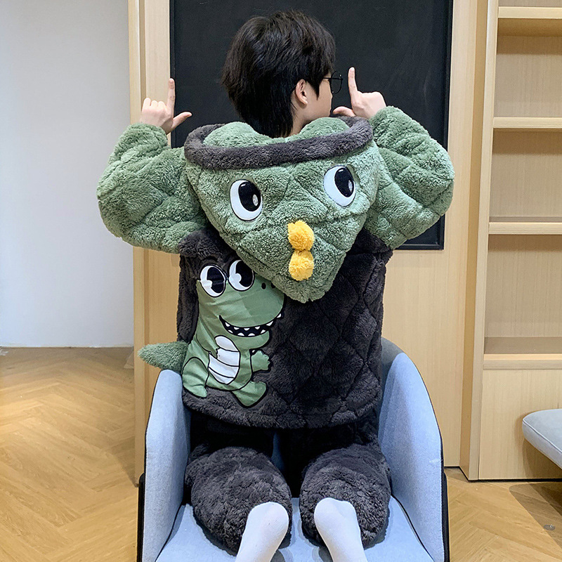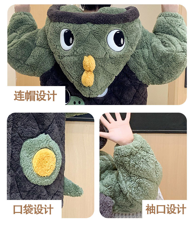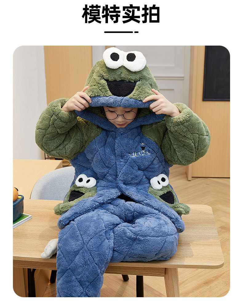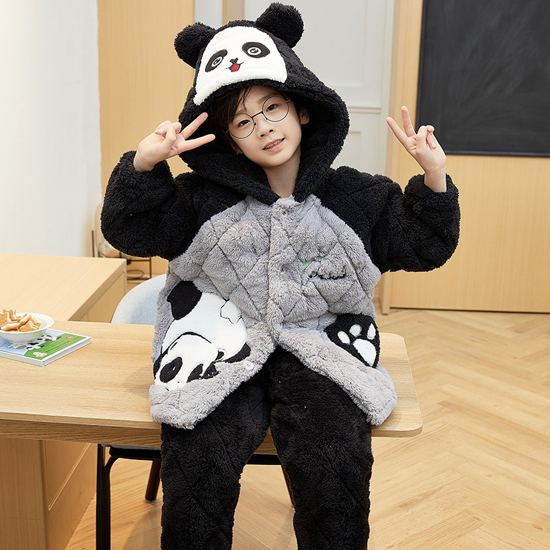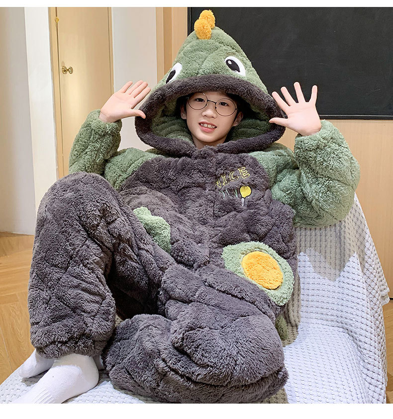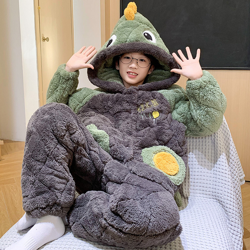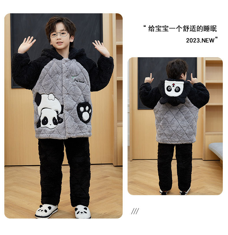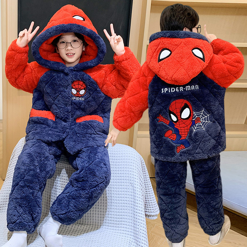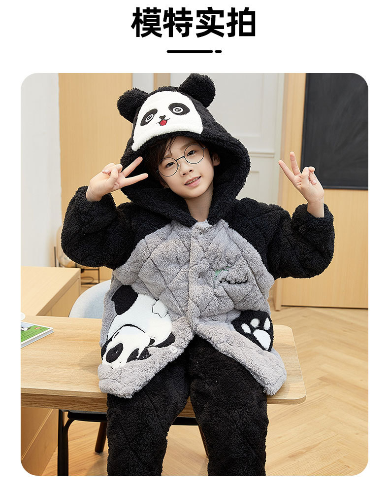 儿童珊瑚绒睡衣男孩冬季三层夹棉加厚款宝宝男童卡通法兰绒家居服