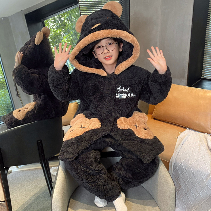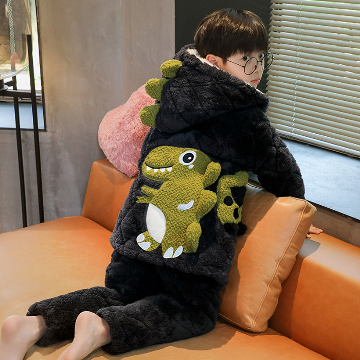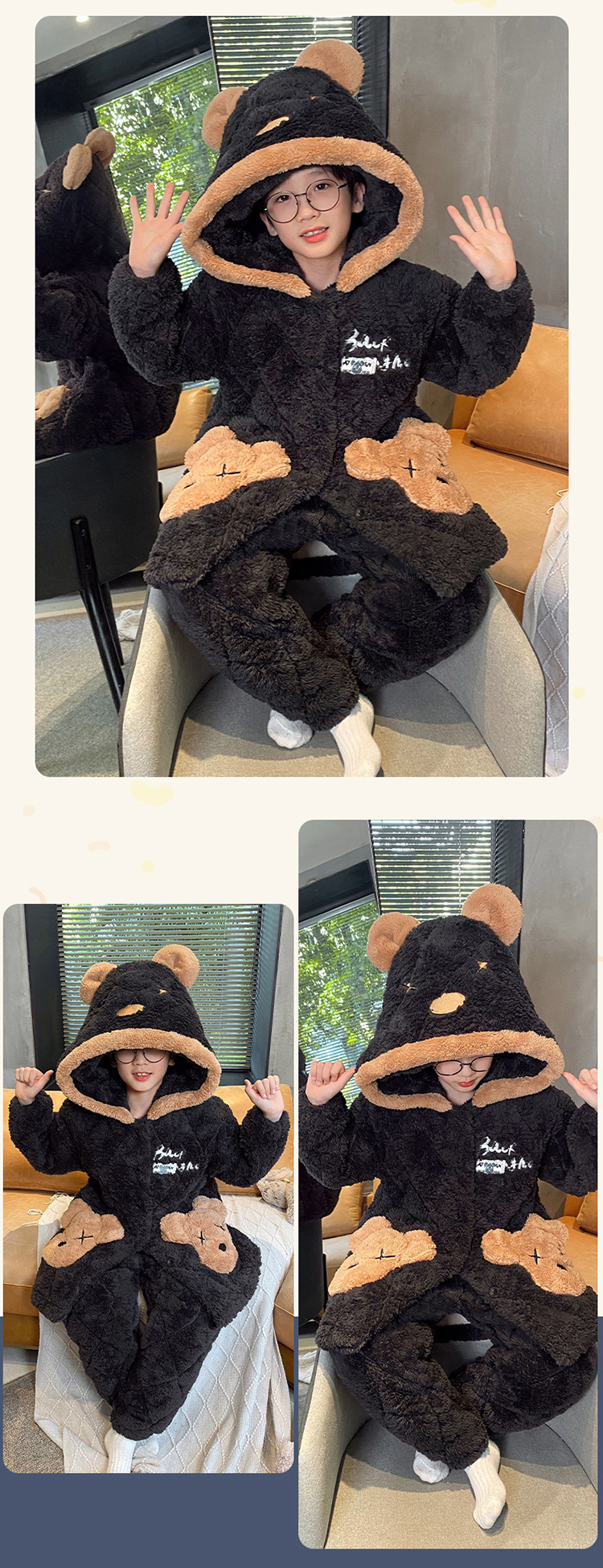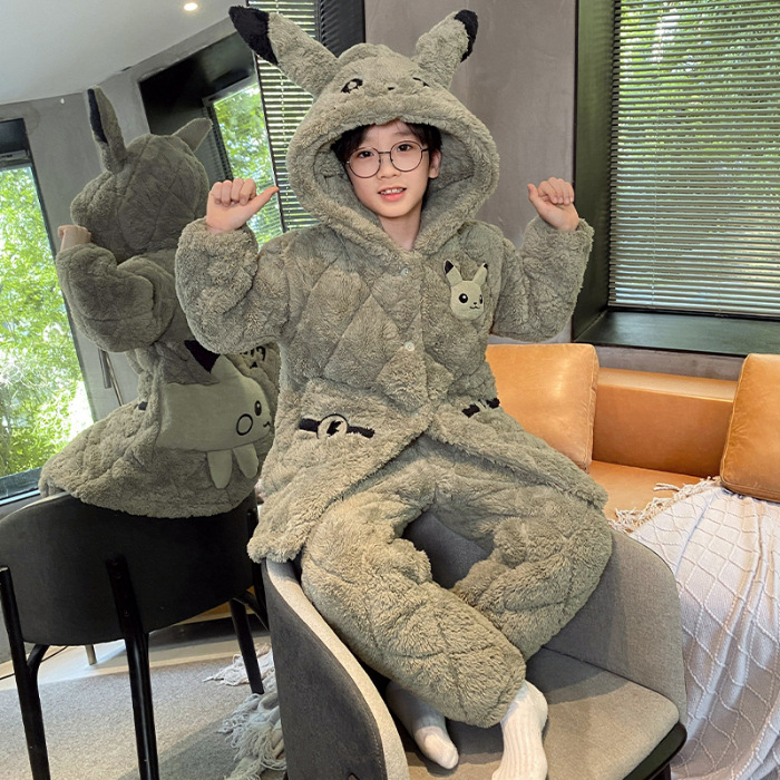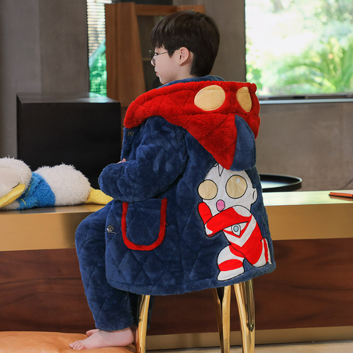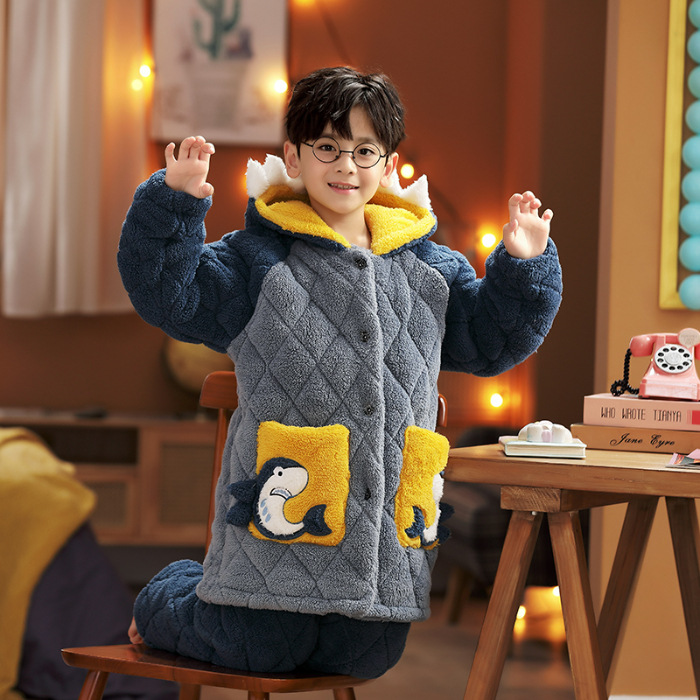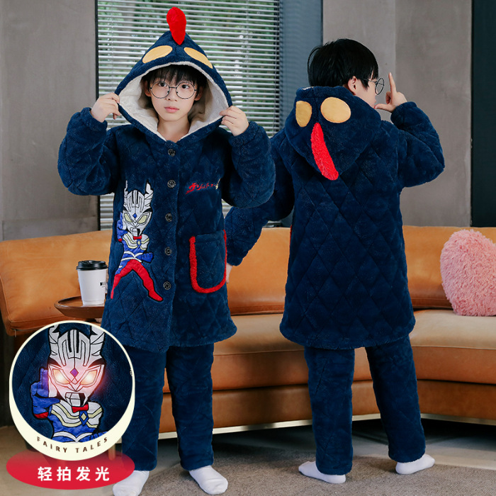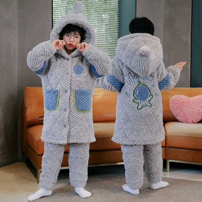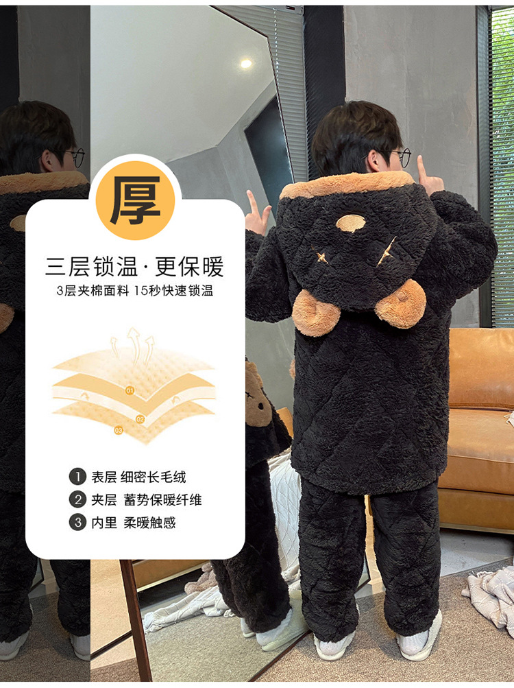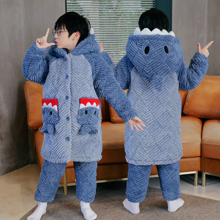 男童睡衣三层夹棉珊瑚绒冬季加厚款儿童男孩法兰绒2024新款家居服