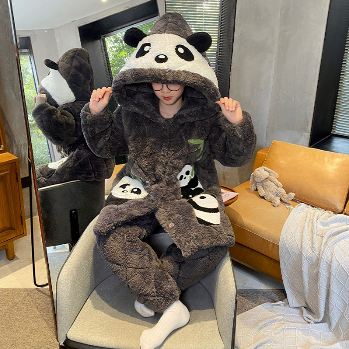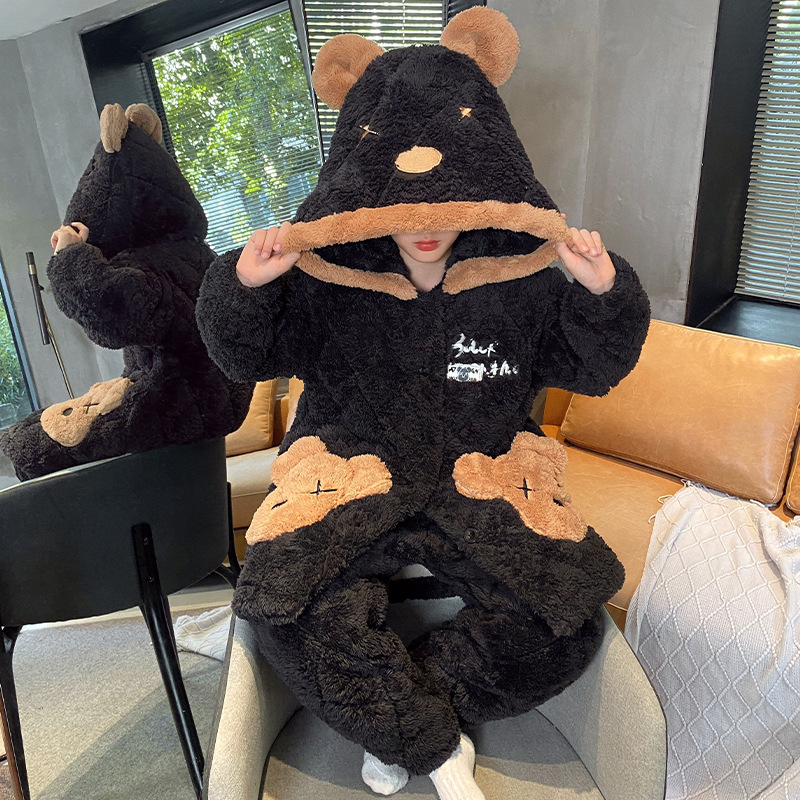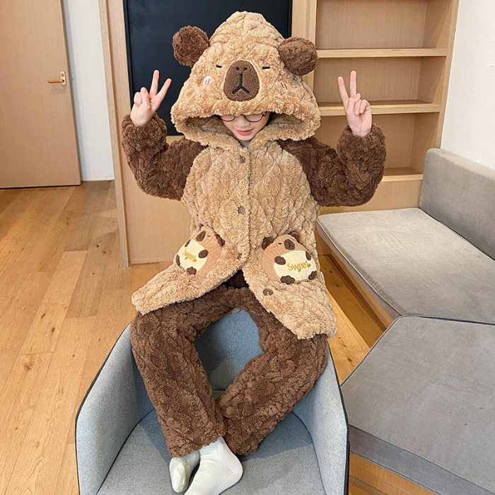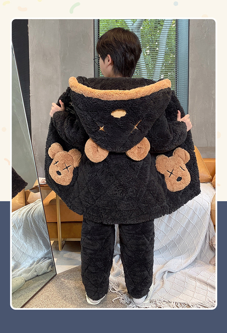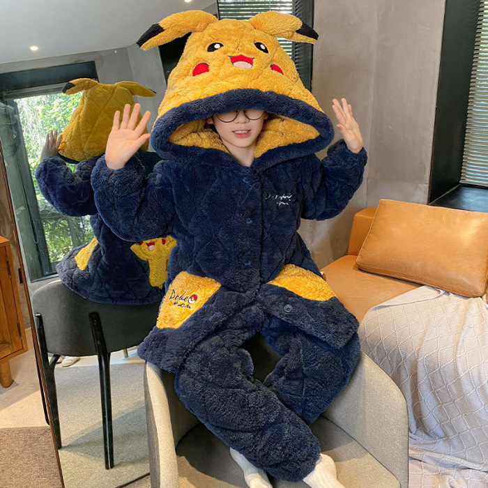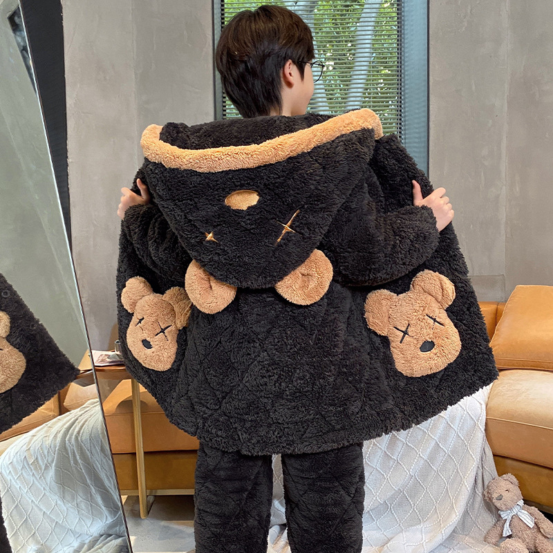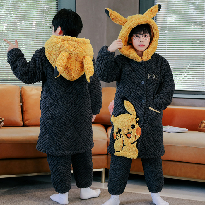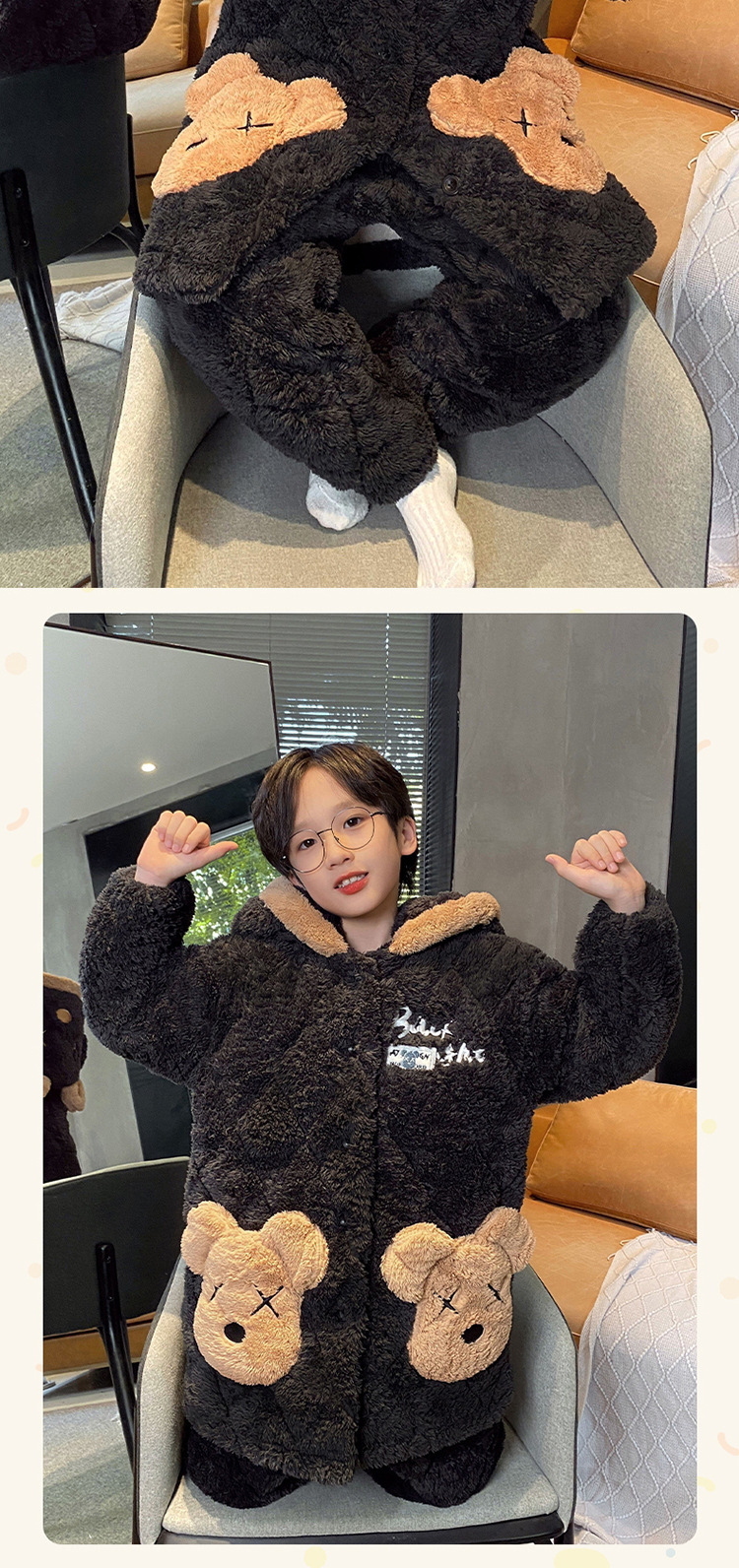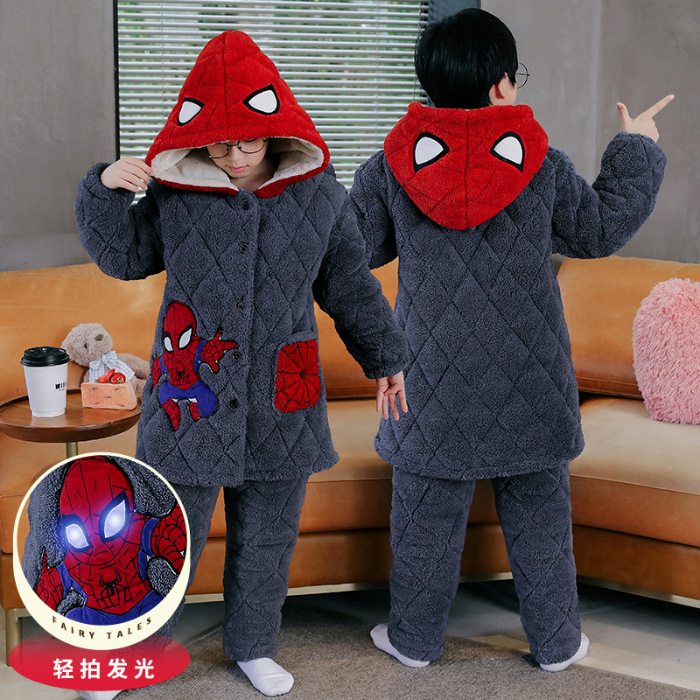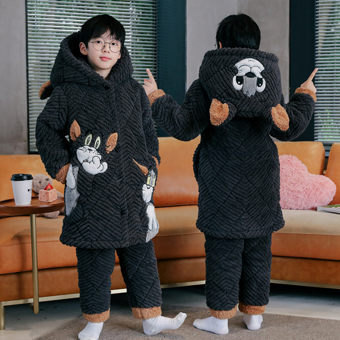 男童睡衣三层夹棉珊瑚绒冬季加厚款儿童男孩法兰绒2024新款家居服