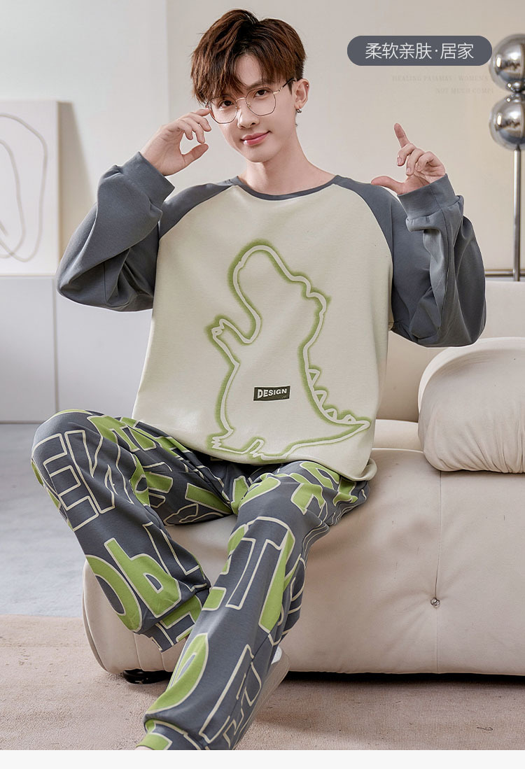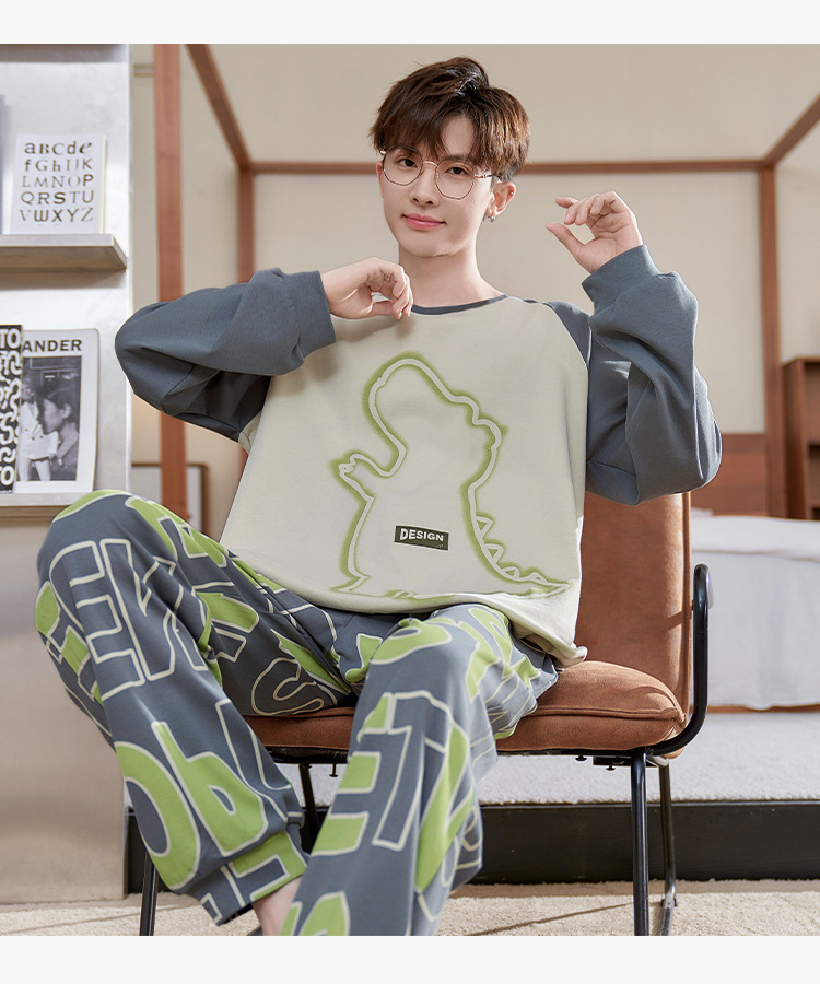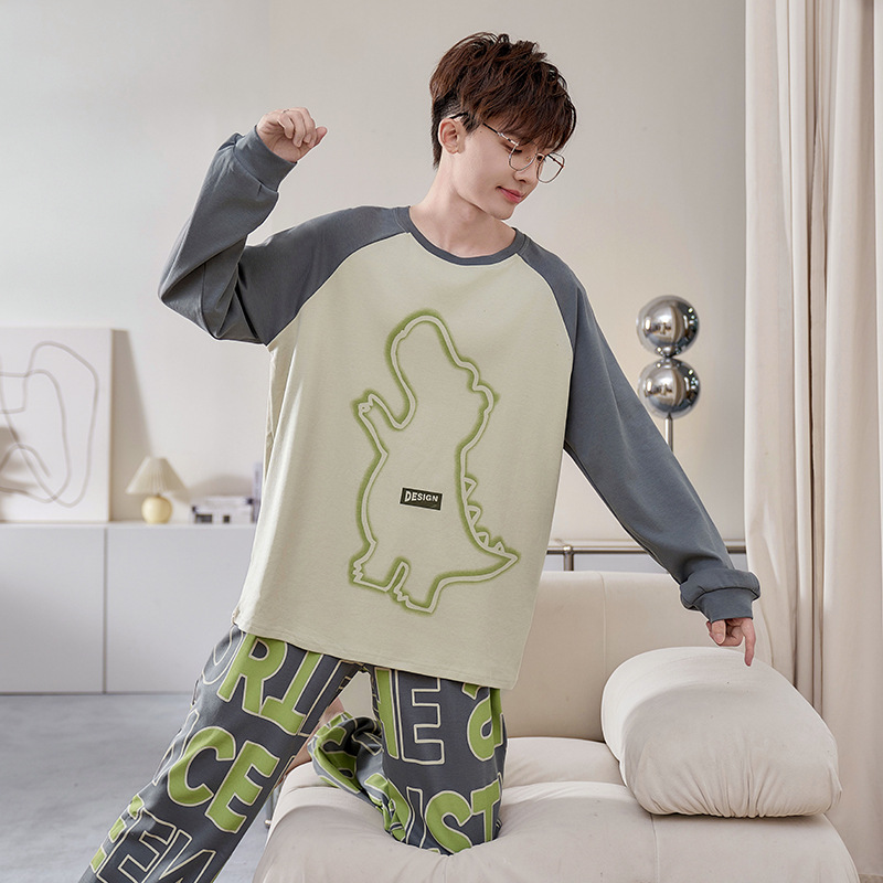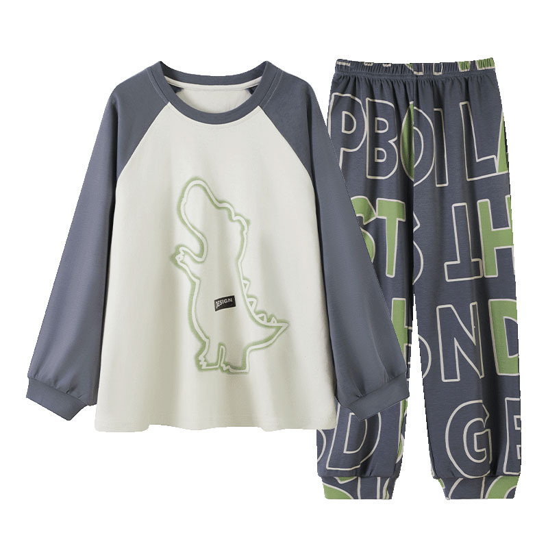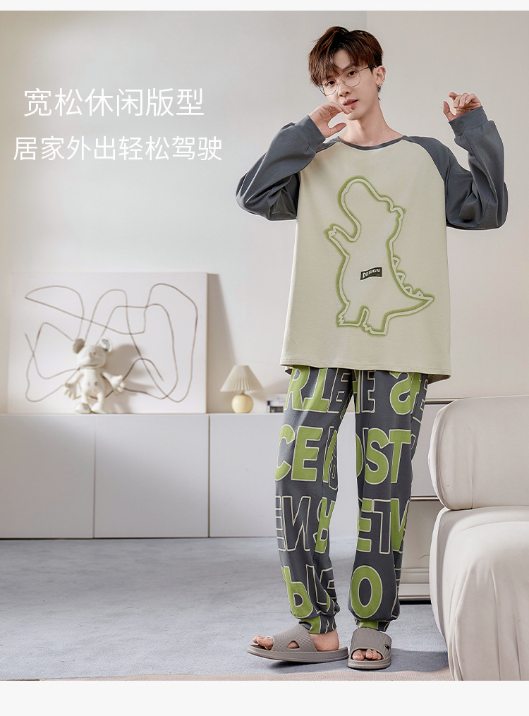 2024秋季青少年男士长袖睡衣纯棉面料秋款套装少男大童家居服套装