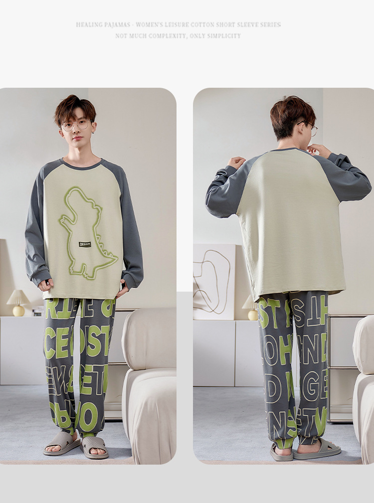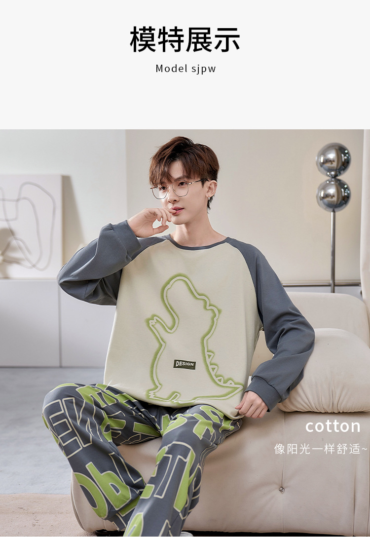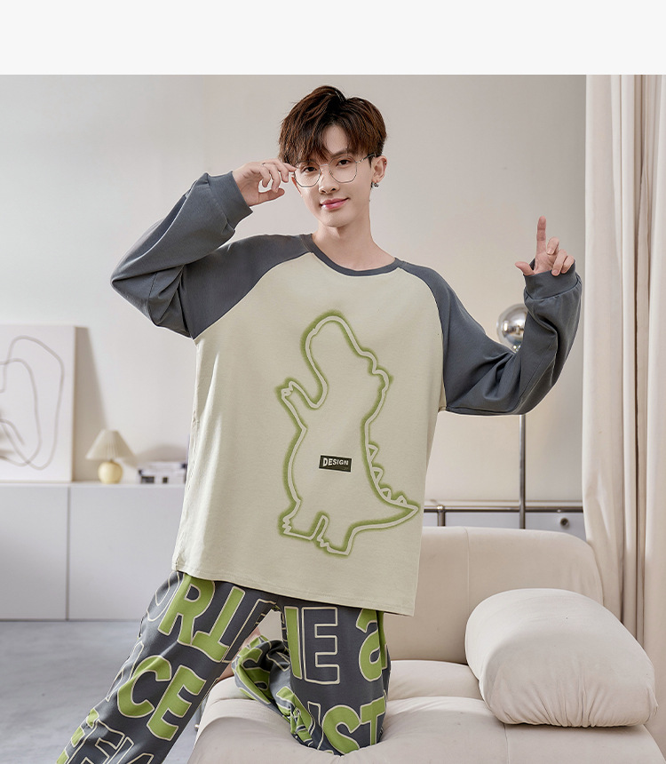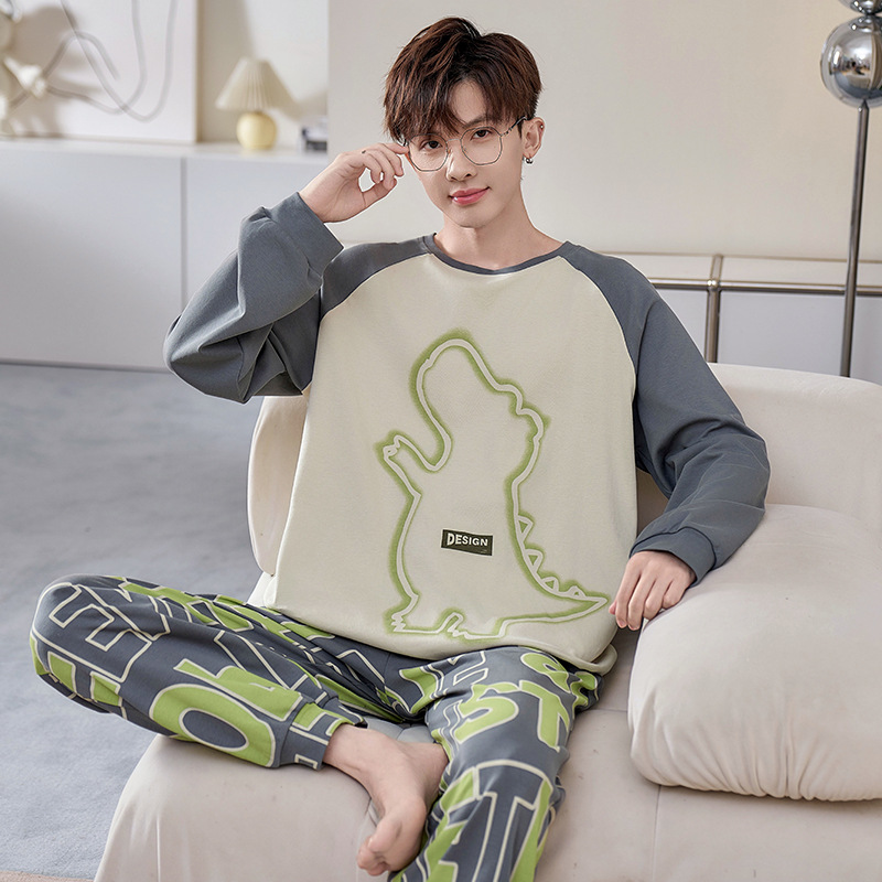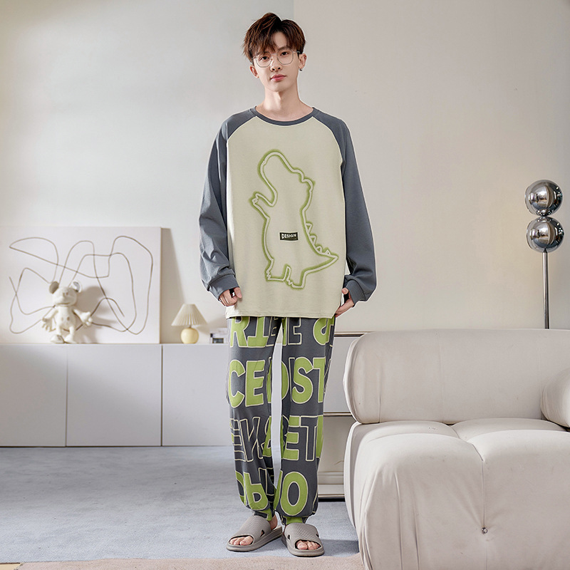 2024秋季青少年男士长袖睡衣纯棉面料秋款套装少男大童家居服套装