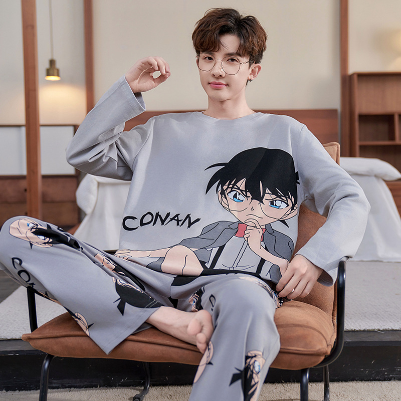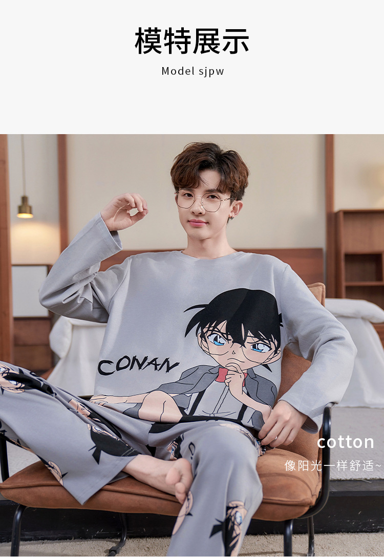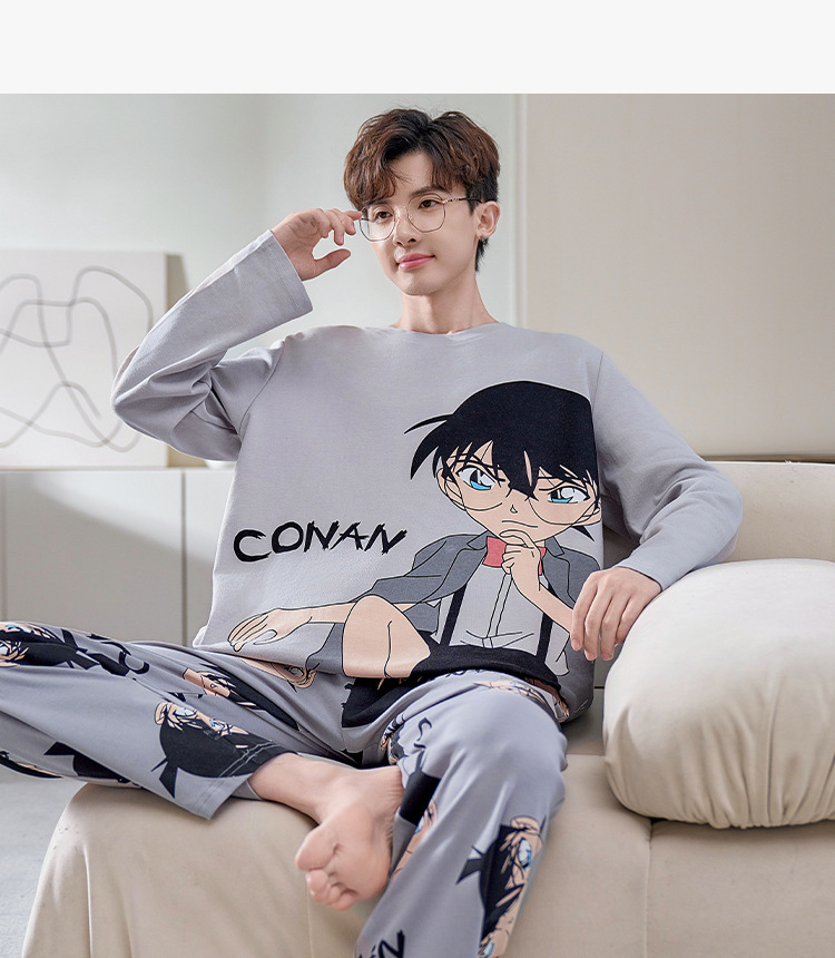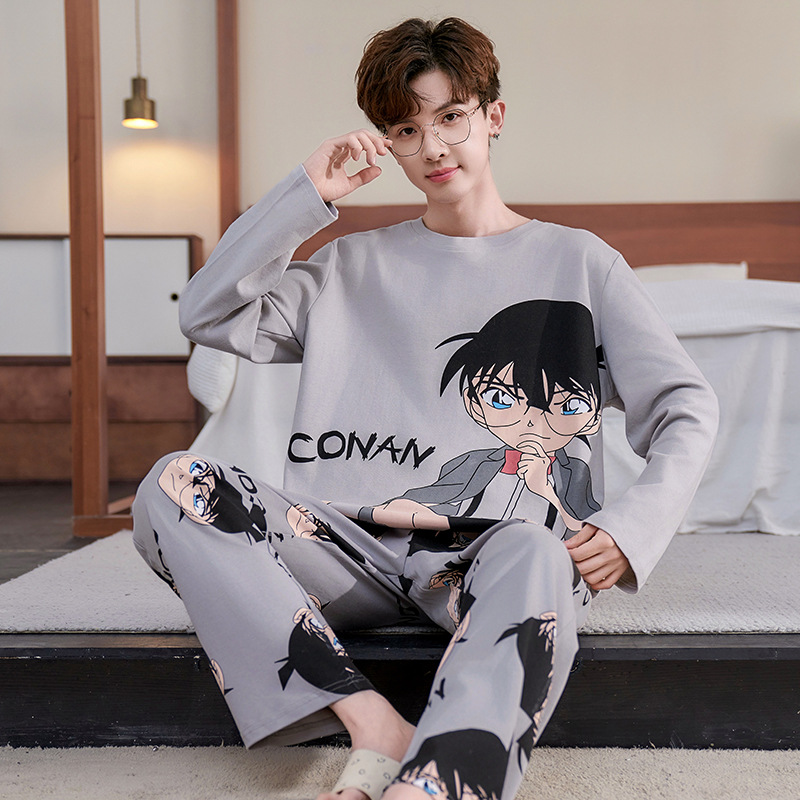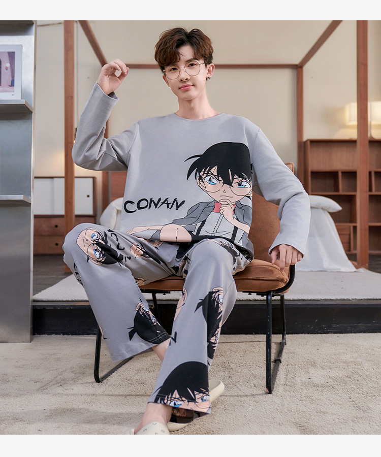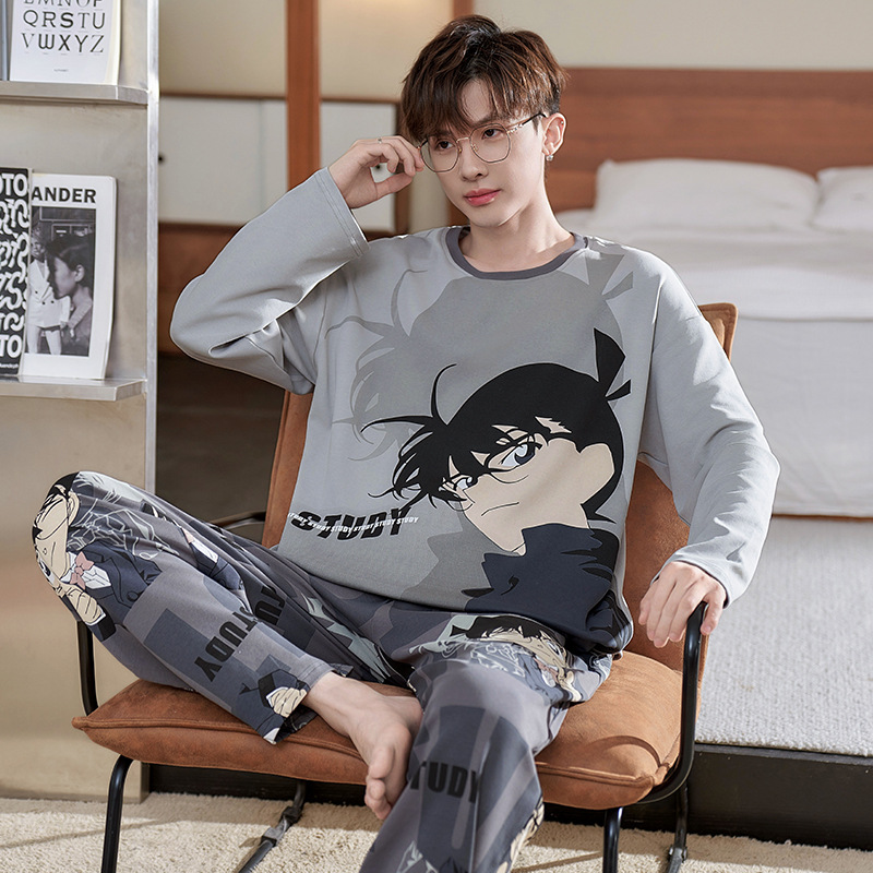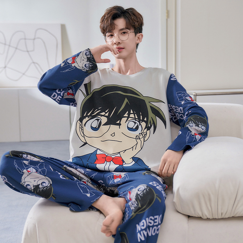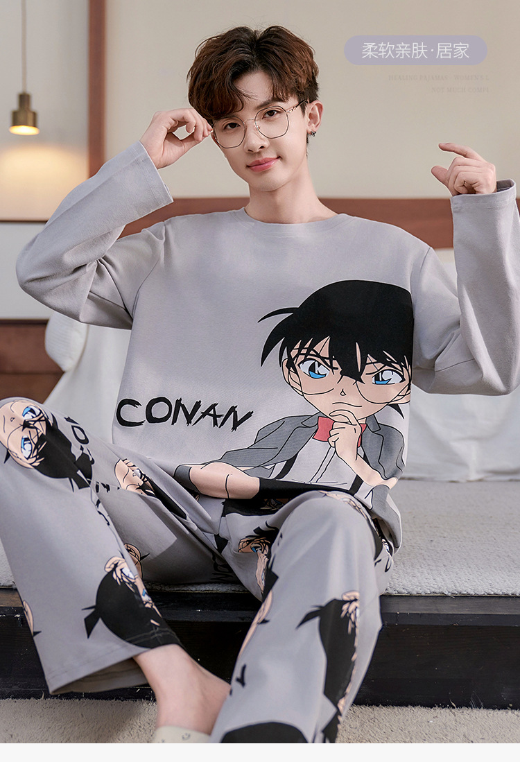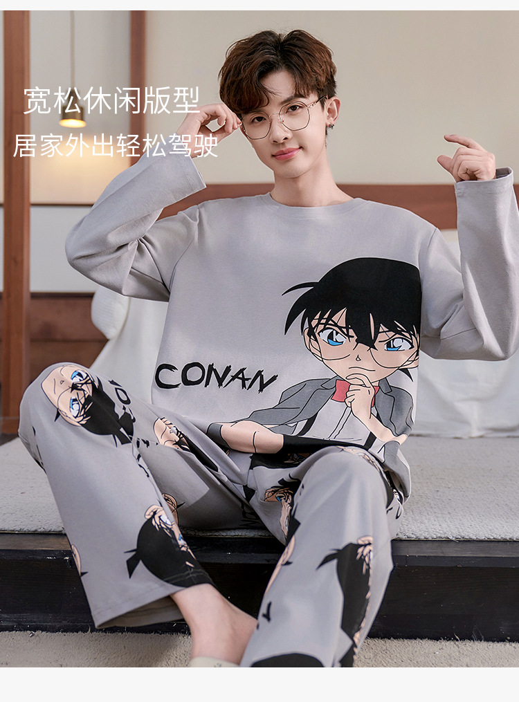 纯棉睡衣男春秋长袖学生青少年卡通柯南男生可外穿棉家居服套装