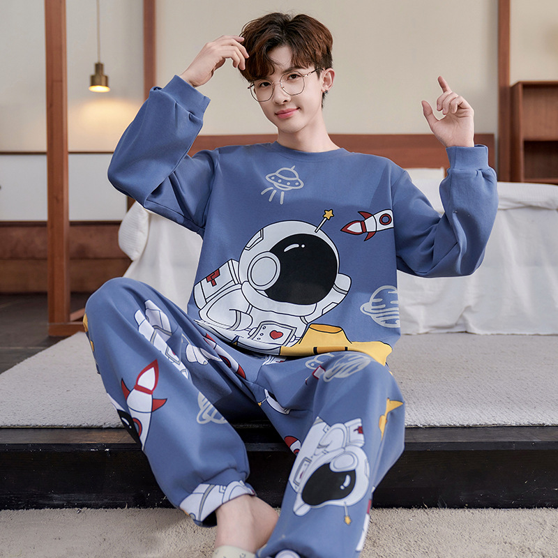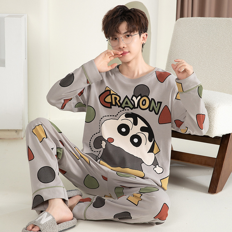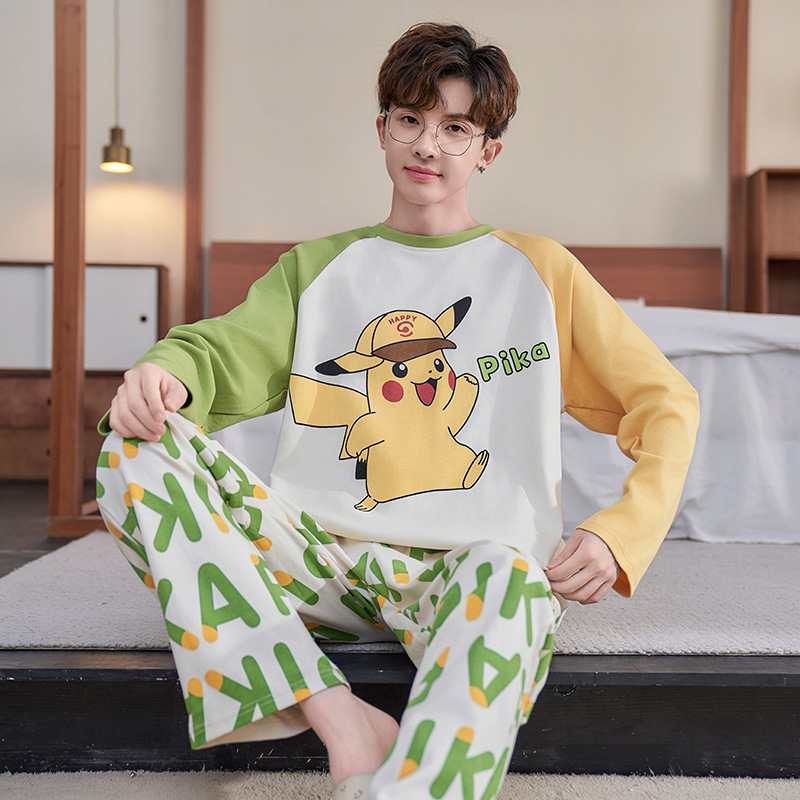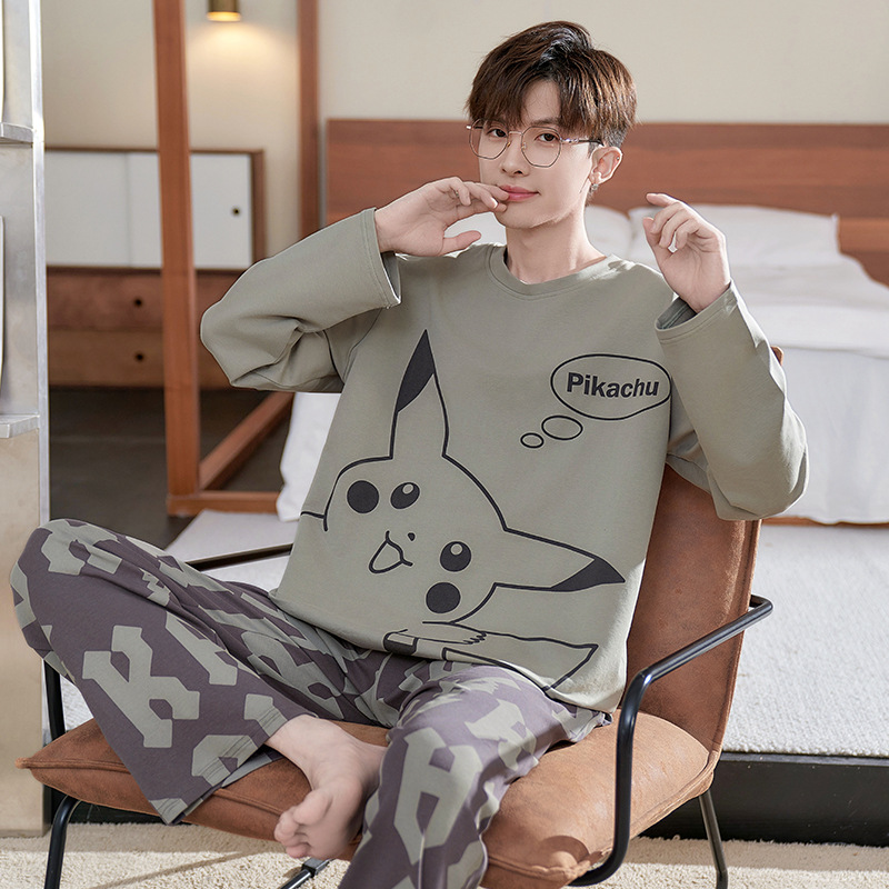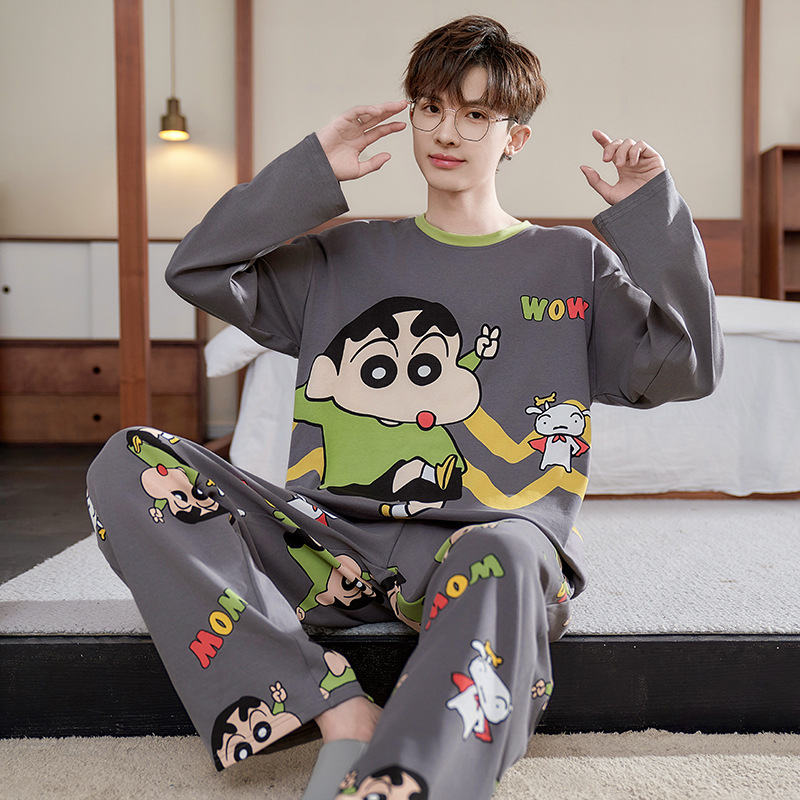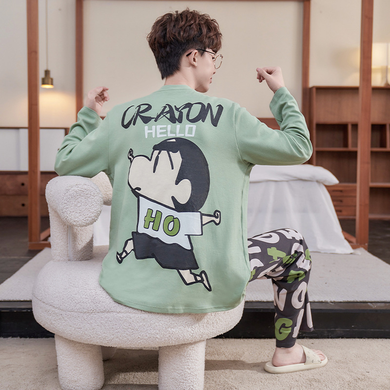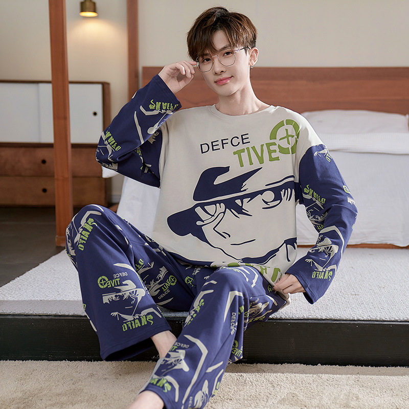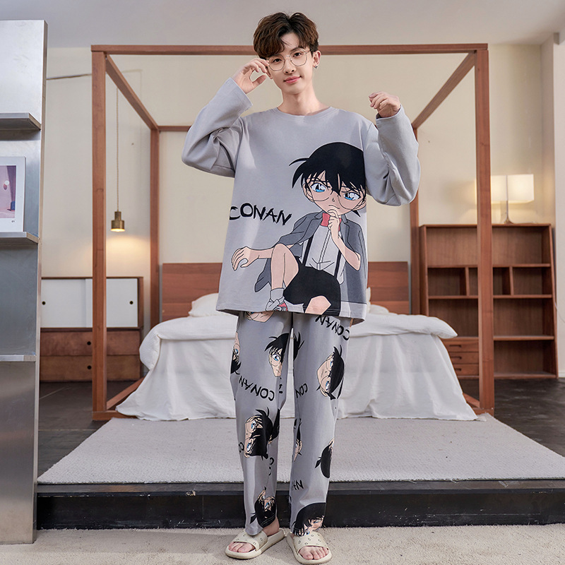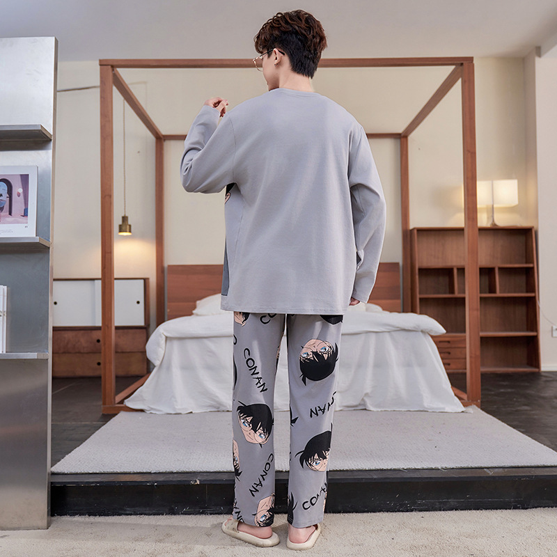 纯棉睡衣男春秋长袖学生青少年卡通柯南男生可外穿棉家居服套装