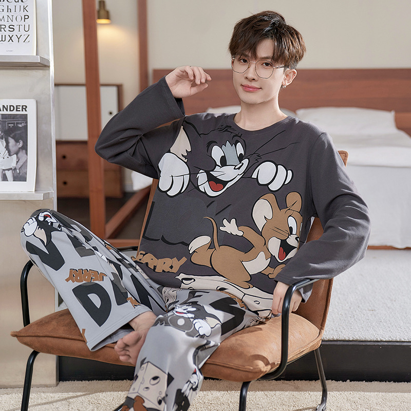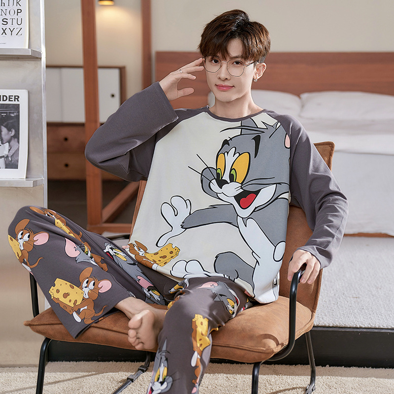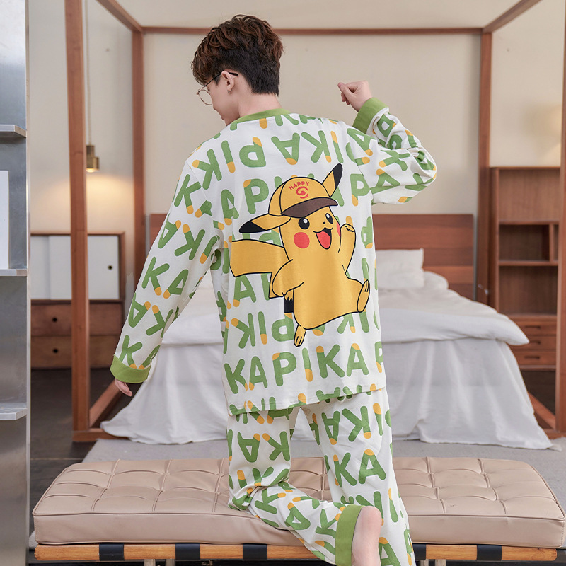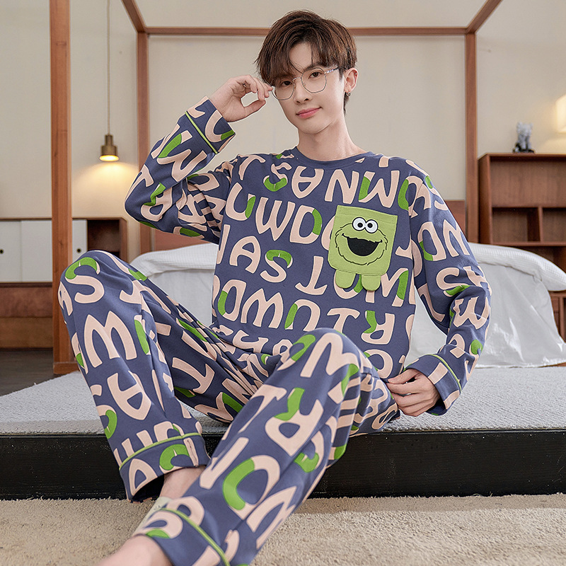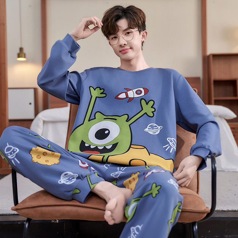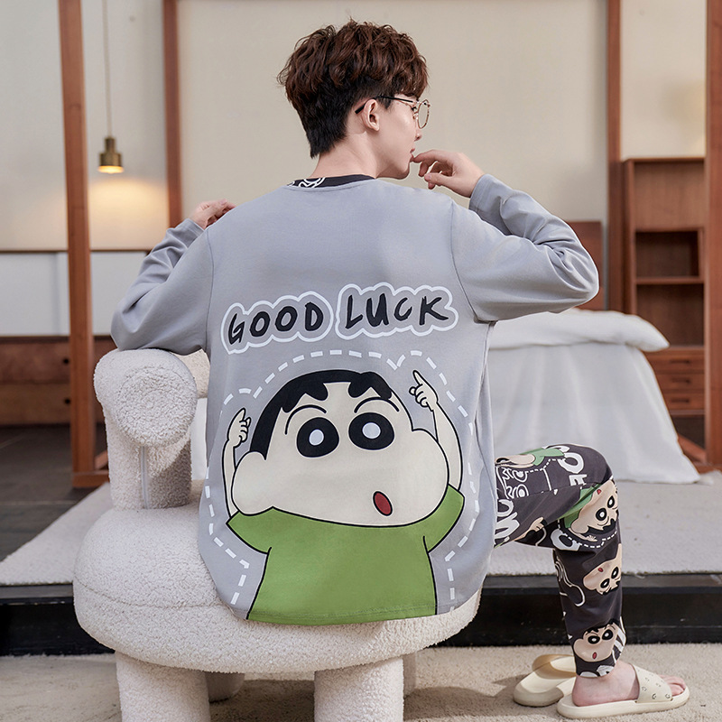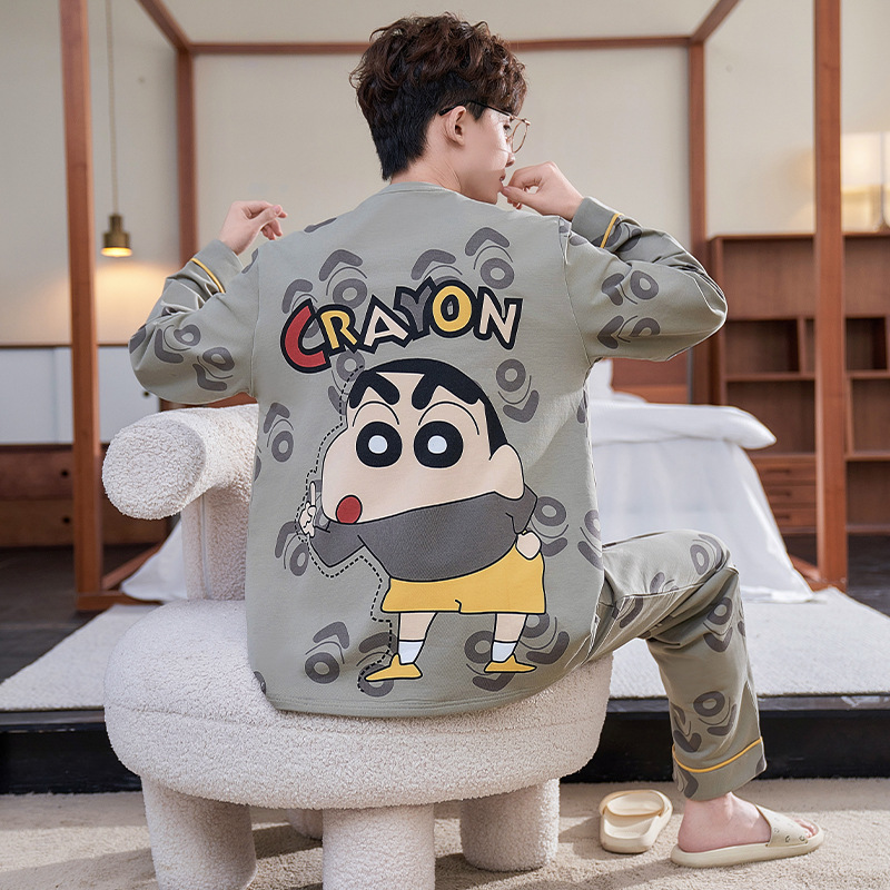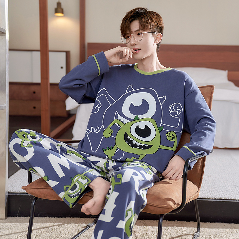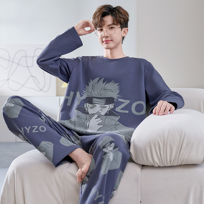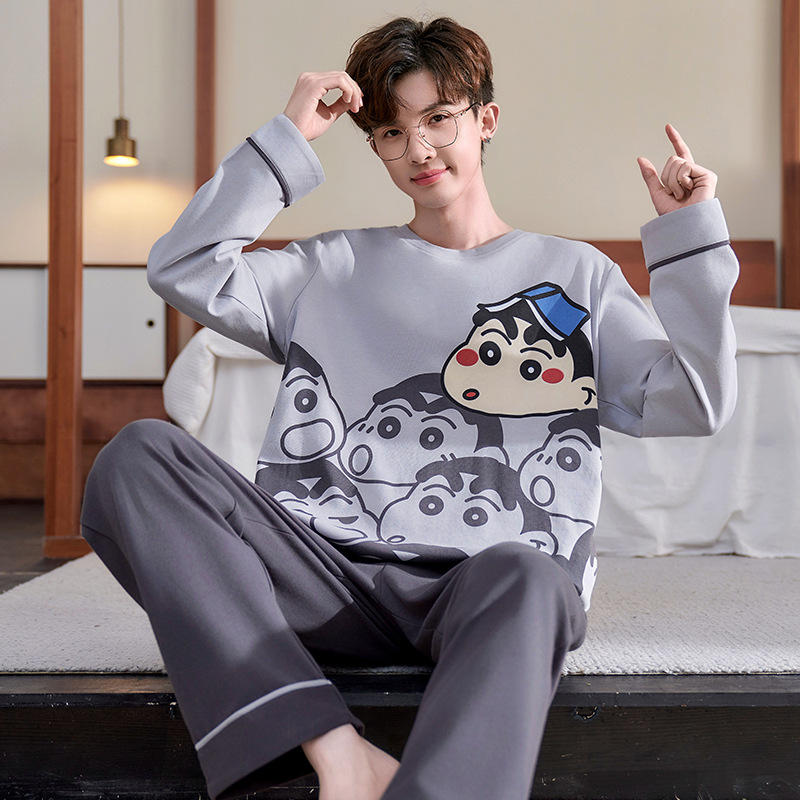 纯棉睡衣男春秋长袖学生青少年卡通柯南男生可外穿棉家居服套装