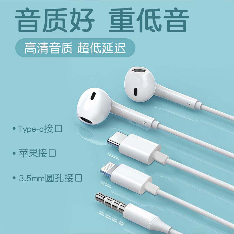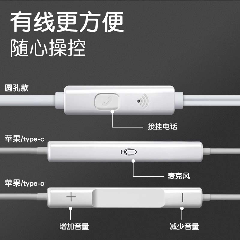 线控蓝牙有线耳机适用于iphone华为苹果安卓typec接口K歌带麦直插