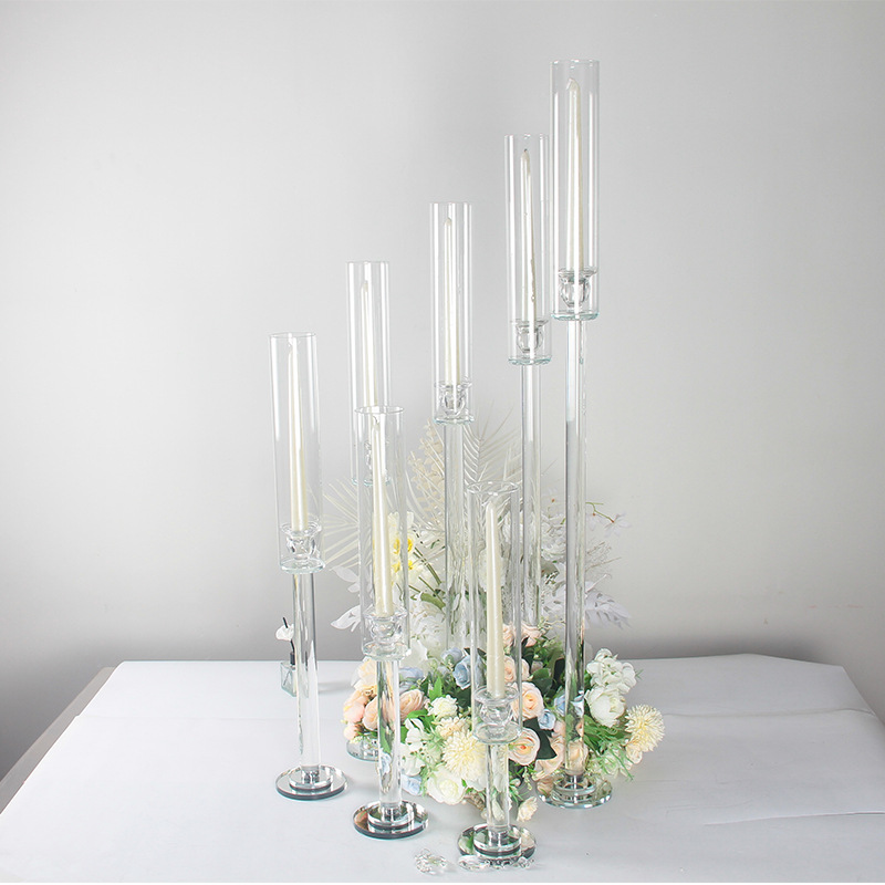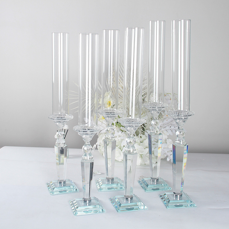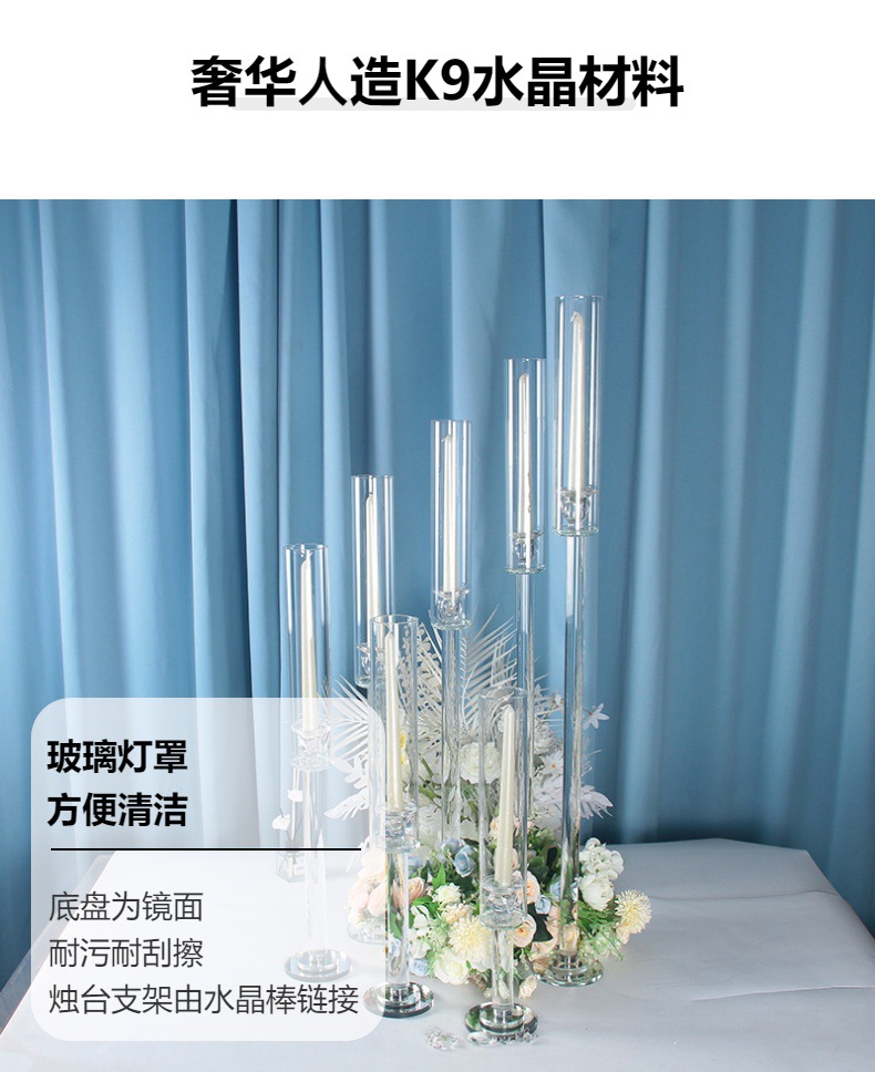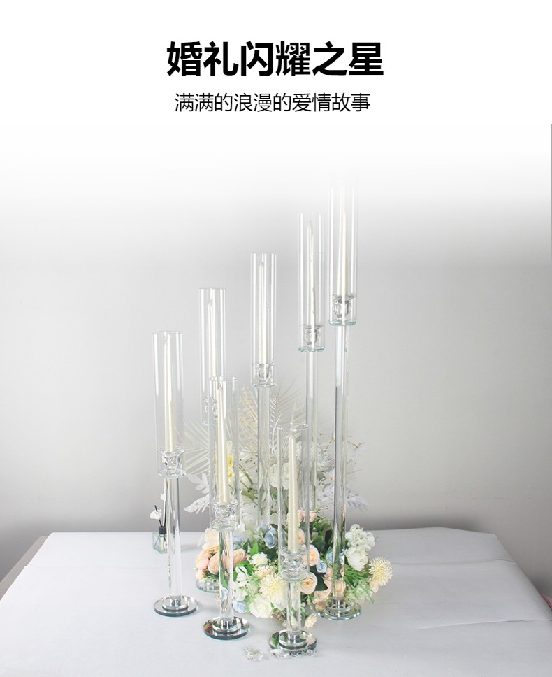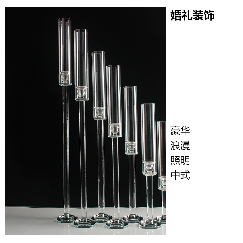 单头水晶烛台婚礼装饰玻璃蜡烛台酒店派对活动餐桌摆件高玻璃管