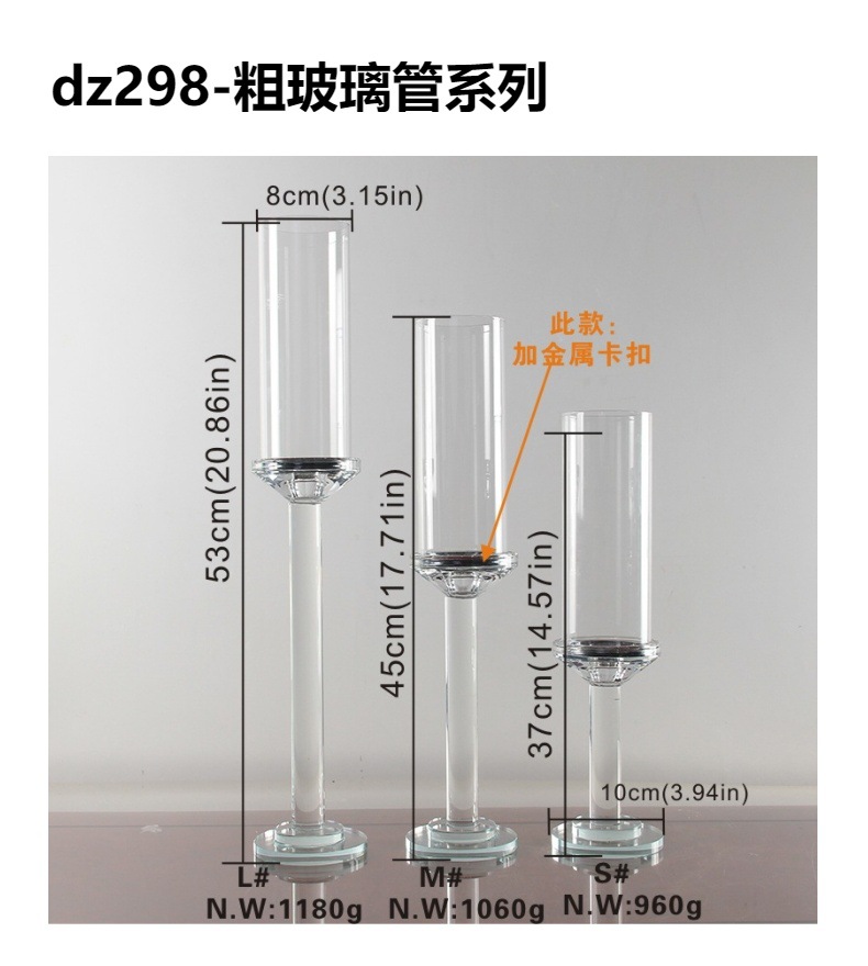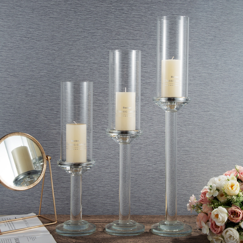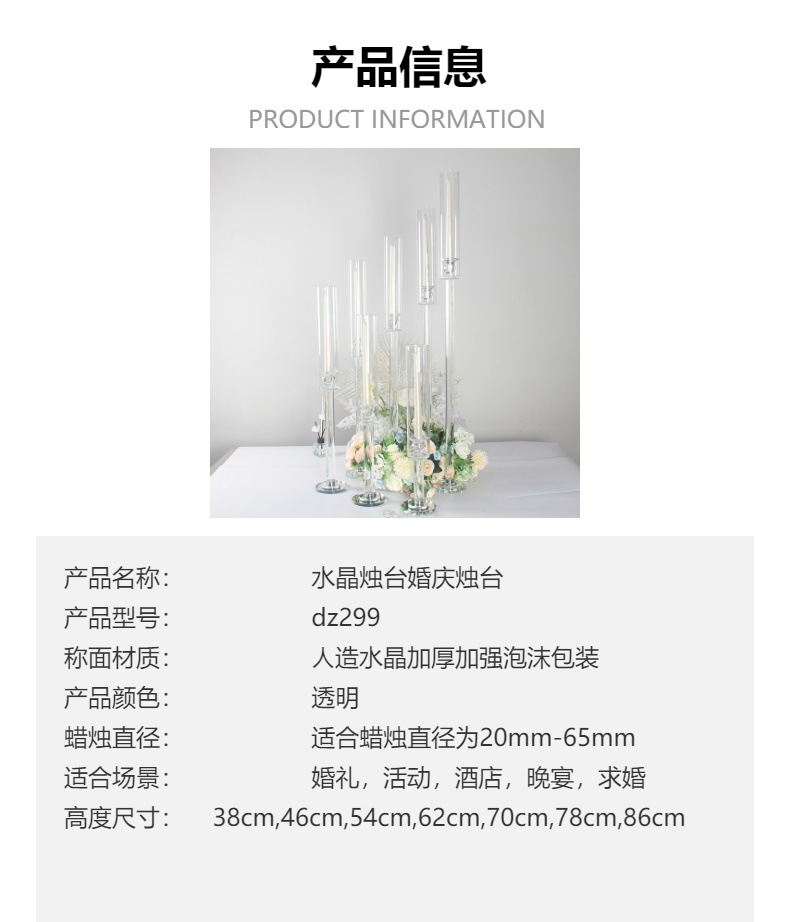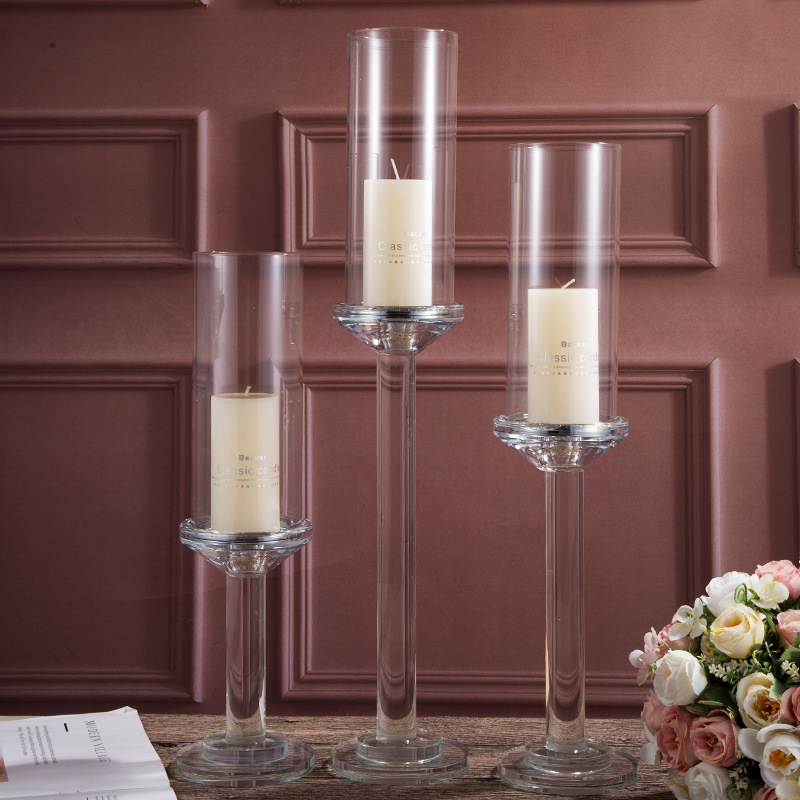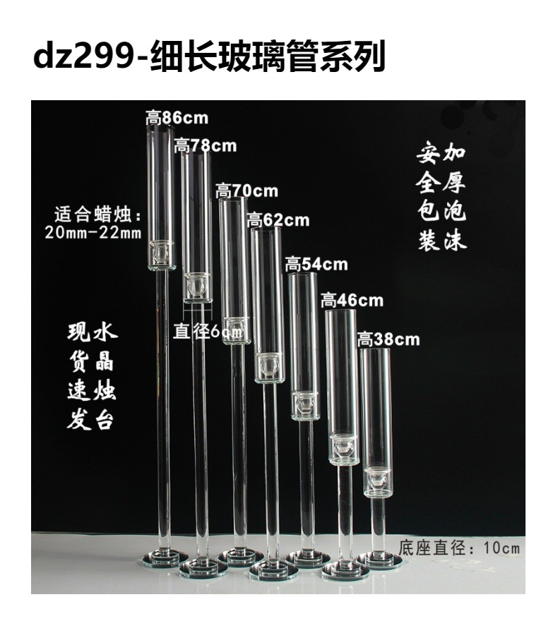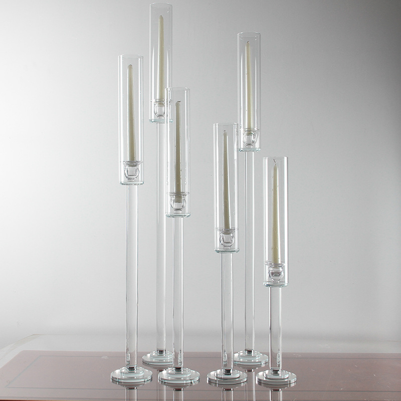 单头水晶烛台婚礼装饰玻璃蜡烛台酒店派对活动餐桌摆件高玻璃管