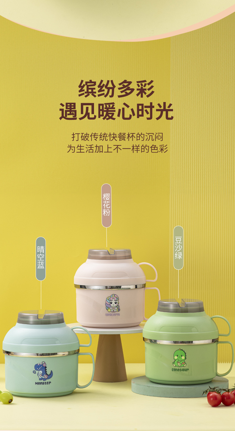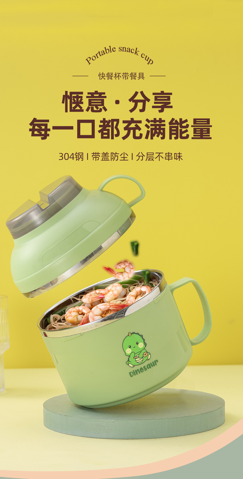 304不锈钢泡面杯带餐具泡面碗上班族学生便当盒餐盒食堂防烫饭盒