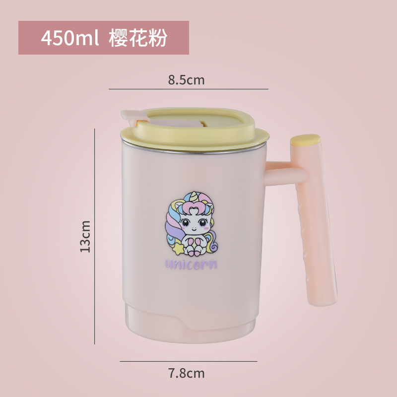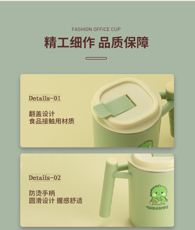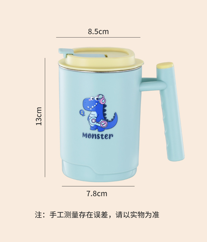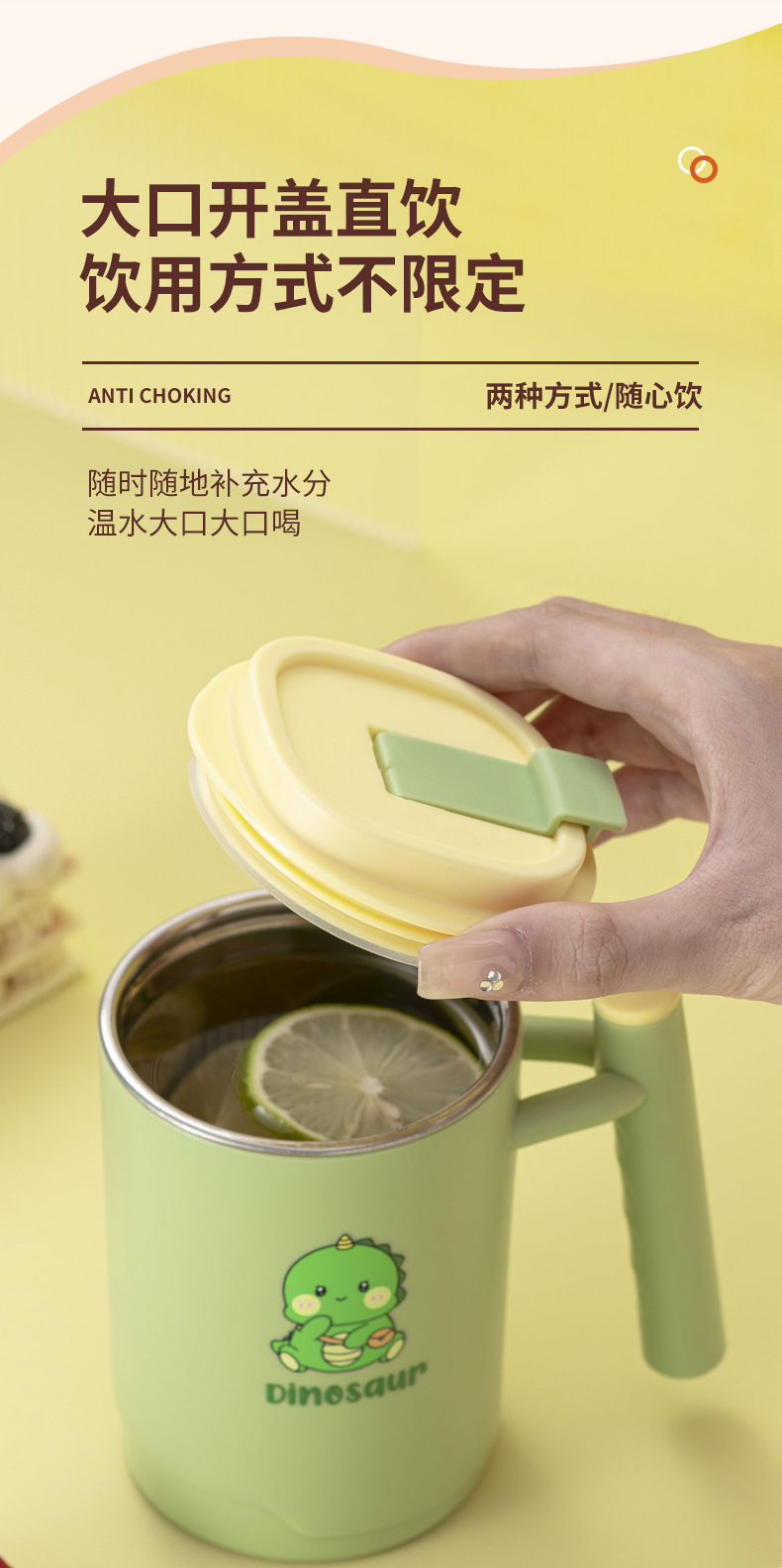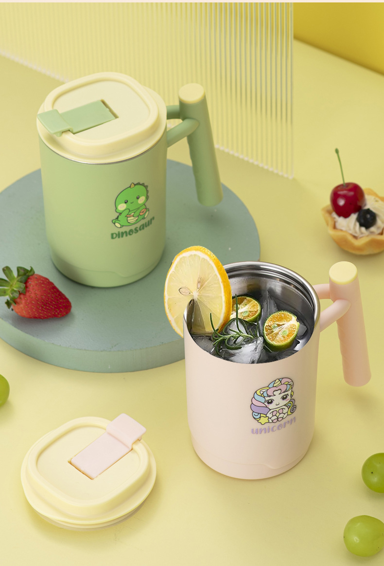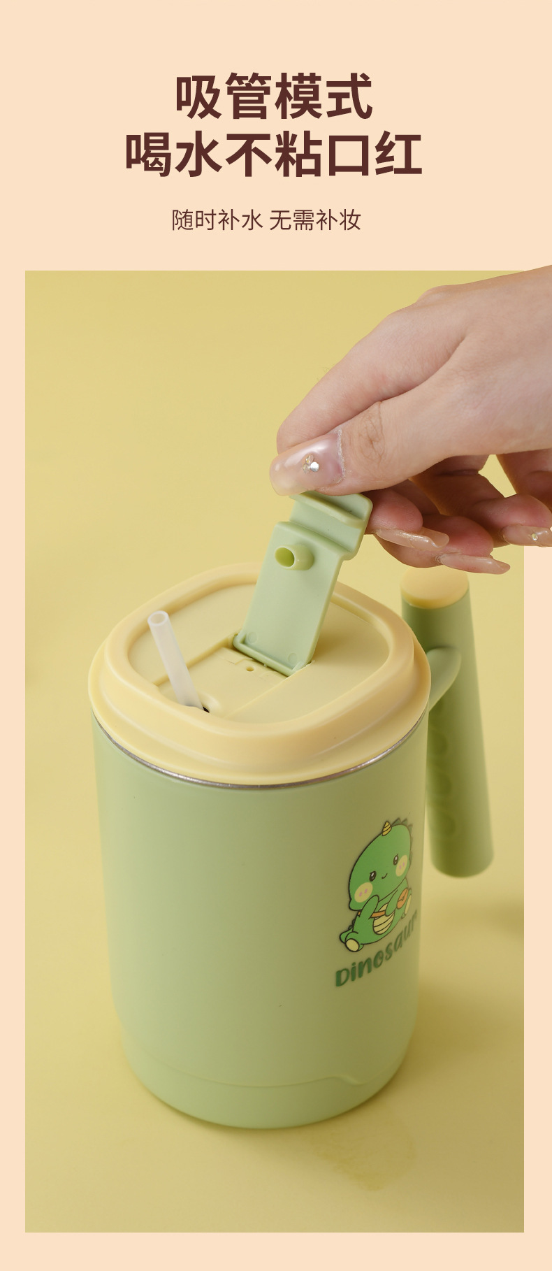 304不锈钢水杯带手柄卡通图案马克杯高颜值水杯办公杯带盖咖啡杯