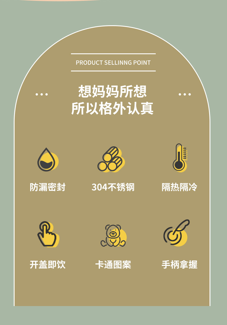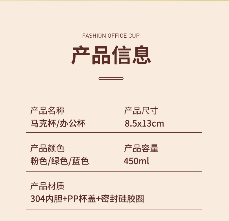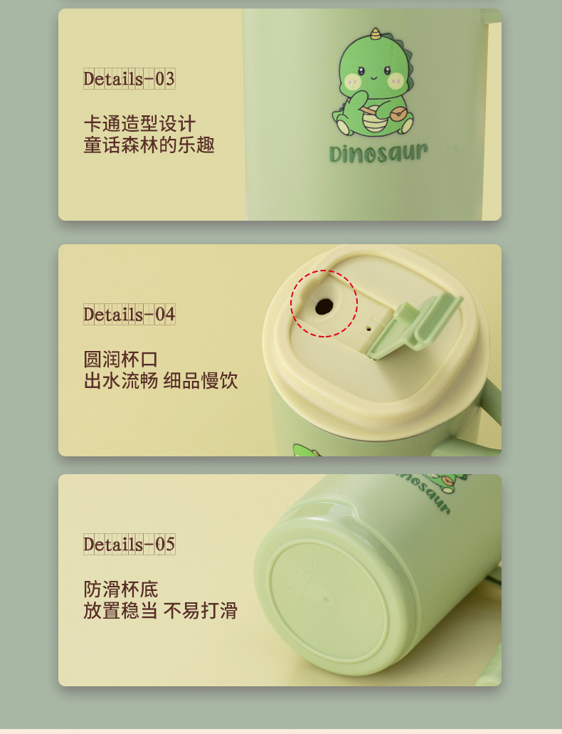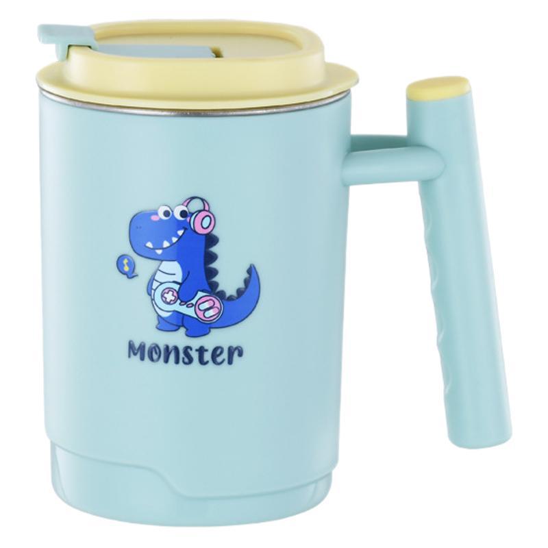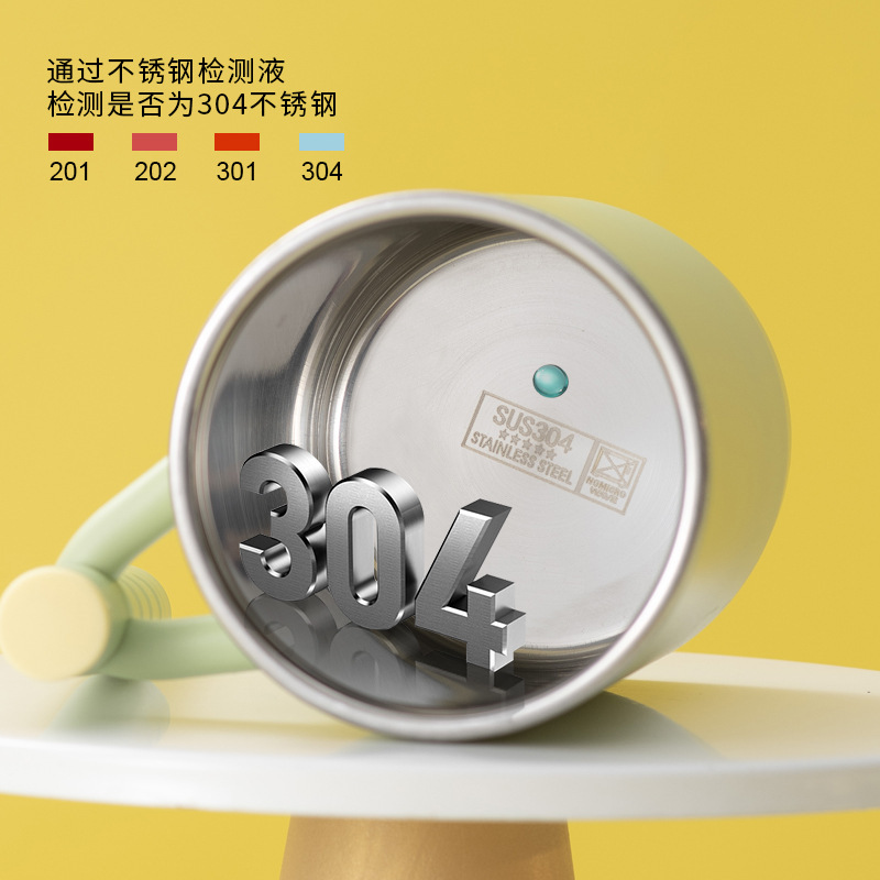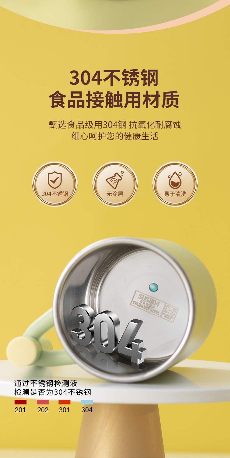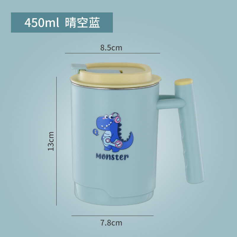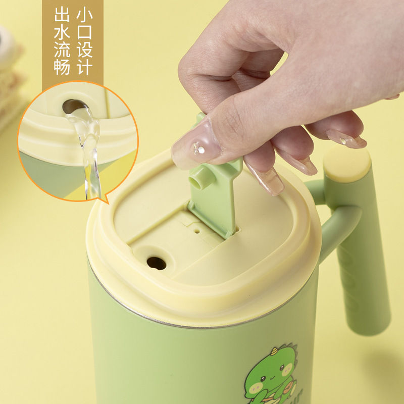304不锈钢水杯带手柄卡通图案马克杯高颜值水杯办公杯带盖咖啡杯