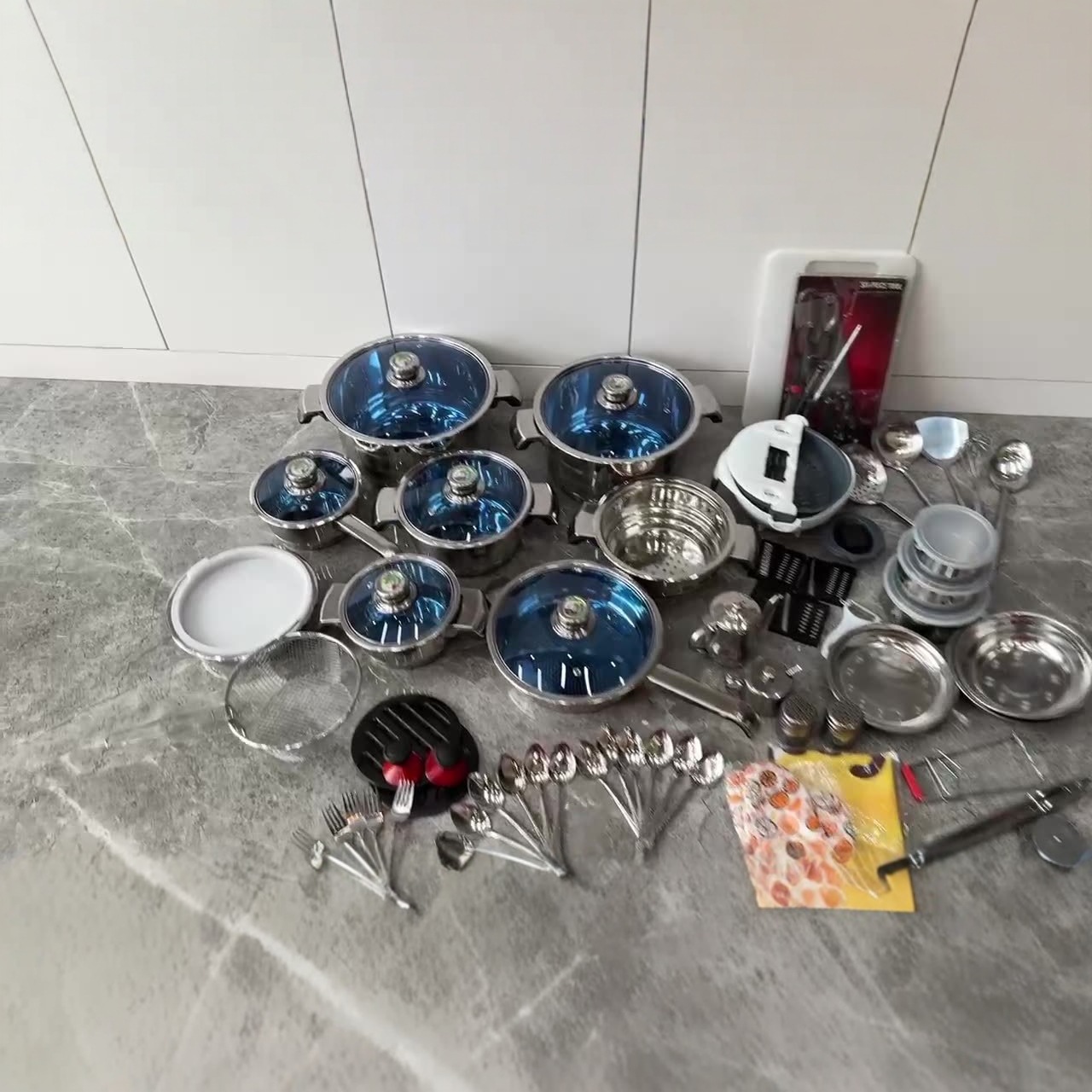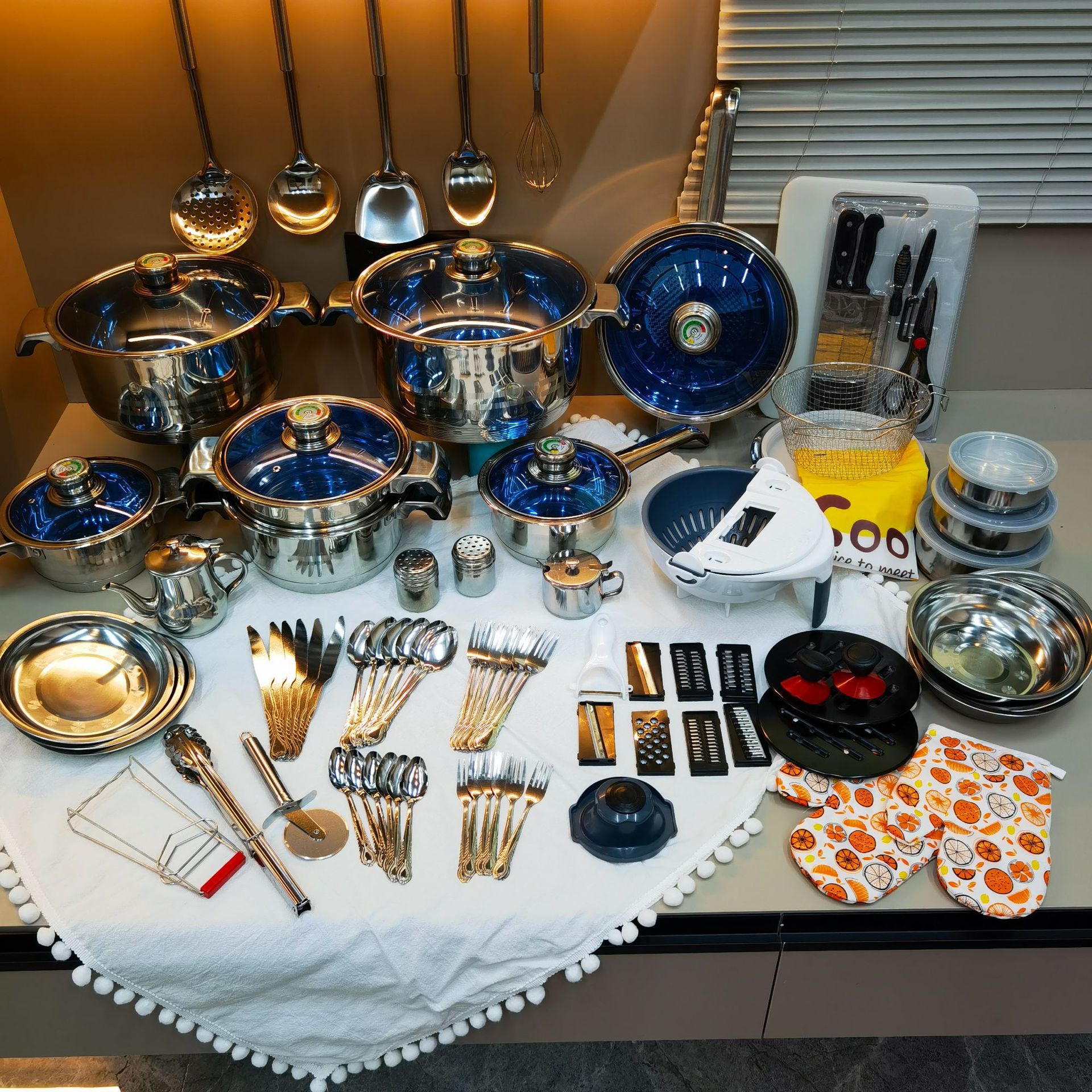 跨境不锈钢锅具套装100件套家用厨房组合汤锅不锈钢套装锅礼品