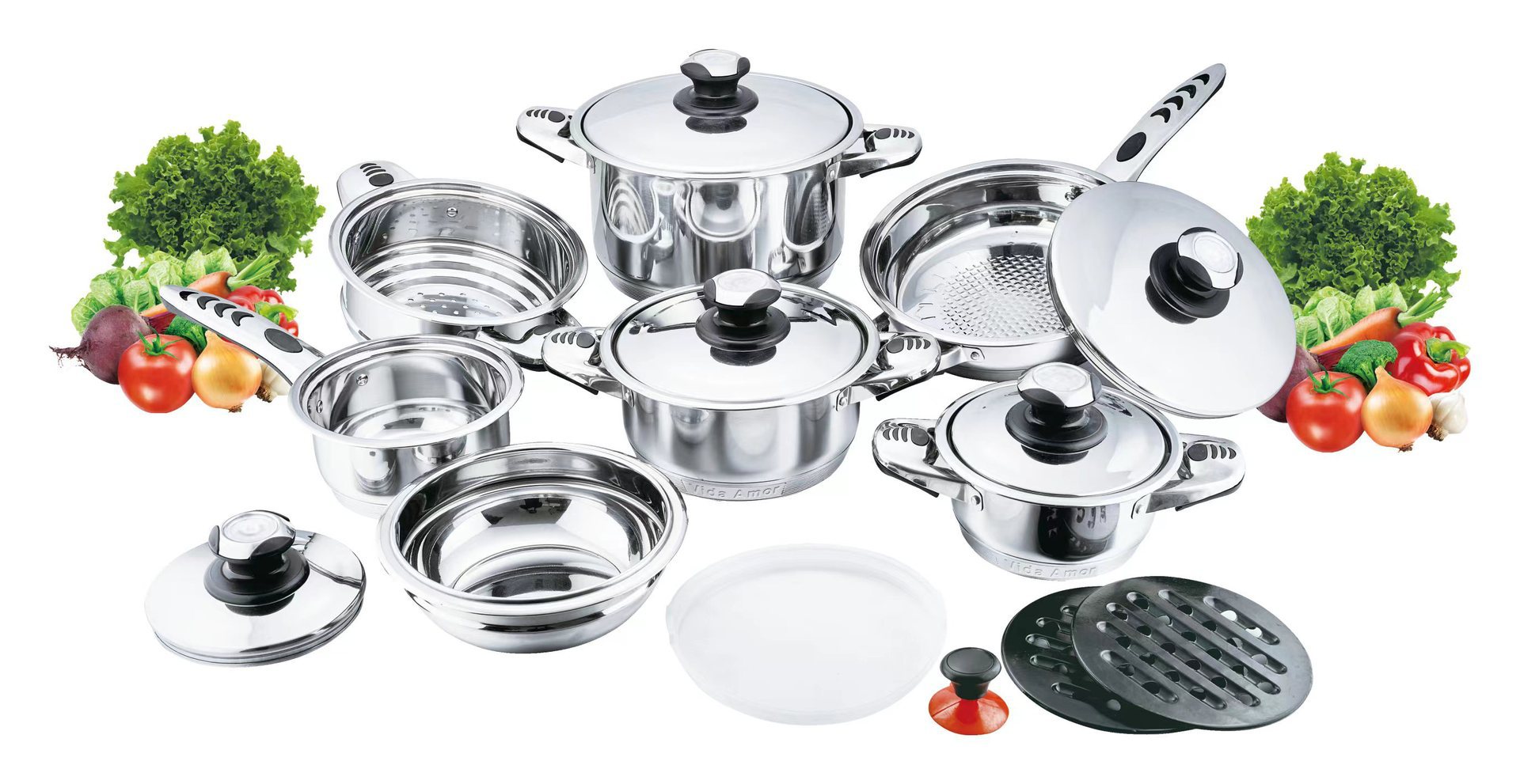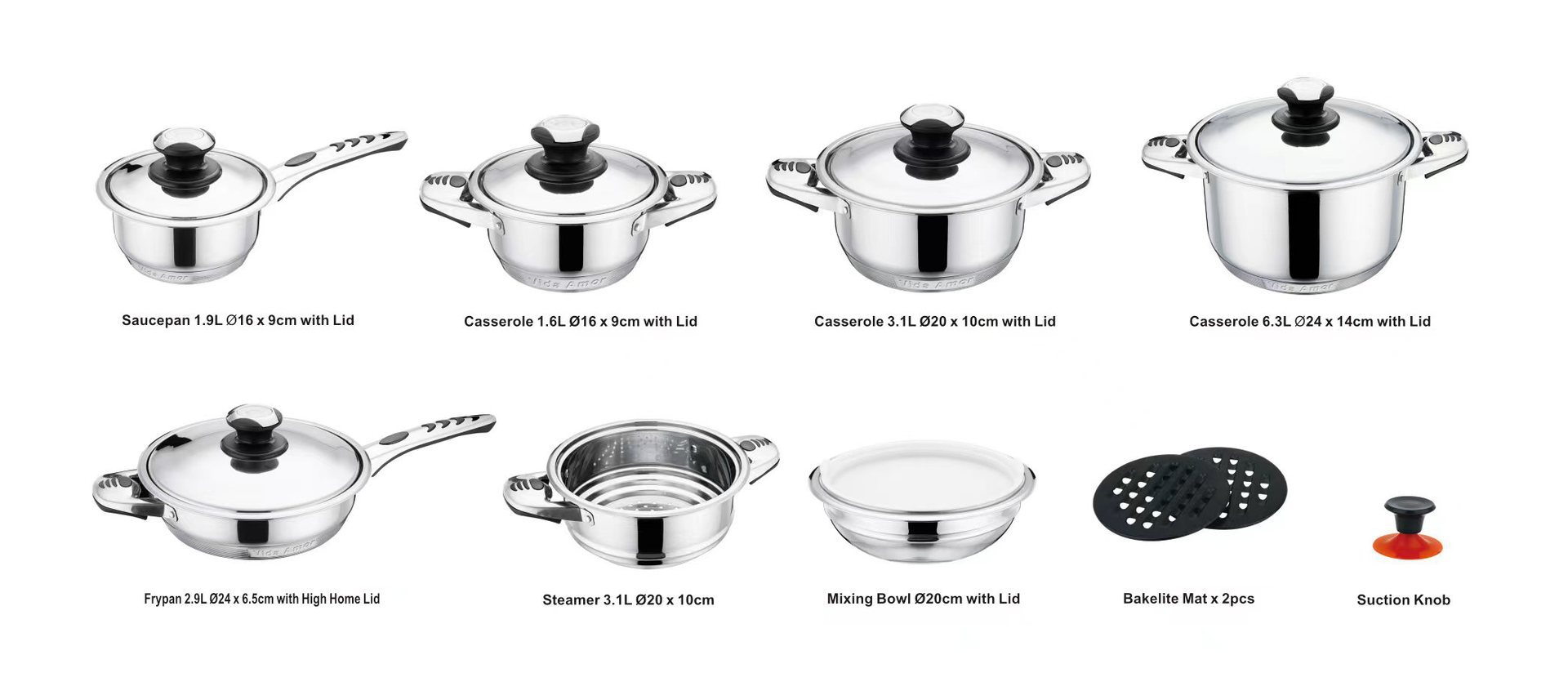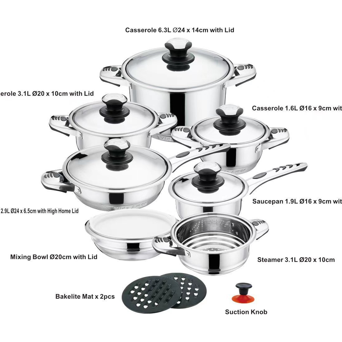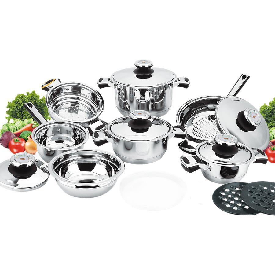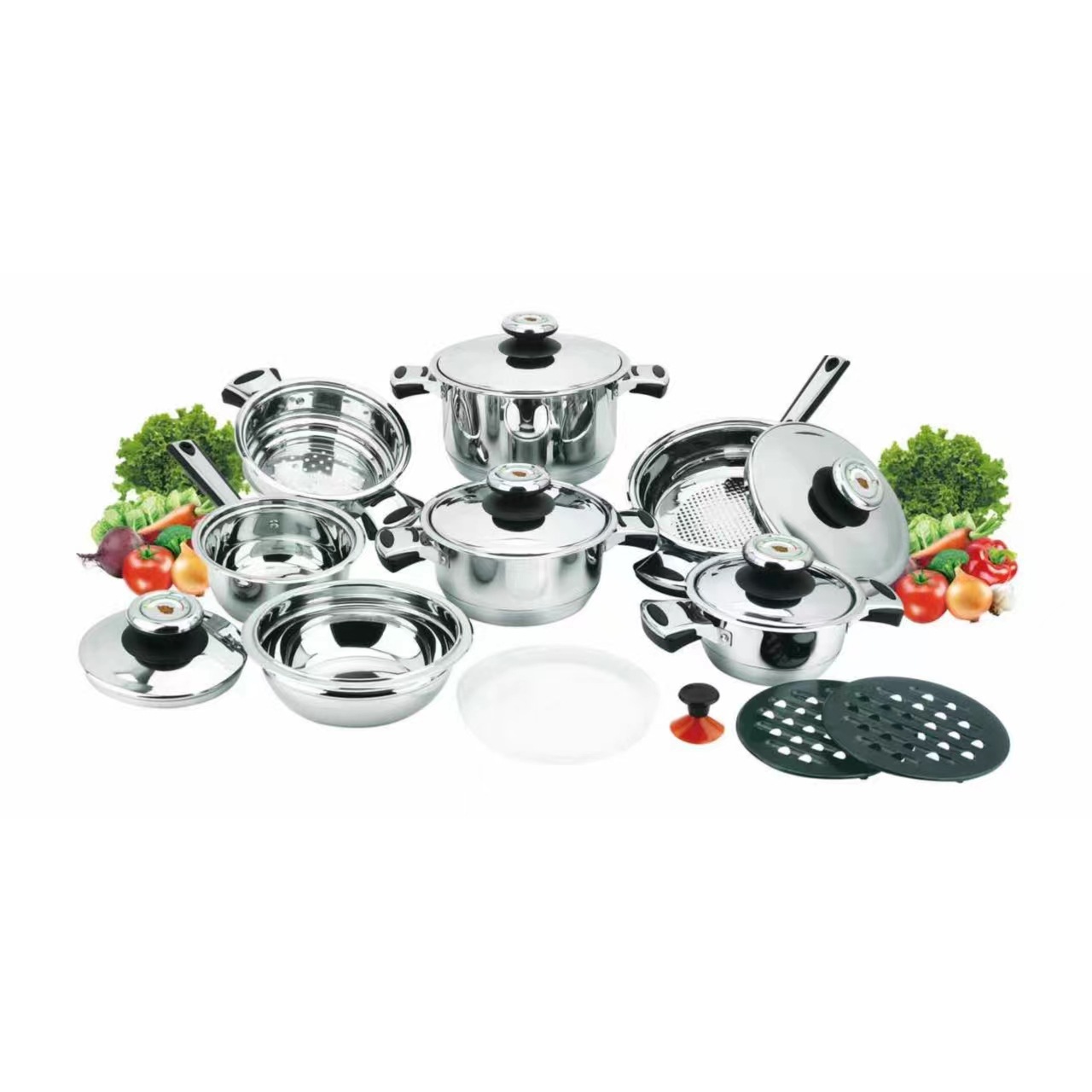 不锈钢汤锅 跨境外贸16件套锅锅具 厨房钢盖蒸锅奶锅煎锅炊具