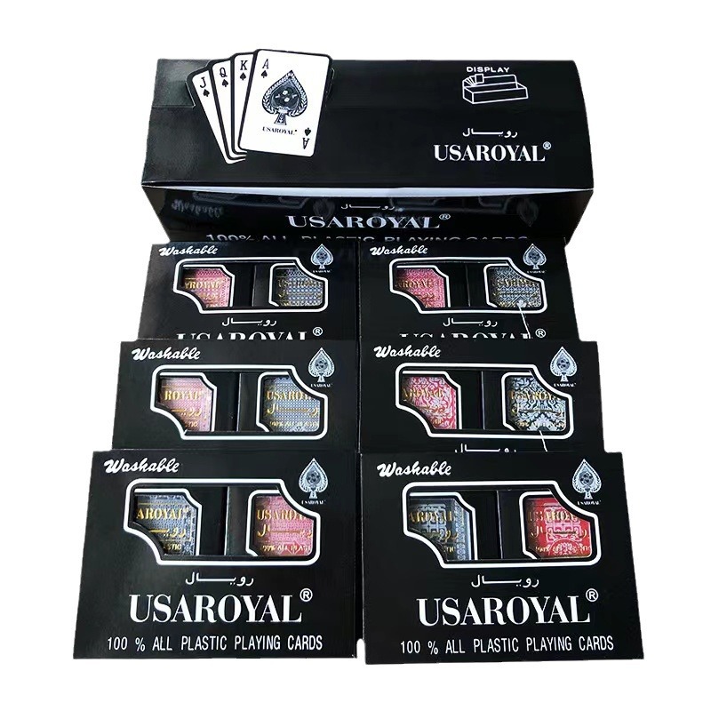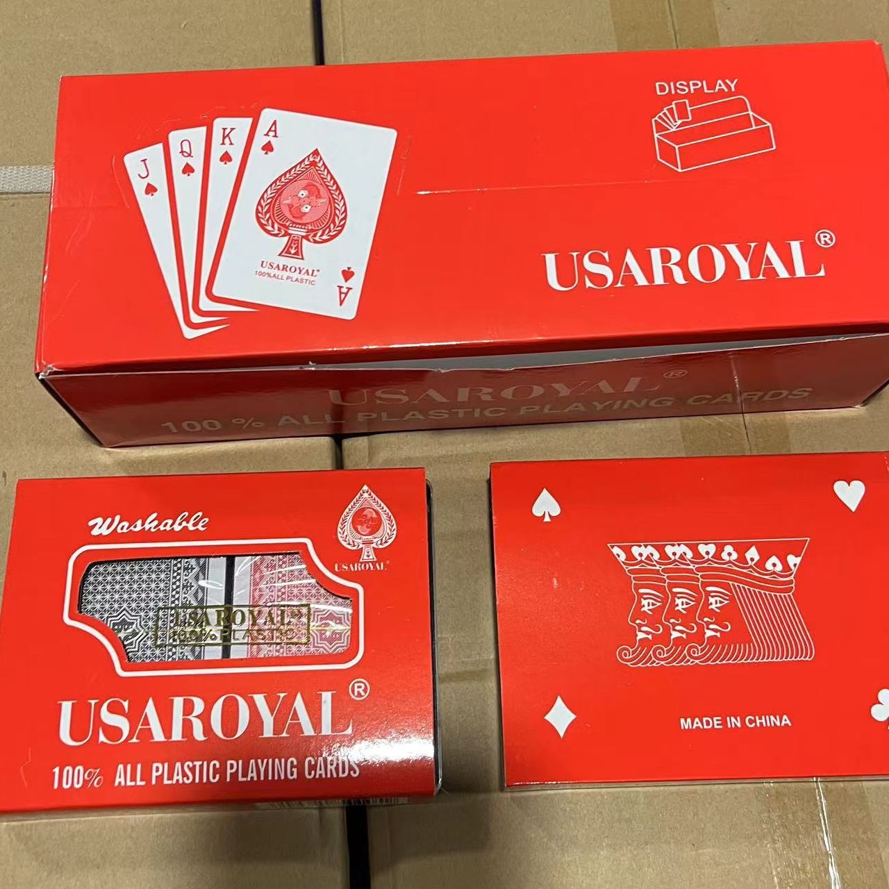 PVC塑料扑克25丝双付一套扑克牌外贸USAROYA黑盒整套扑克厂家现货