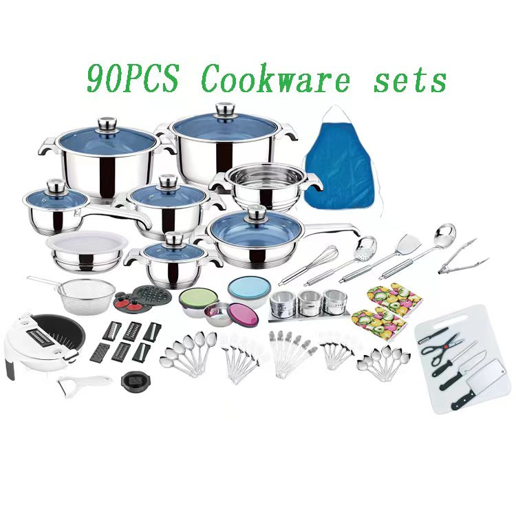 潮州互发 厂家不锈钢炊具90PCS cookware sets套装锅出口炊具组合