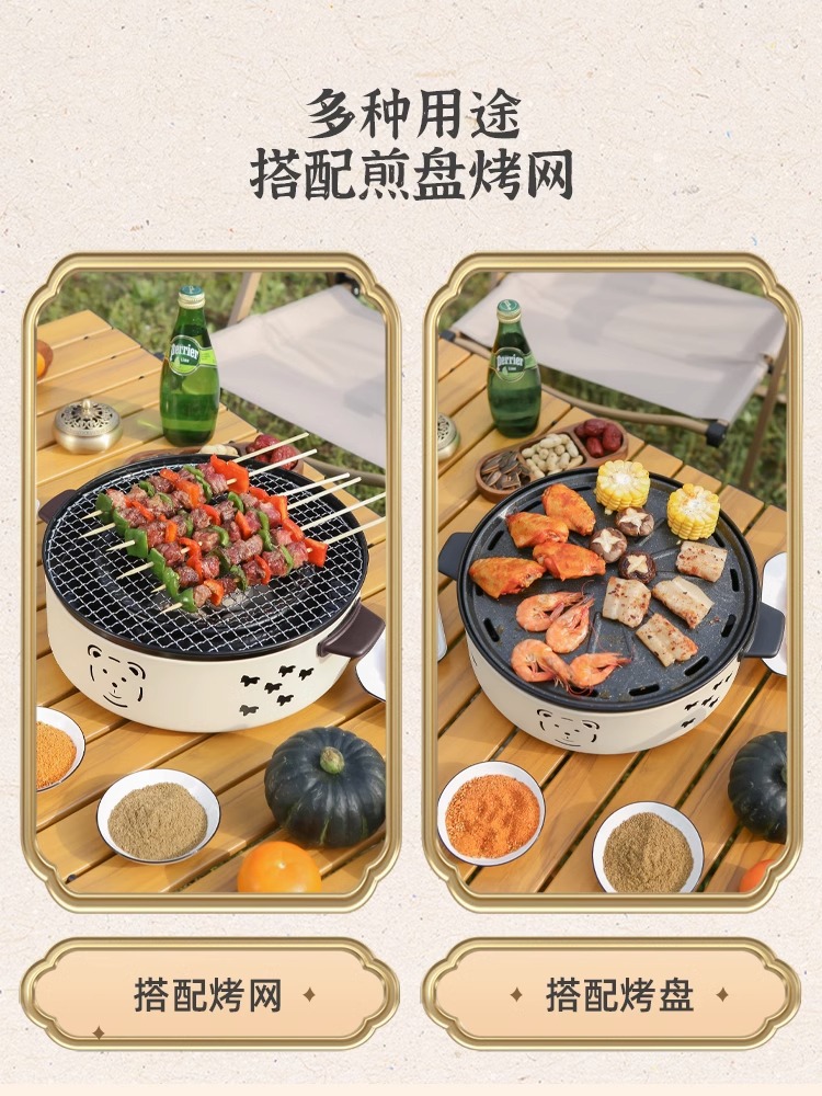 野炊露营便携烧烤炉可折叠户外野外木炭烧烤架家用小炉子围炉煮茶