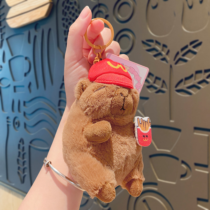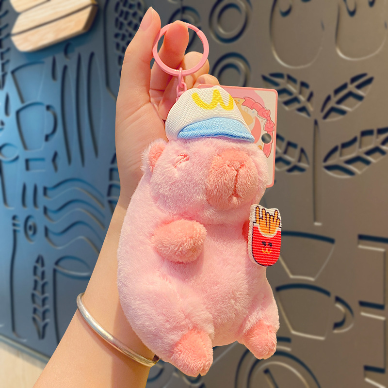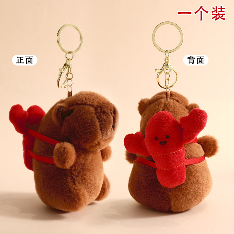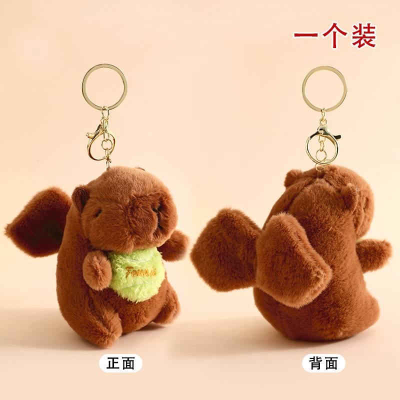 创意毛绒柿子摇尾巴卡皮巴拉钥匙扣创意水豚玩偶包包小挂件小礼品