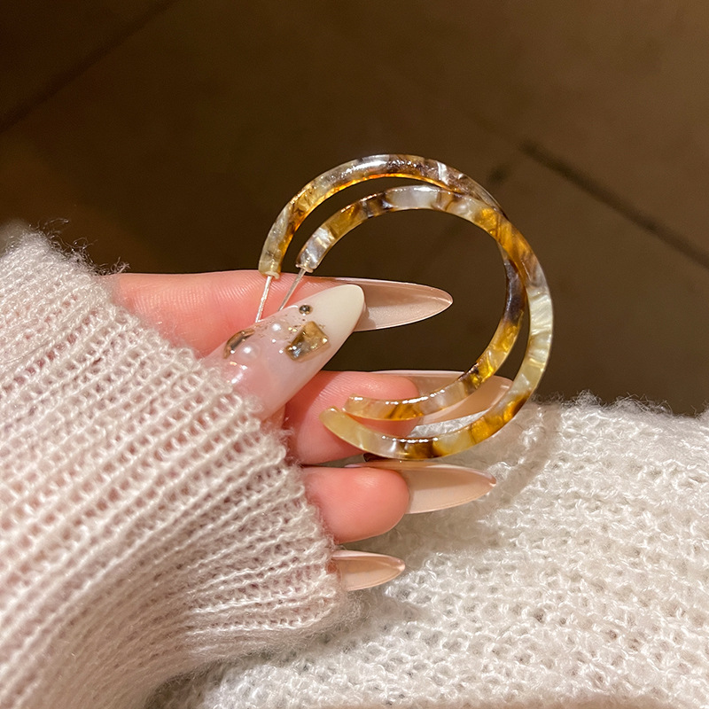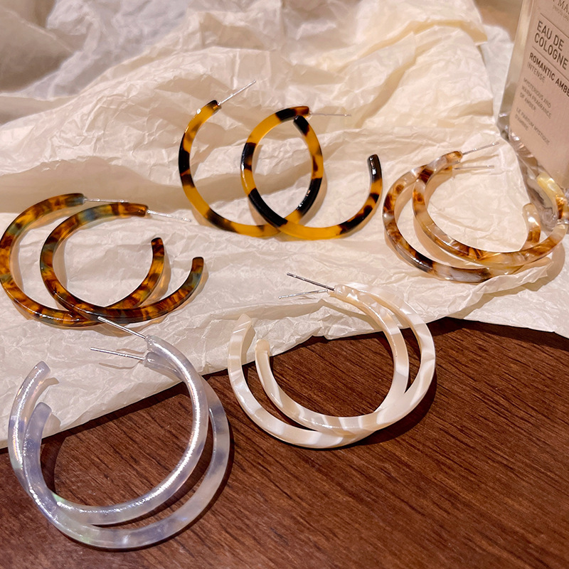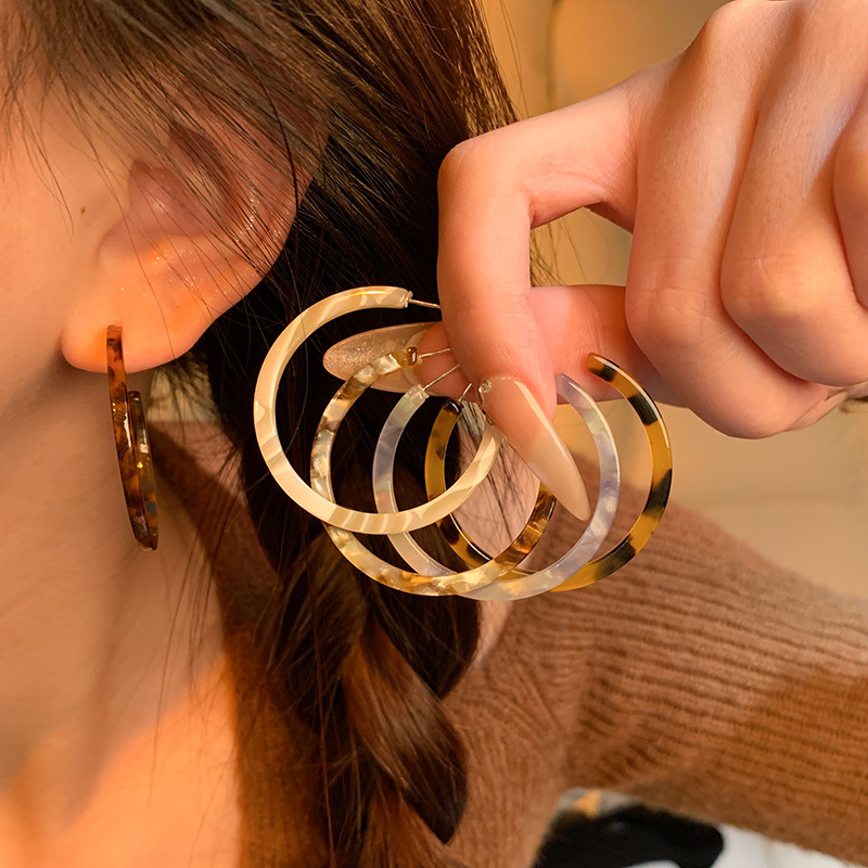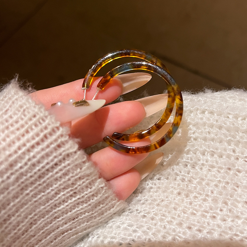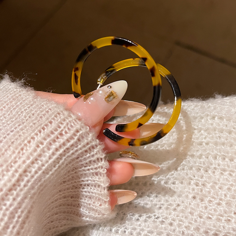 个性百搭气质夸张大圆圈耳环网红同款耳钉秋冬款豹纹琥珀色耳圈女